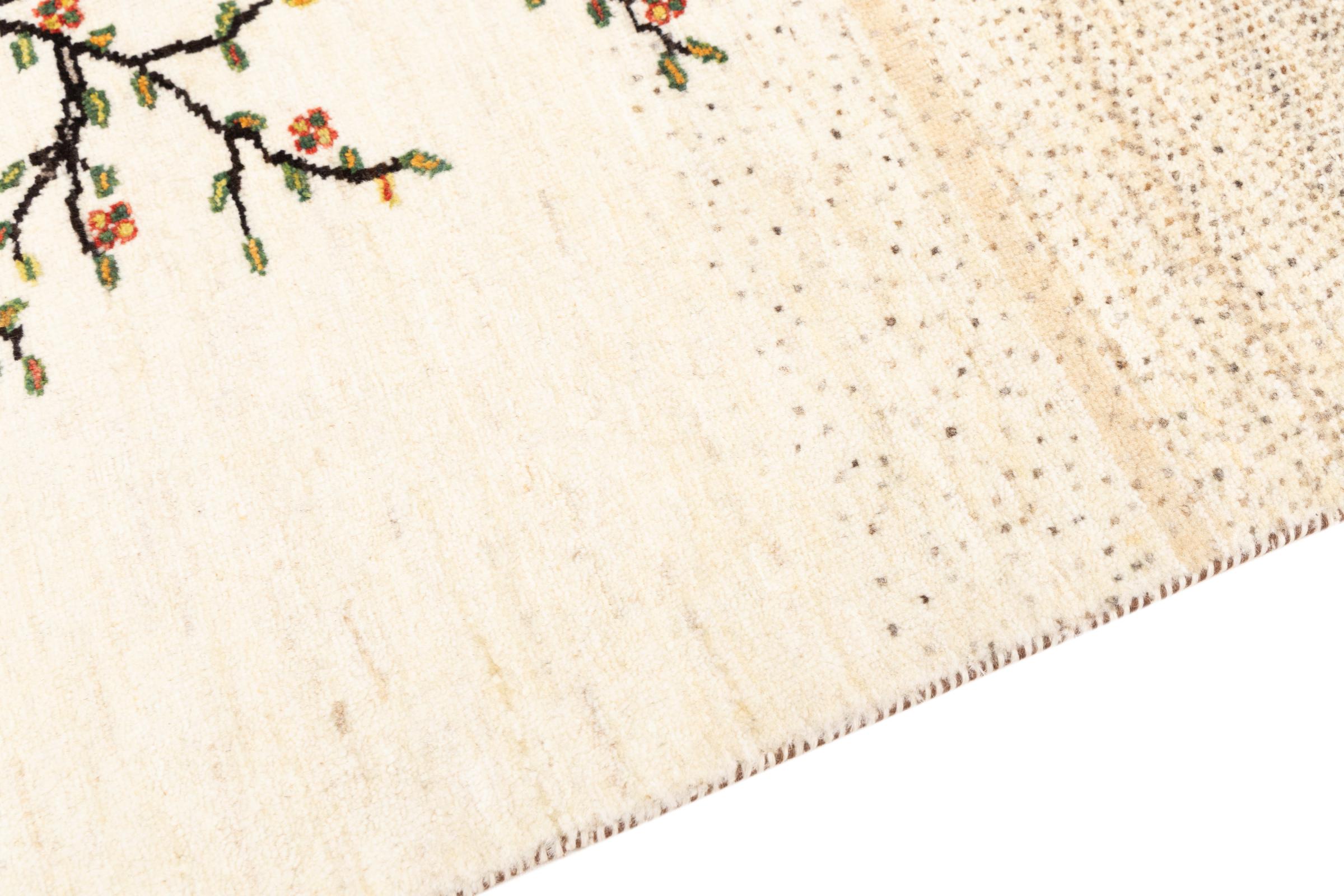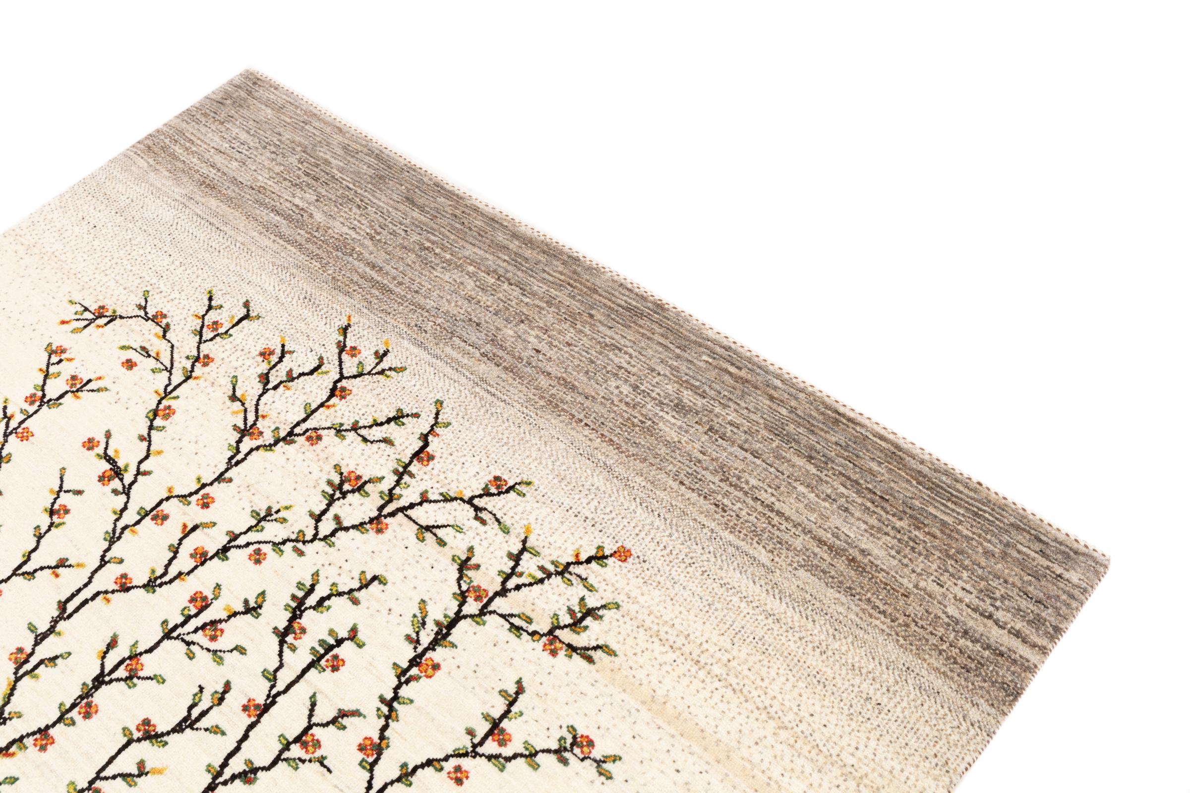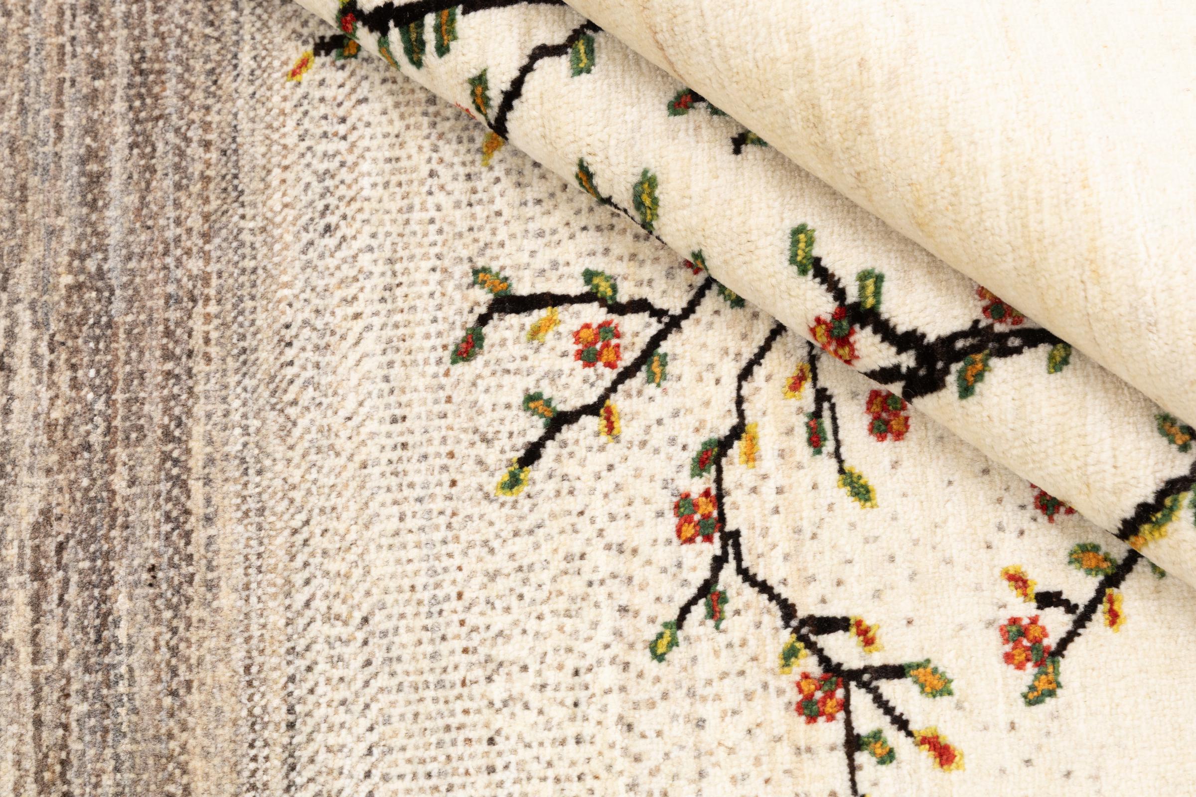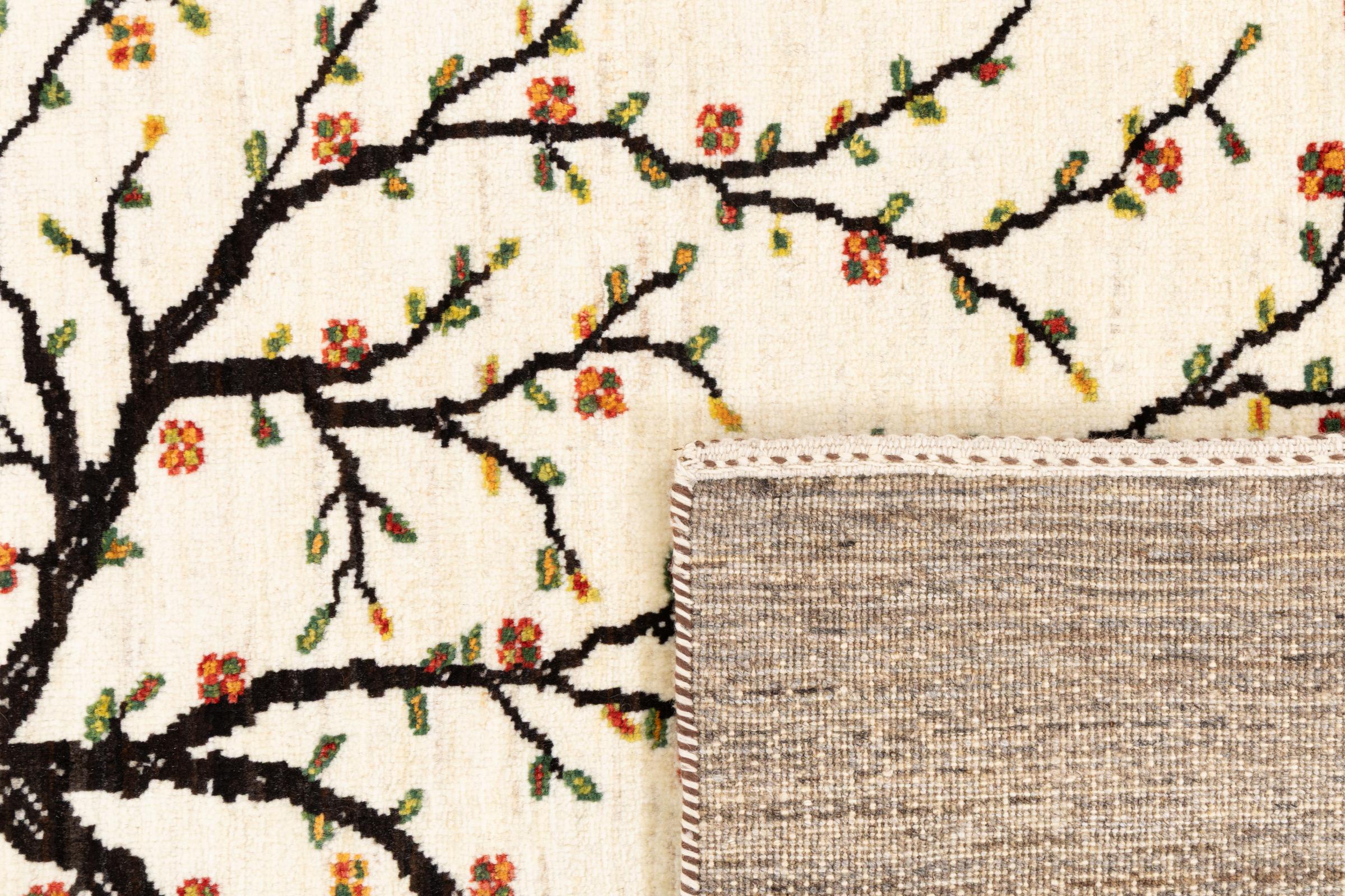 Ce magnifique tapis est un Gabbeh persan et fait donc partie des tapis Gabbeh de la plus haute qualité. Les tapis sont noués par des nomades ou des semi-nomades en Iran selon un savoir-faire traditionnel. Les motifs simples sont pour la plupart inspirés par l'environnement local des nomades. Par exemple, on peut trouver des chameaux, des arbres ou des buissons sur les tapis traditionnels. Les tapis de Gabbeh persan sont faits de laine provenant de troupeaux de moutons élevés localement. La laine est donc encore en grande partie filée à la main. Ainsi, chacun de ces tapis orientaux incarne un caractère unique de culture ancienne.