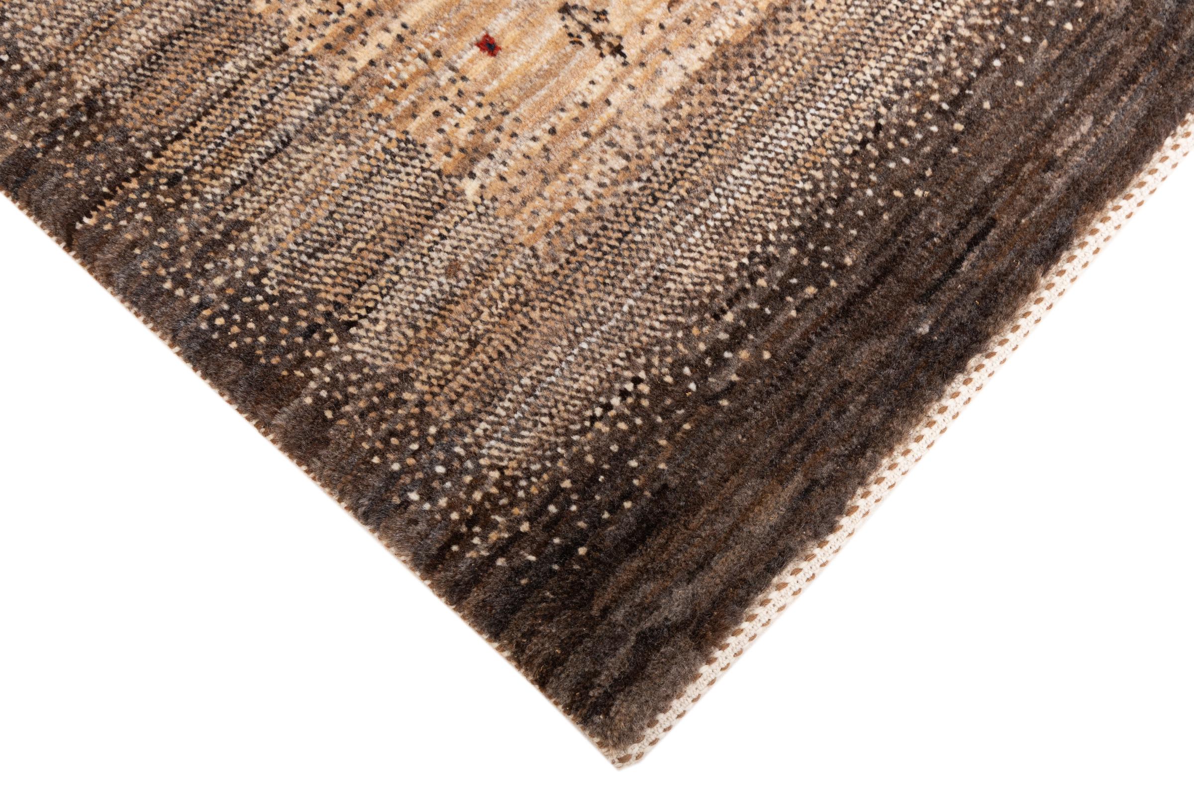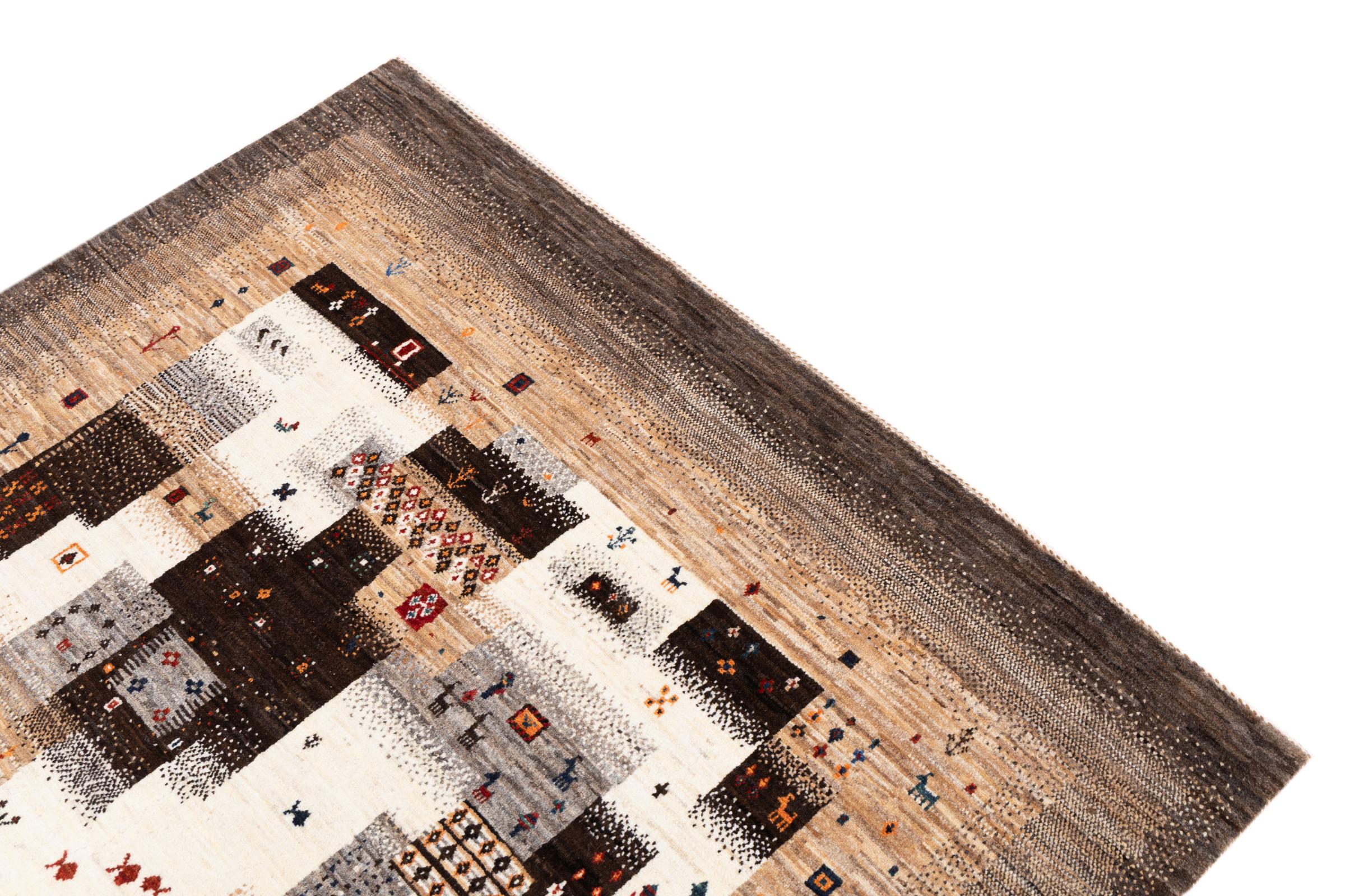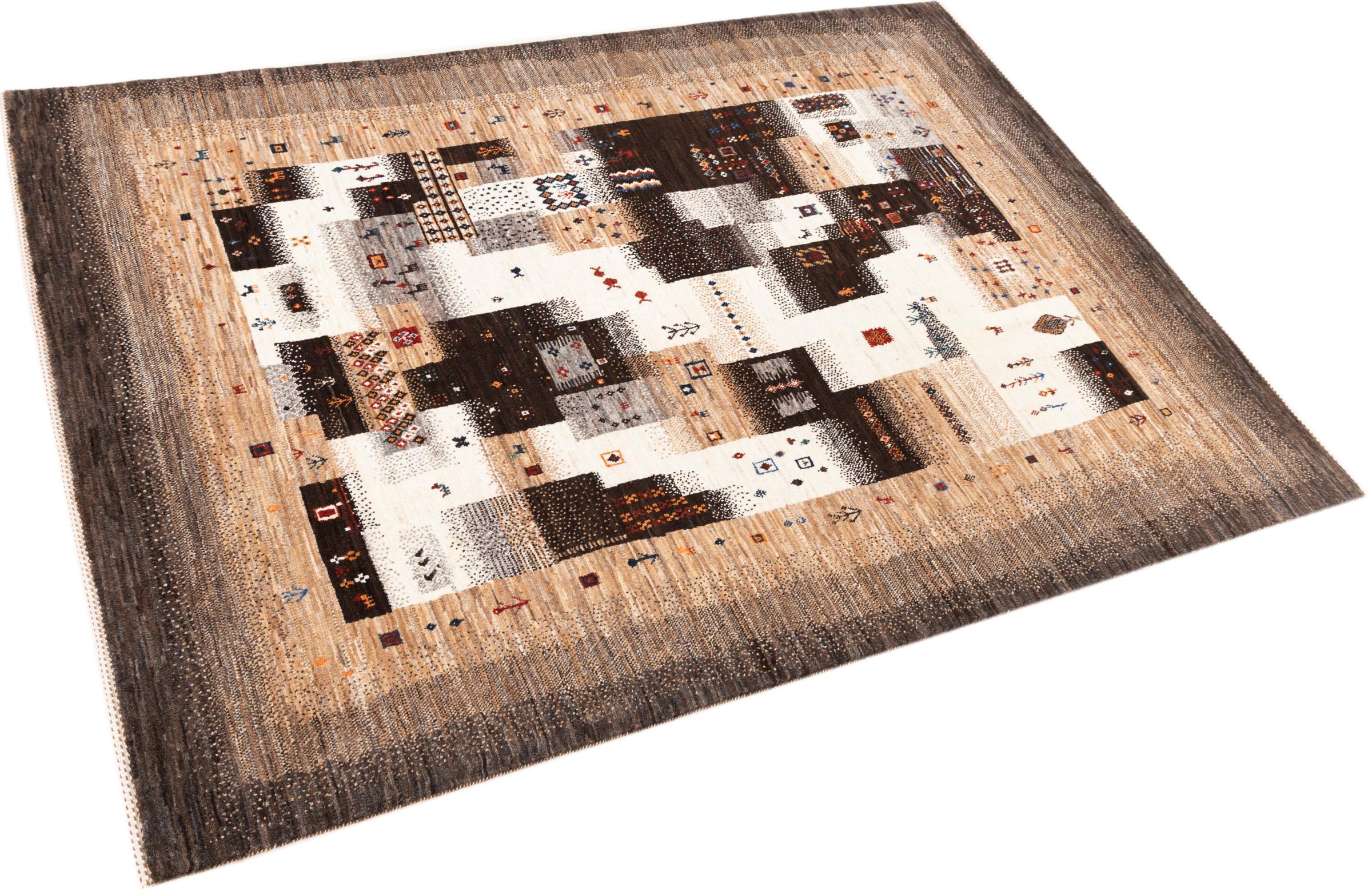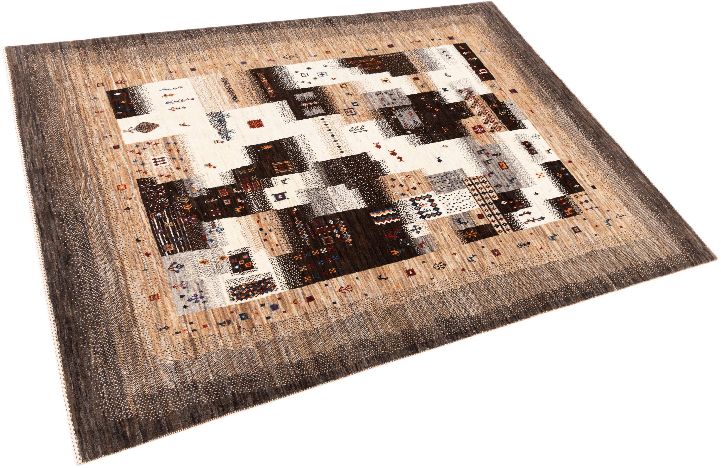 Ce magnifique tapis est un Gabbeh persan et fait donc partie des tapis Gabbeh de la plus haute qualité. Les tapis sont noués par des nomades ou des semi-nomades en Iran selon un savoir-faire traditionnel. Les motifs simples sont pour la plupart inspirés par l'environnement local des nomades. Par exemple, on peut trouver des chameaux, des arbres ou des buissons sur les tapis traditionnels. Les tapis de Gabbeh persan sont faits de laine provenant de troupeaux de moutons élevés localement. La laine est donc encore en grande partie filée à la main. Ainsi, chacun de ces tapis orientaux incarne un caractère unique de culture ancienne.