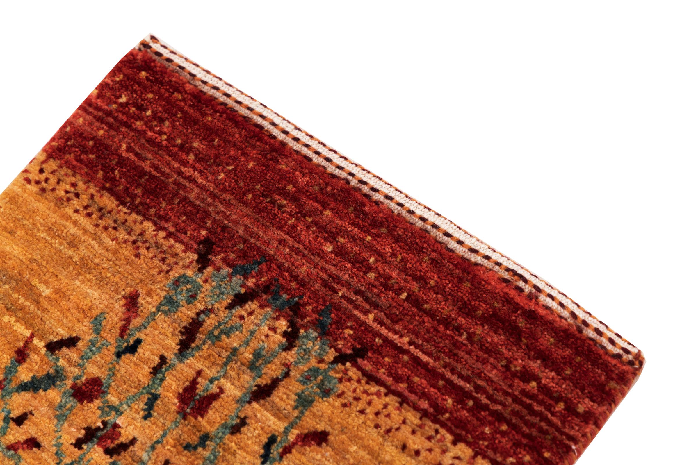 Ce magnifique tapis est un Gabbeh persan et fait donc partie des tapis Gabbeh de la plus haute qualité. Les tapis sont noués par des nomades ou des semi-nomades en Iran selon un savoir-faire traditionnel. Les motifs simples sont pour la plupart inspirés par l'environnement local des nomades. Par exemple, on peut trouver des chameaux, des arbres ou des buissons sur les tapis traditionnels. Les tapis de Gabbeh persan sont faits de laine provenant de troupeaux de moutons élevés localement. La laine est donc encore en grande partie filée à la main. Ainsi, chacun de ces tapis orientaux incarne un caractère unique de culture ancienne.