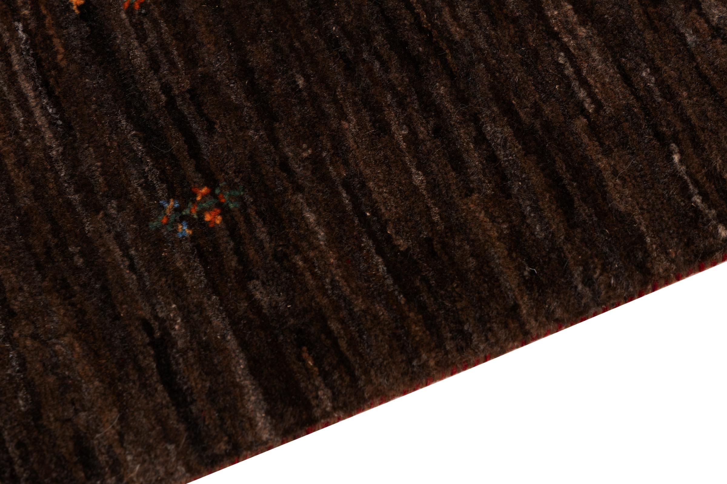 Ce magnifique tapis est un Gabbeh persan et fait donc partie des tapis Gabbeh de la plus haute qualité. Les tapis sont noués par des nomades ou des semi-nomades en Iran selon un savoir-faire traditionnel. Les motifs simples sont pour la plupart inspirés par l'environnement local des nomades. Par exemple, on peut trouver des chameaux, des arbres ou des buissons sur les tapis traditionnels. Les tapis de Gabbeh persan sont faits de laine provenant de troupeaux de moutons élevés localement. La laine est donc encore en grande partie filée à la main. Ainsi, chacun de ces tapis orientaux incarne un caractère unique de culture ancienne.