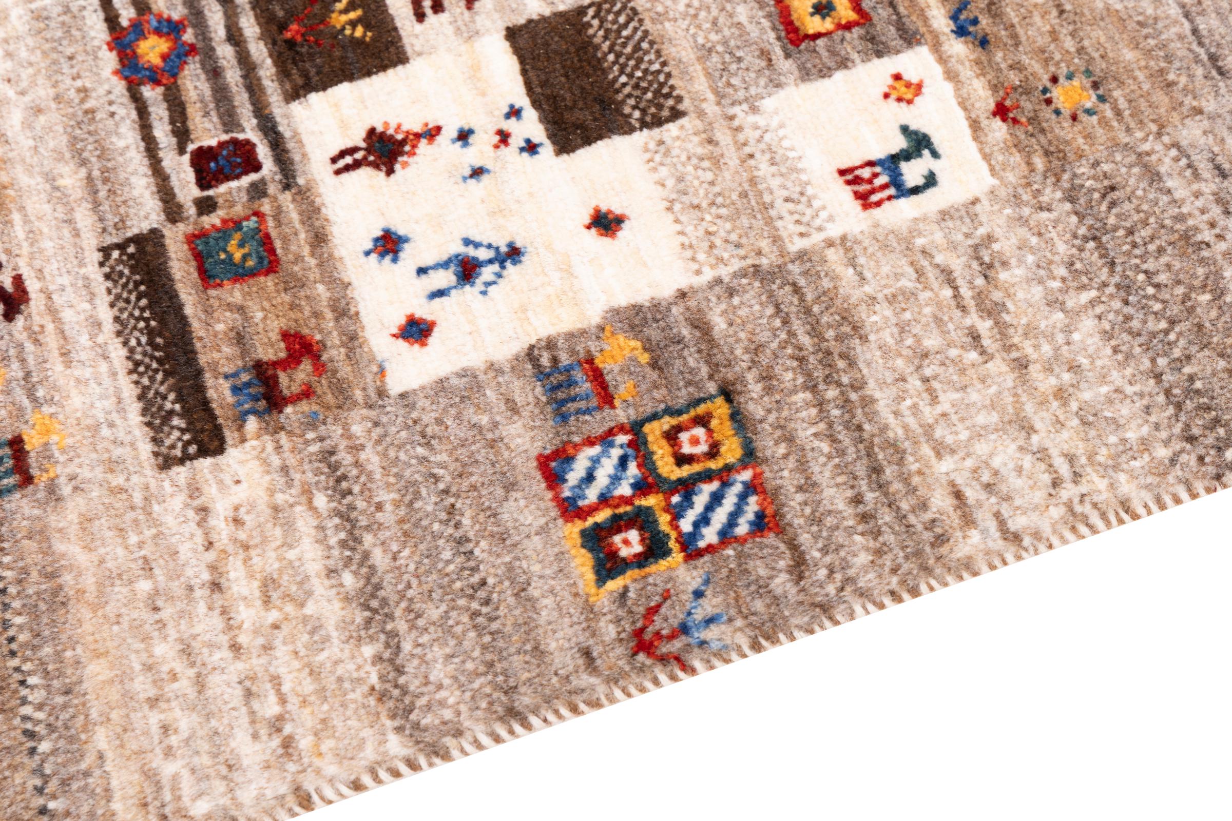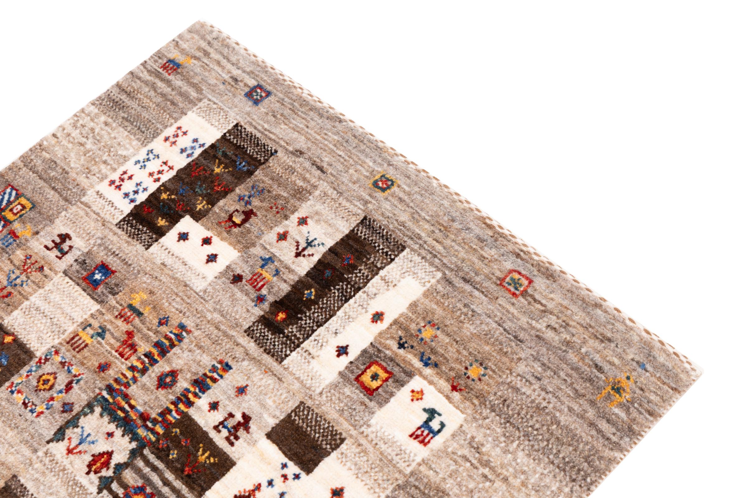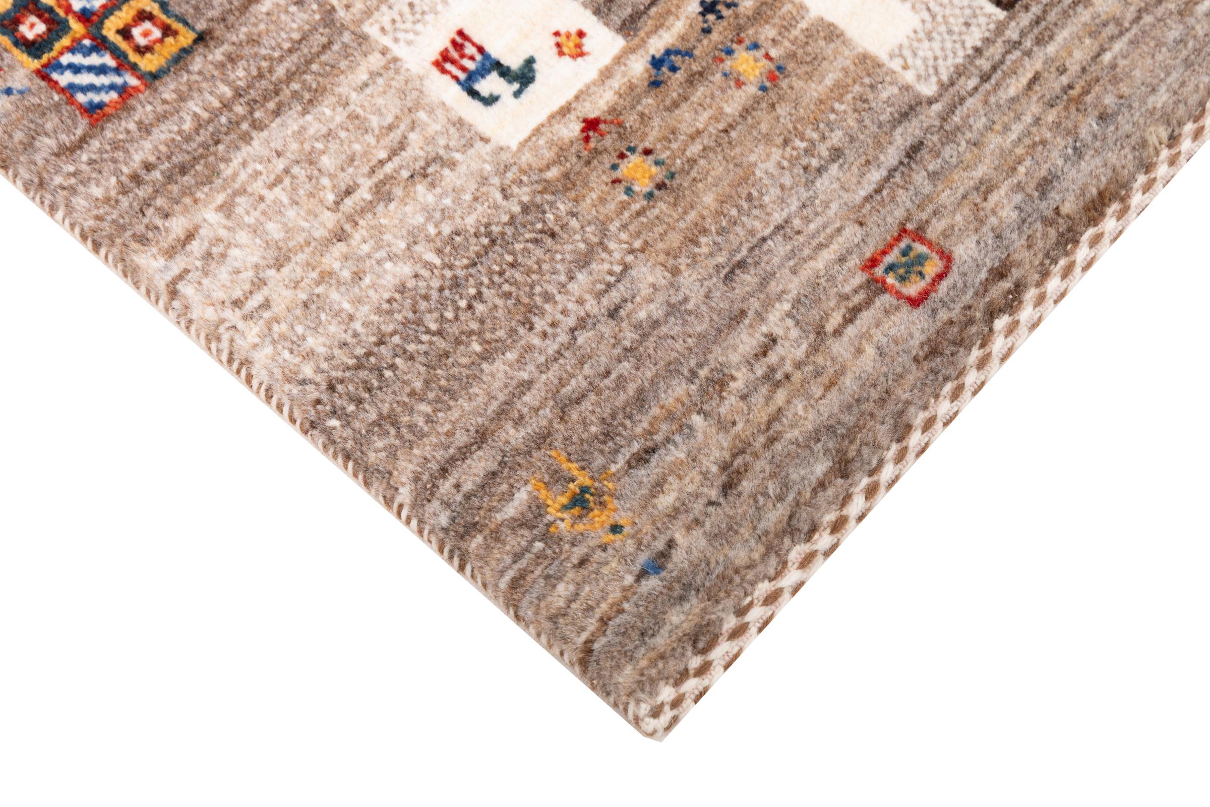 Ce magnifique tapis est un Gabbeh persan et fait donc partie des tapis Gabbeh de la plus haute qualité. Les tapis sont noués par des nomades ou des semi-nomades en Iran selon un savoir-faire traditionnel. Les motifs simples sont pour la plupart inspirés par l'environnement local des nomades. Par exemple, on peut trouver des chameaux, des arbres ou des buissons sur les tapis traditionnels. Les tapis de Gabbeh persan sont faits de laine provenant de troupeaux de moutons élevés localement. La laine est donc encore en grande partie filée à la main. Ainsi, chacun de ces tapis orientaux incarne un caractère unique de culture ancienne.