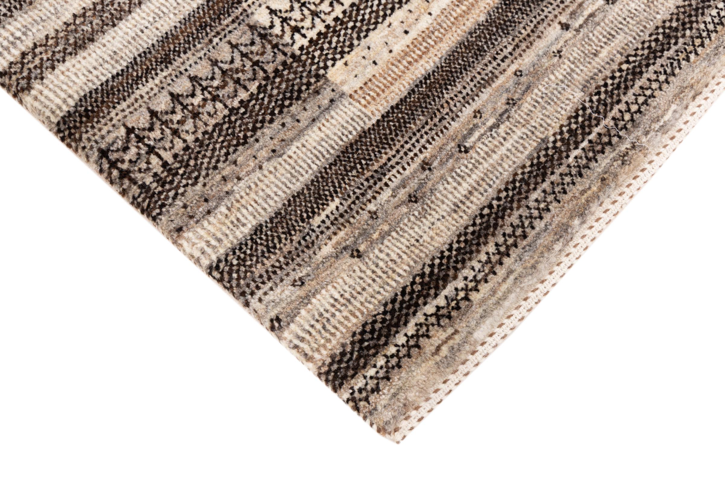 Ce magnifique tapis est un Gabbeh persan et fait donc partie des tapis Gabbeh de la plus haute qualité. Les tapis sont noués par des nomades ou des semi-nomades en Iran selon un savoir-faire traditionnel. Les motifs simples sont pour la plupart inspirés par l'environnement local des nomades. Par exemple, on peut trouver des chameaux, des arbres ou des buissons sur les tapis traditionnels. Les tapis de Gabbeh persan sont faits de laine provenant de troupeaux de moutons élevés localement. La laine est donc encore en grande partie filée à la main. Ainsi, chacun de ces tapis orientaux incarne un caractère unique de culture ancienne.
