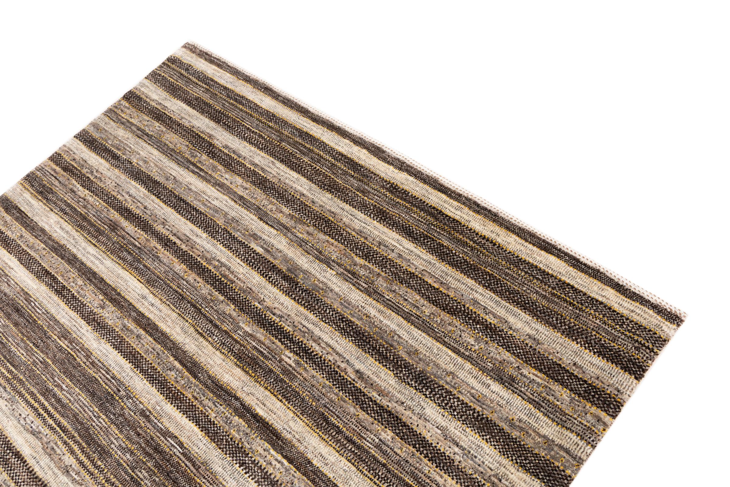 Ce magnifique tapis est un Gabbeh persan et fait donc partie des tapis Gabbeh de la plus haute qualité. Les tapis sont noués par des nomades ou des semi-nomades en Iran selon un savoir-faire traditionnel. Les motifs simples sont pour la plupart inspirés par l'environnement local des nomades. Par exemple, on peut trouver des chameaux, des arbres ou des buissons sur les tapis traditionnels. Les tapis de Gabbeh persan sont faits de laine provenant de troupeaux de moutons élevés localement. La laine est donc encore en grande partie filée à la main. Ainsi, chacun de ces tapis orientaux incarne un caractère unique de culture ancienne.