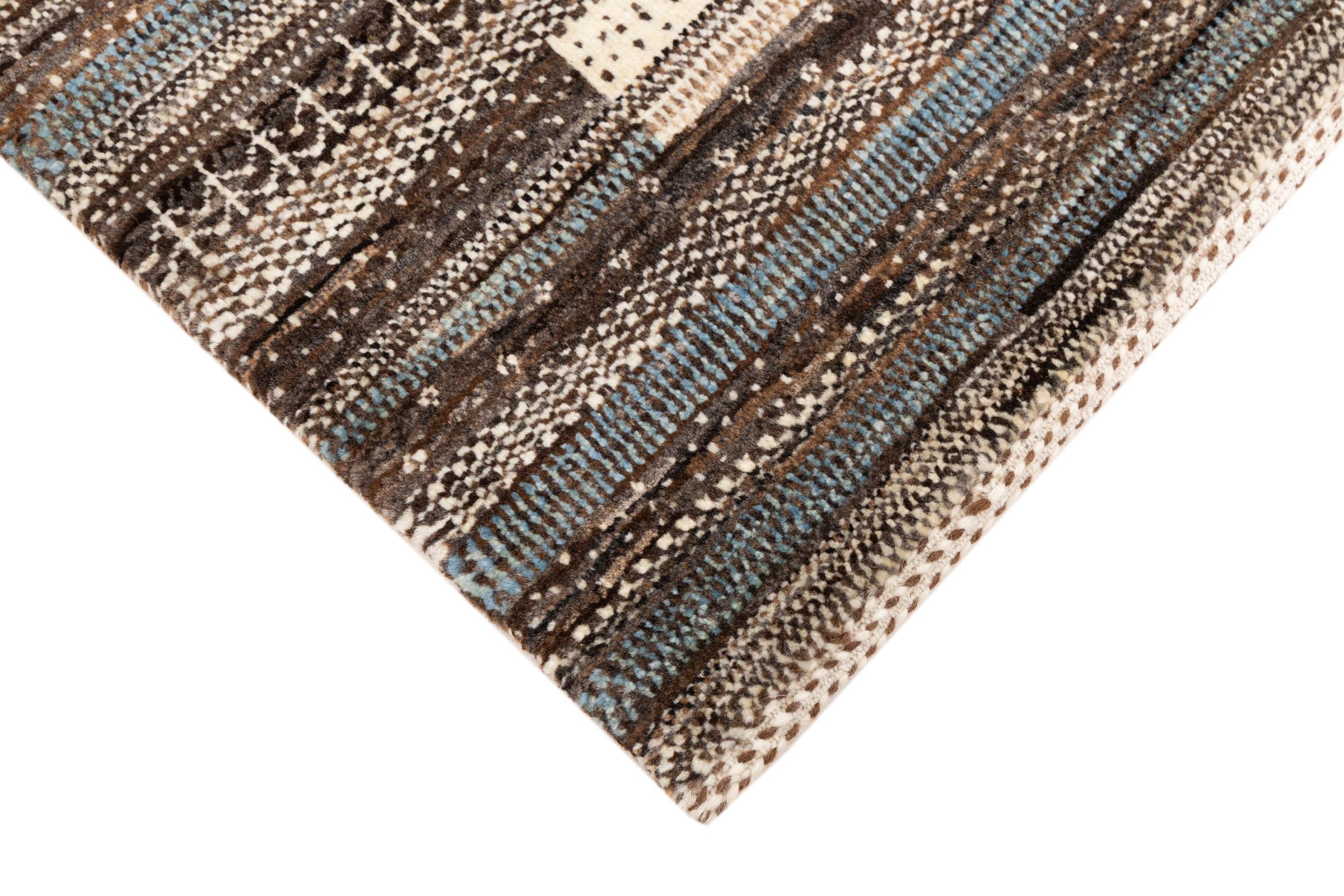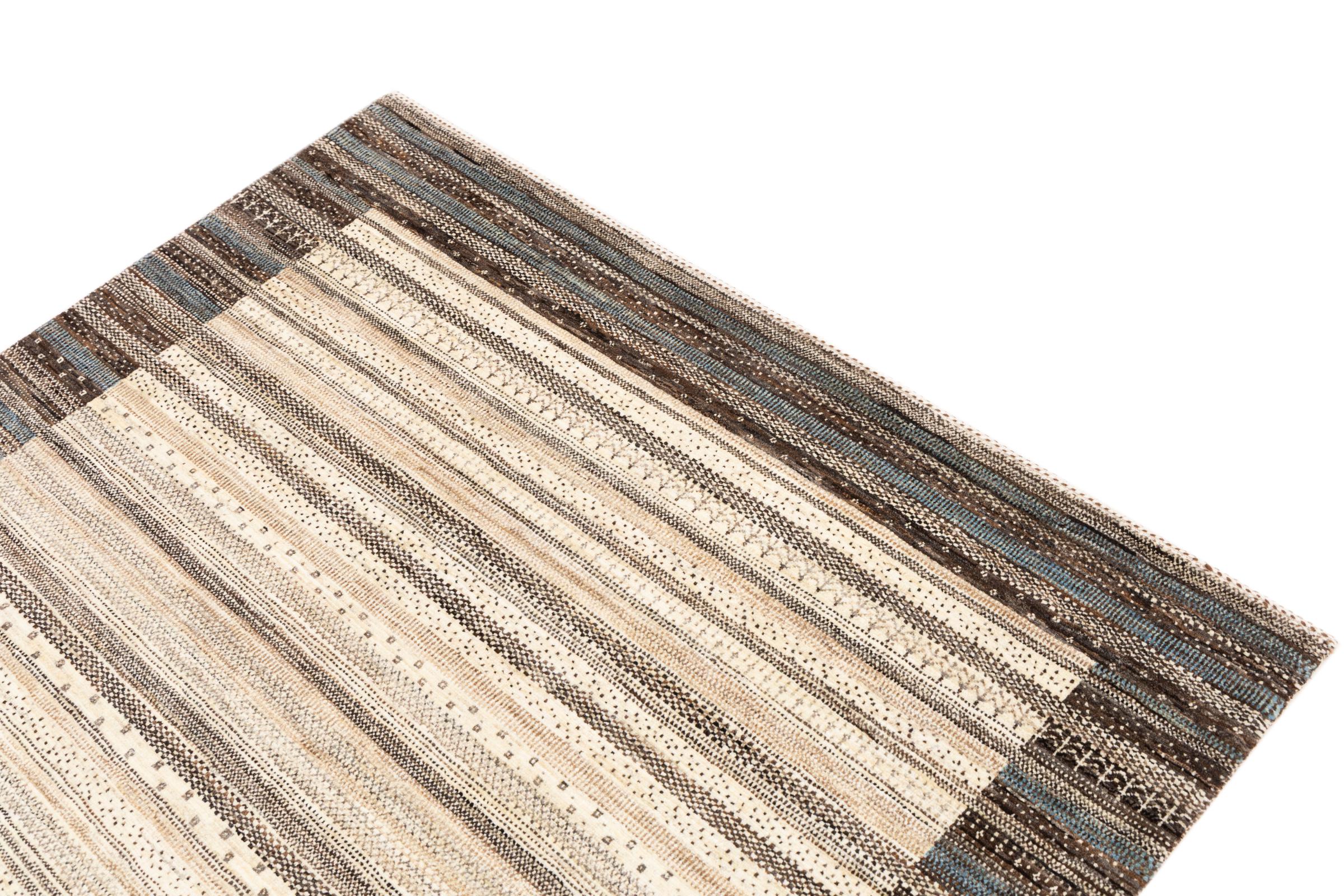 Ce magnifique tapis est un Gabbeh persan et fait donc partie des tapis Gabbeh de la plus haute qualité. Les tapis sont noués par des nomades ou des semi-nomades en Iran selon un savoir-faire traditionnel. Les motifs simples sont pour la plupart inspirés par l'environnement local des nomades. Par exemple, on peut trouver des chameaux, des arbres ou des buissons sur les tapis traditionnels. Les tapis de Gabbeh persan sont faits de laine provenant de troupeaux de moutons élevés localement. La laine est donc encore en grande partie filée à la main. Ainsi, chacun de ces tapis orientaux incarne un caractère unique de culture ancienne.