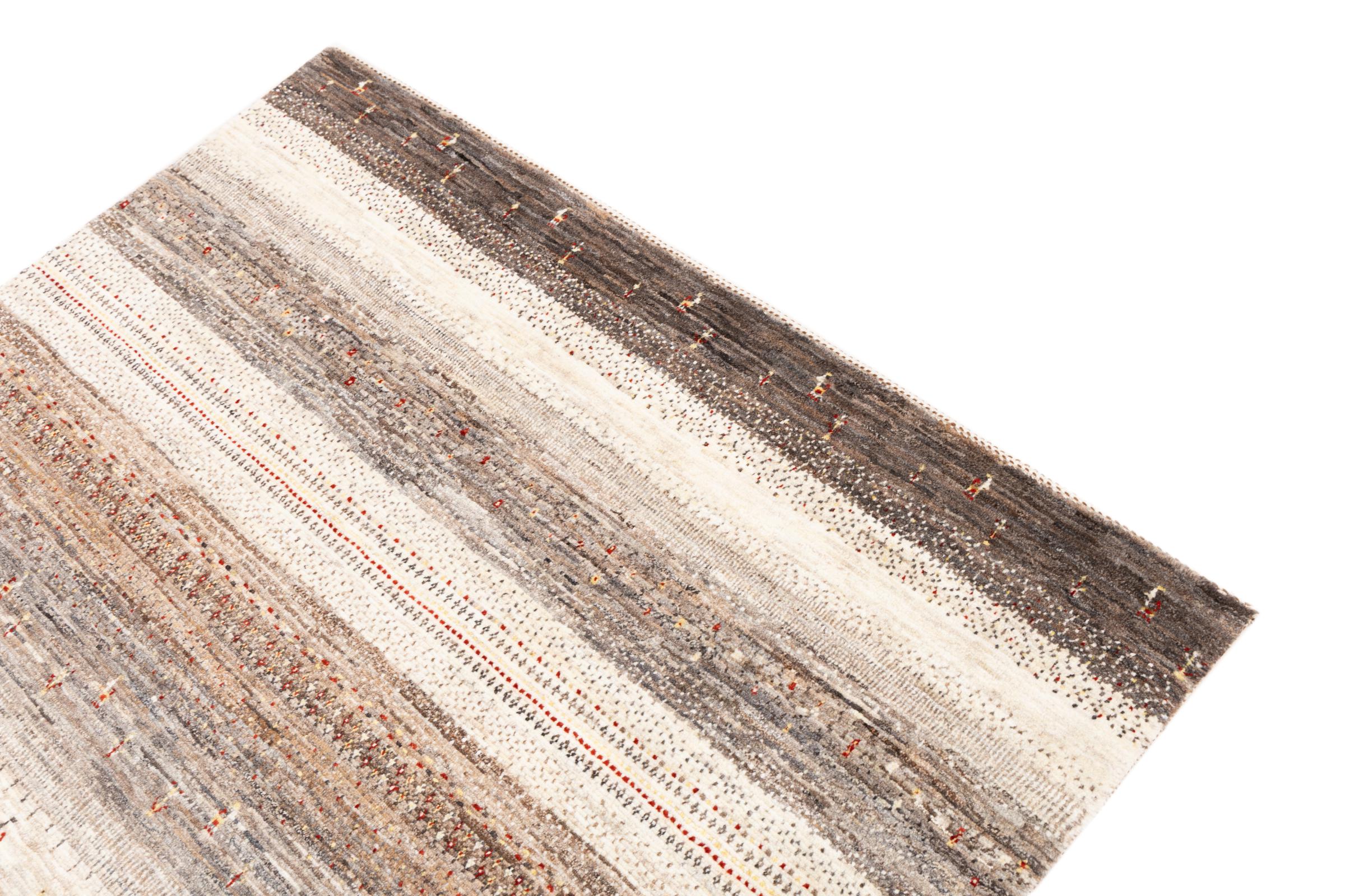 Ce magnifique tapis est un Gabbeh persan et fait donc partie des tapis Gabbeh de la plus haute qualité. Les tapis sont noués par des nomades ou des semi-nomades en Iran selon un savoir-faire traditionnel. Les motifs simples sont pour la plupart inspirés par l'environnement local des nomades. Par exemple, on peut trouver des chameaux, des arbres ou des buissons sur les tapis traditionnels. Les tapis de Gabbeh persan sont faits de laine provenant de troupeaux de moutons élevés localement. La laine est donc encore en grande partie filée à la main. Ainsi, chacun de ces tapis orientaux incarne un caractère unique de culture ancienne.