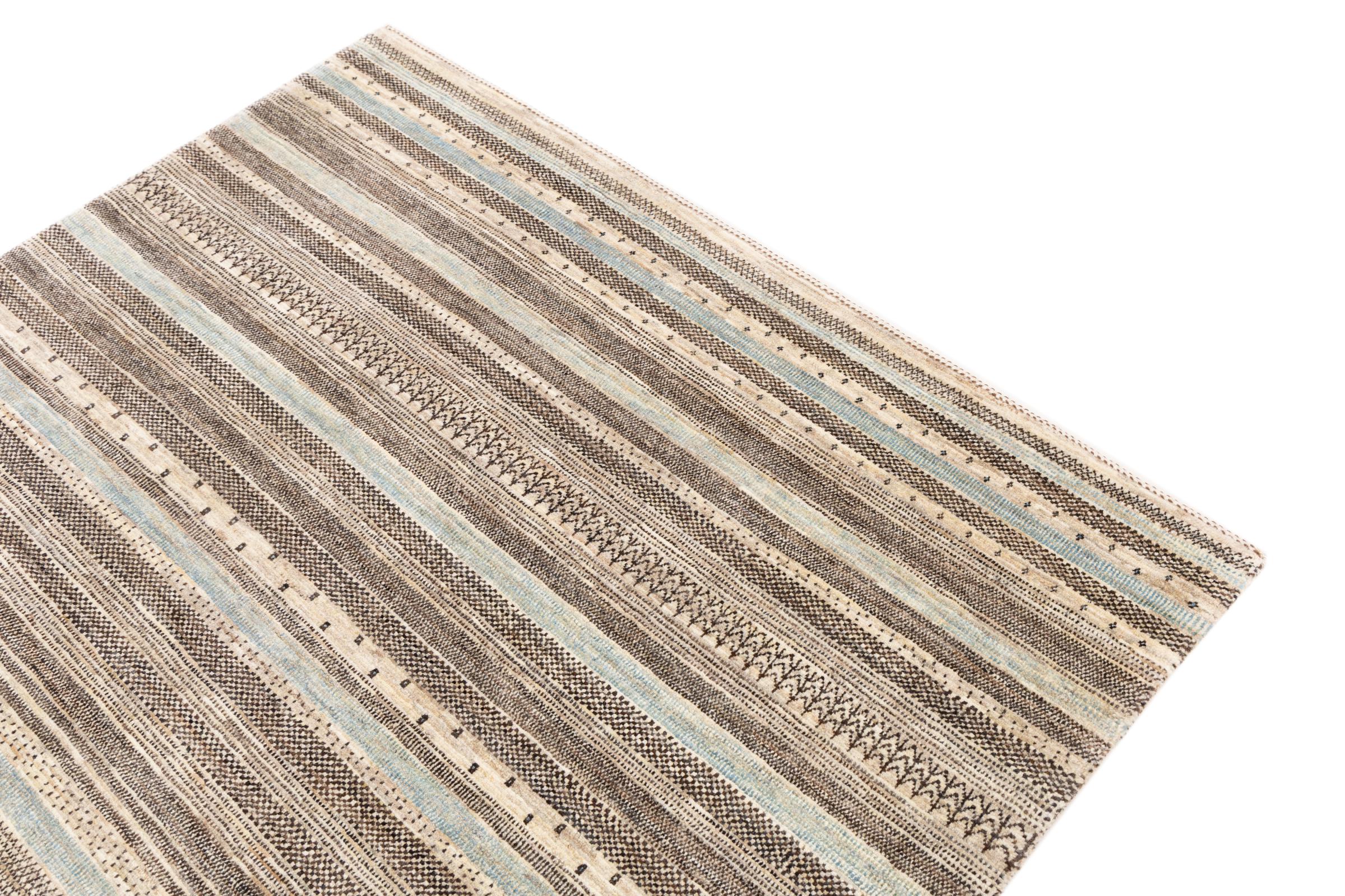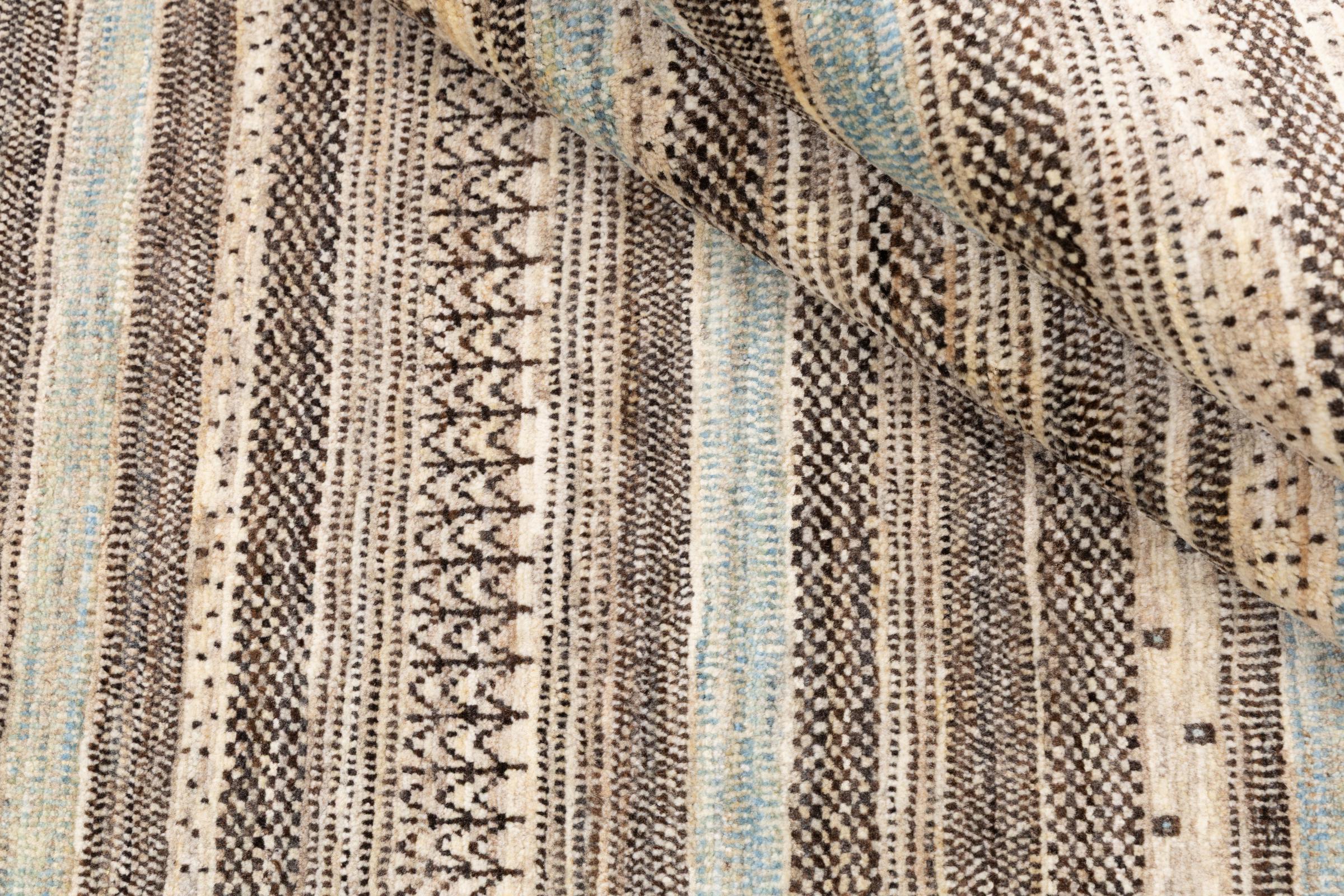 Ce magnifique tapis est un Gabbeh persan et fait donc partie des tapis Gabbeh de la plus haute qualité. Les tapis sont noués par des nomades ou des semi-nomades en Iran selon un savoir-faire traditionnel. Les motifs simples sont pour la plupart inspirés par l'environnement local des nomades. Par exemple, on peut trouver des chameaux, des arbres ou des buissons sur les tapis traditionnels. Les tapis de Gabbeh persan sont faits de laine provenant de troupeaux de moutons élevés localement. La laine est donc encore en grande partie filée à la main. Ainsi, chacun de ces tapis orientaux incarne un caractère unique de culture ancienne.