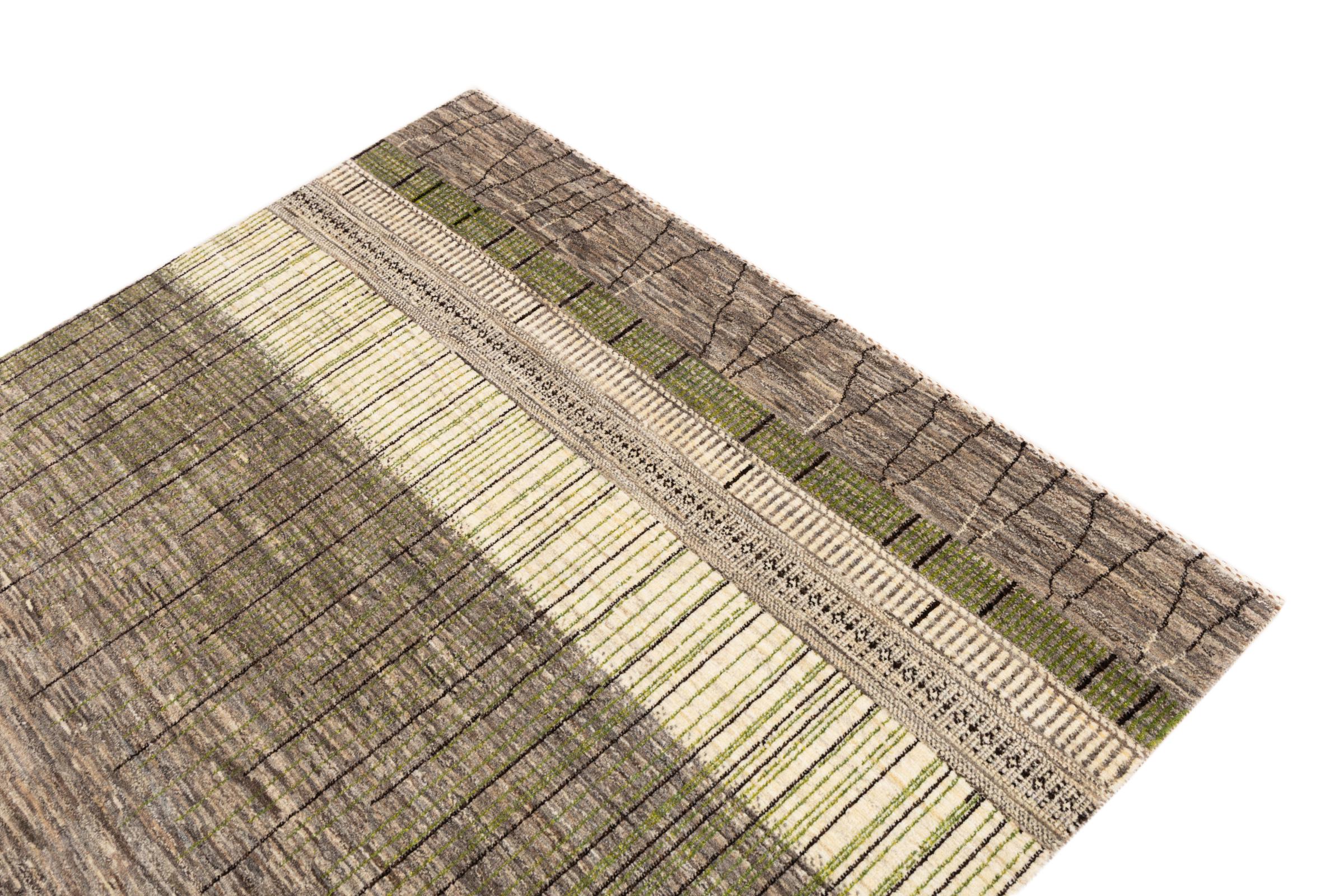 Ce magnifique tapis est un Gabbeh persan et fait donc partie des tapis Gabbeh de la plus haute qualité. Les tapis sont noués par des nomades ou des semi-nomades en Iran selon un savoir-faire traditionnel. Les motifs simples sont pour la plupart inspirés par l'environnement local des nomades. Par exemple, on peut trouver des chameaux, des arbres ou des buissons sur les tapis traditionnels. Les tapis de Gabbeh persan sont faits de laine provenant de troupeaux de moutons élevés localement. La laine est donc encore en grande partie filée à la main. Ainsi, chacun de ces tapis orientaux incarne un caractère unique de culture ancienne.