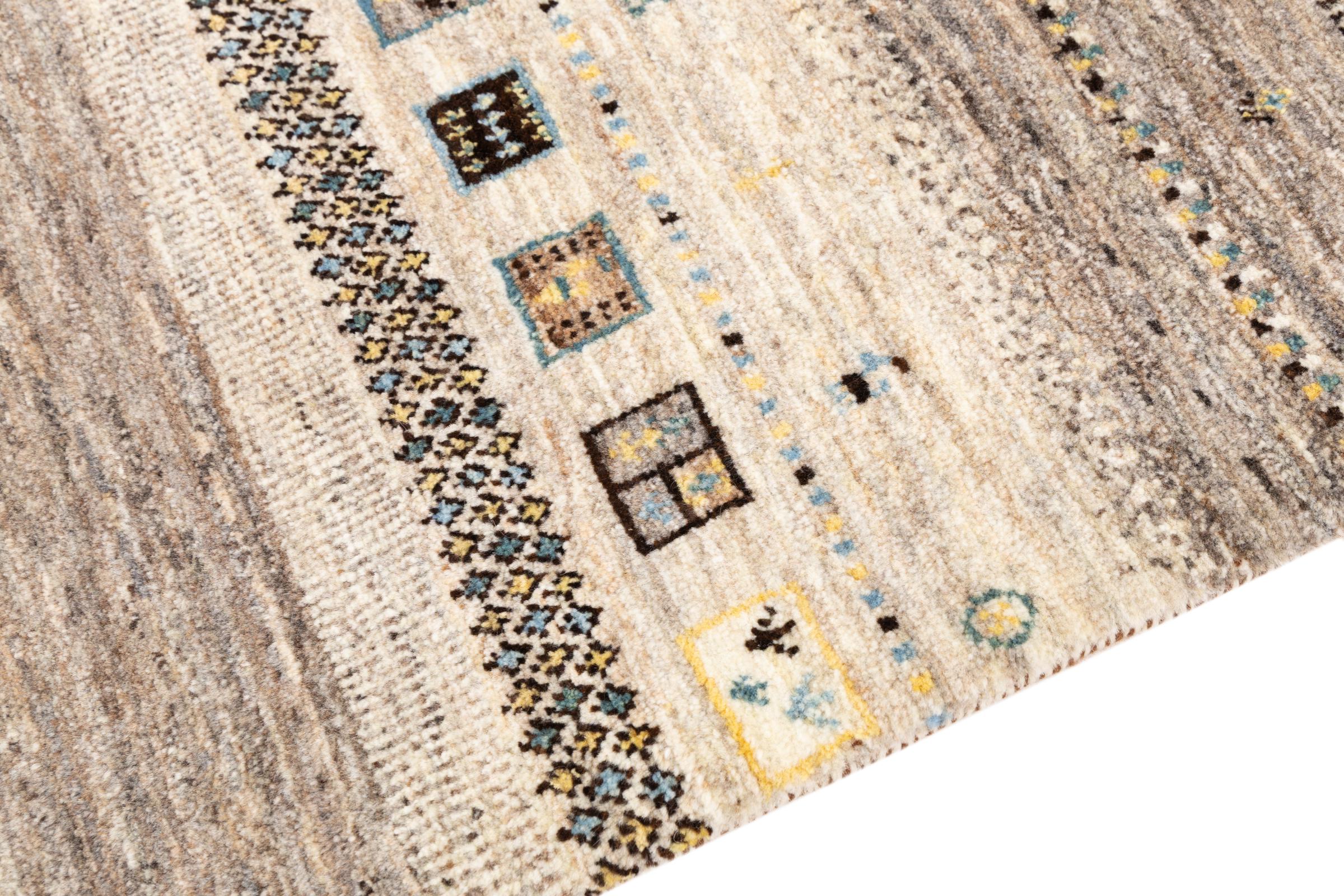 Ce magnifique tapis est un Gabbeh persan et fait donc partie des tapis Gabbeh de la plus haute qualité. Les tapis sont noués par des nomades ou des semi-nomades en Iran selon un savoir-faire traditionnel. Les motifs simples sont pour la plupart inspirés par l'environnement local des nomades. Par exemple, on peut trouver des chameaux, des arbres ou des buissons sur les tapis traditionnels. Les tapis de Gabbeh persan sont faits de laine provenant de troupeaux de moutons élevés localement. La laine est donc encore en grande partie filée à la main. Ainsi, chacun de ces tapis orientaux incarne un caractère unique de culture ancienne.