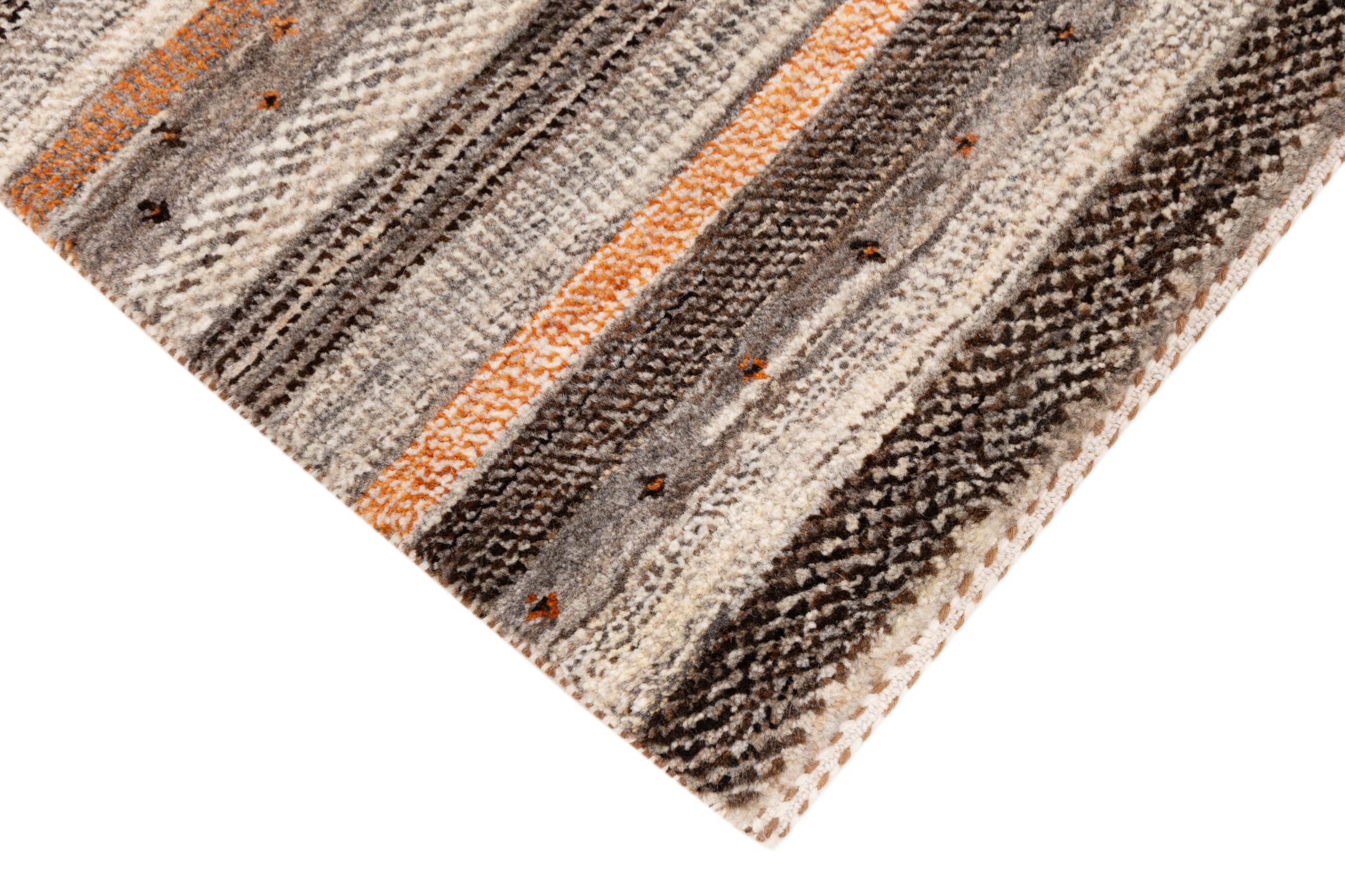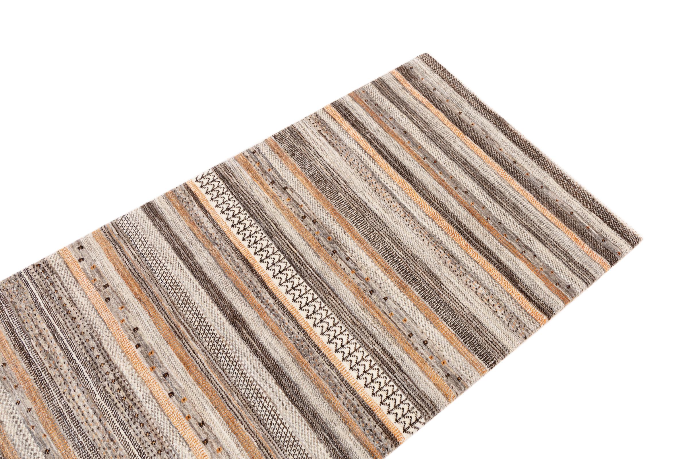 Ce magnifique tapis est un Gabbeh persan et fait donc partie des tapis Gabbeh de la plus haute qualité. Les tapis sont noués par des nomades ou des semi-nomades en Iran selon un savoir-faire traditionnel. Les motifs simples sont pour la plupart inspirés par l'environnement local des nomades. Par exemple, on peut trouver des chameaux, des arbres ou des buissons sur les tapis traditionnels. Les tapis de Gabbeh persan sont faits de laine provenant de troupeaux de moutons élevés localement. La laine est donc encore en grande partie filée à la main. Ainsi, chacun de ces tapis orientaux incarne un caractère unique de culture ancienne.