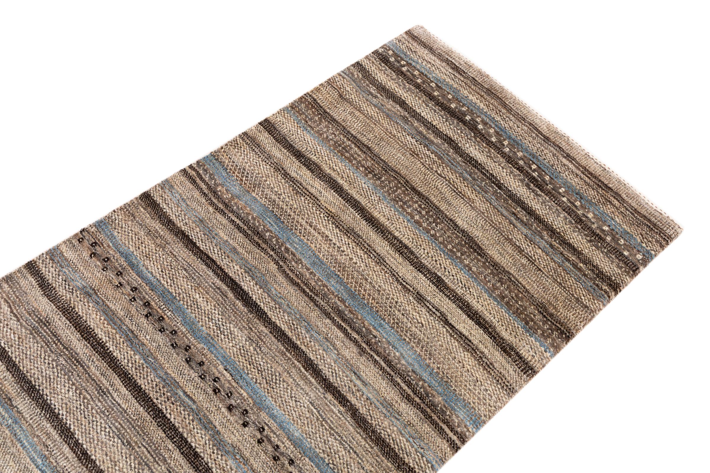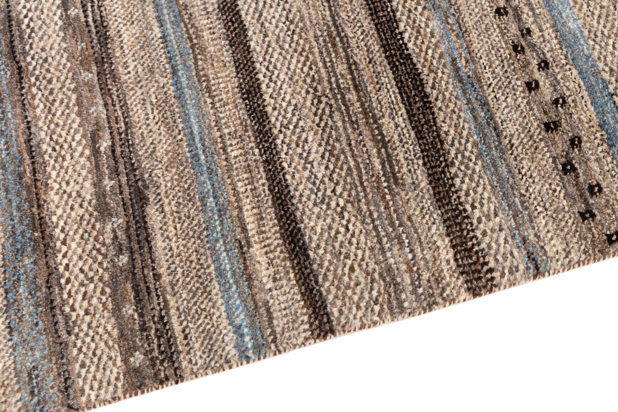 Ce magnifique tapis est un Gabbeh persan et fait donc partie des tapis Gabbeh de la plus haute qualité. Les tapis sont noués par des nomades ou des semi-nomades en Iran selon un savoir-faire traditionnel. Les motifs simples sont pour la plupart inspirés par l'environnement local des nomades. Par exemple, on peut trouver des chameaux, des arbres ou des buissons sur les tapis traditionnels. Les tapis de Gabbeh persan sont faits de laine provenant de troupeaux de moutons élevés localement. La laine est donc encore en grande partie filée à la main. Ainsi, chacun de ces tapis orientaux incarne un caractère unique de culture ancienne.