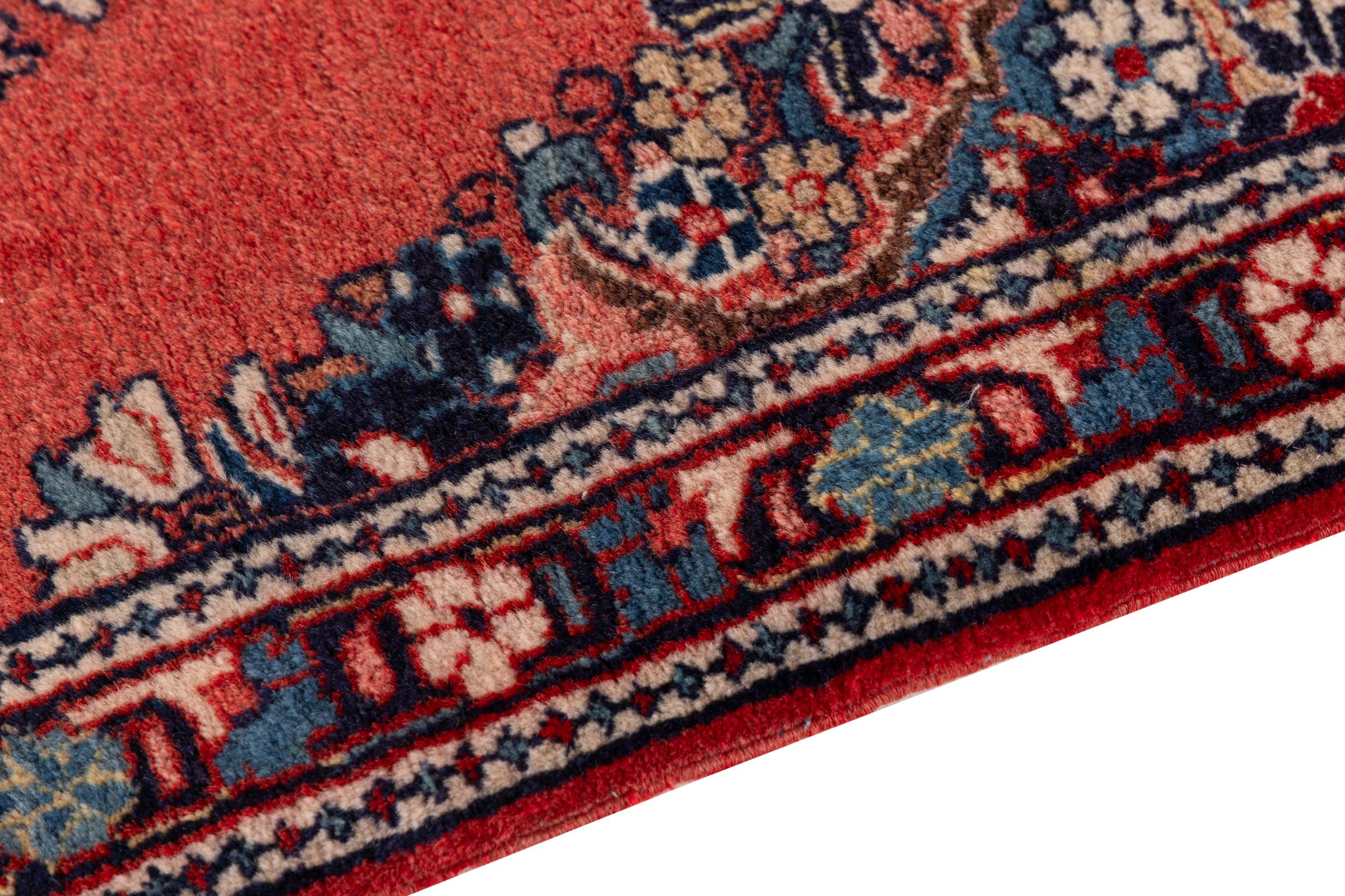 Ce tapis persan a été noué à la main à Sarough. La région possède de lourds tapis de qualité supérieure. Grâce à ses magnifiques motifs, il s’adaptera parfaitement à votre maison.