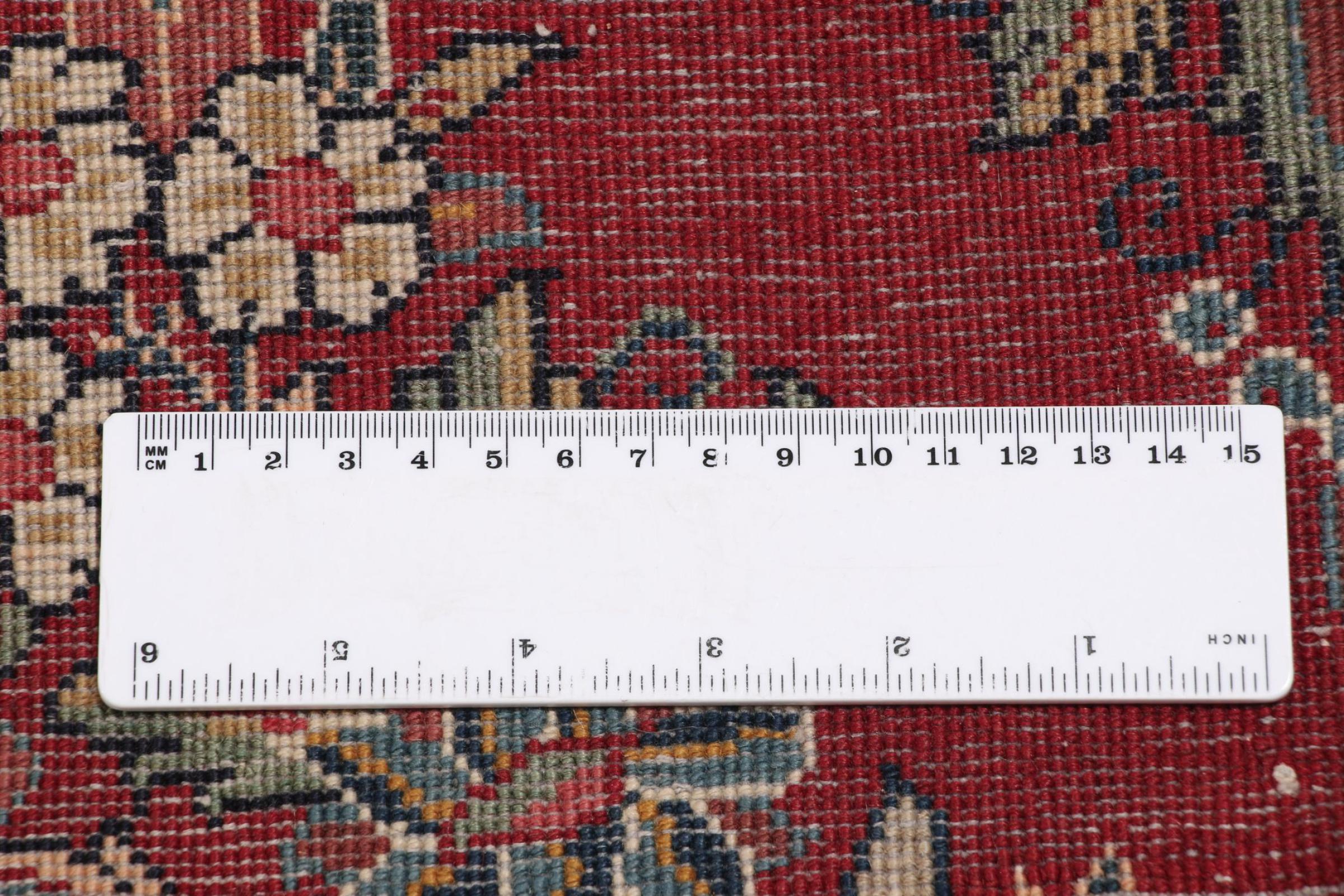 Ce tapis persan a été noué à la main à Sarough. La région possède de lourds tapis de qualité supérieure. Grâce à ses magnifiques motifs, il s’adaptera parfaitement à votre maison.