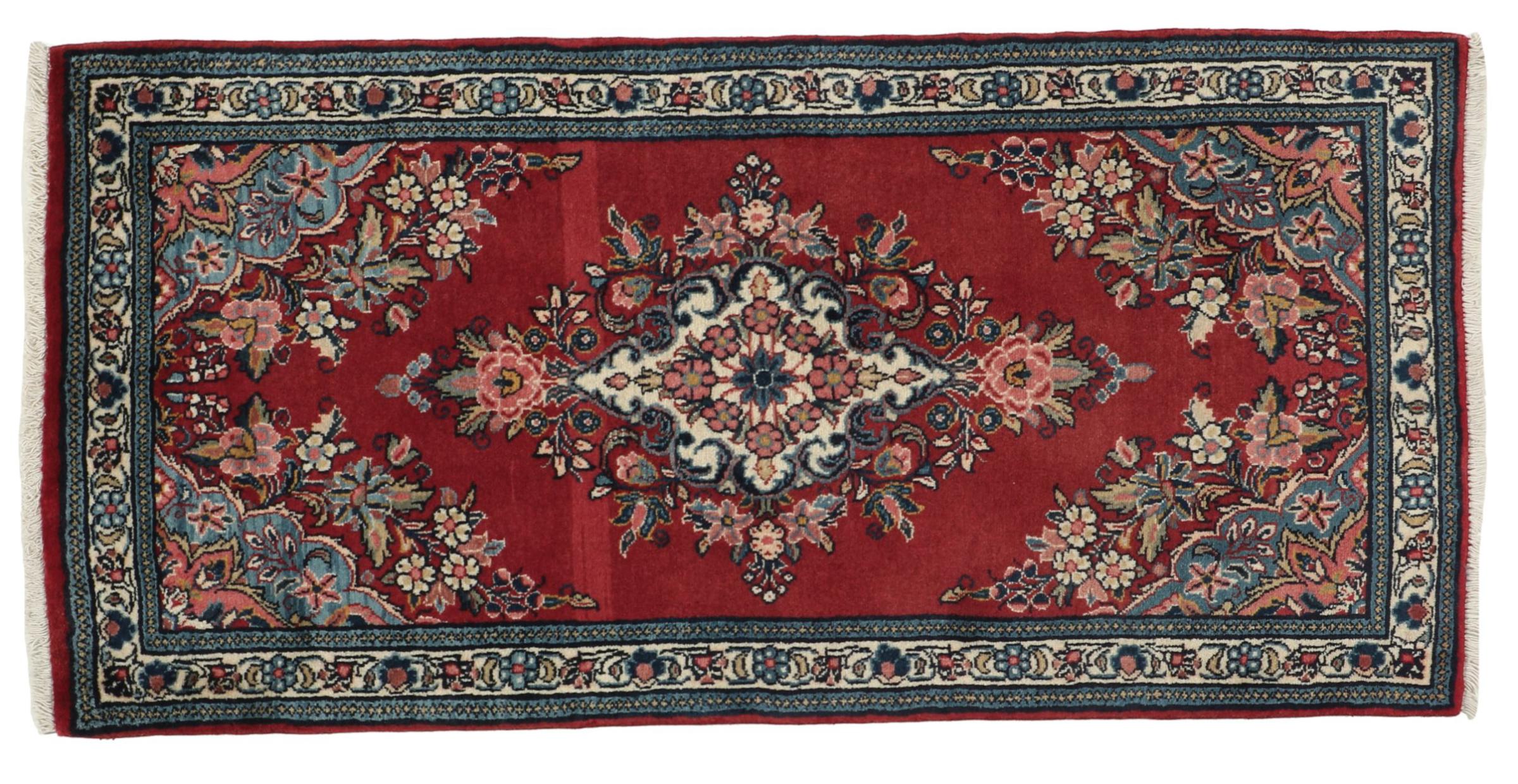 Réf. Article: 309520009434143 Taille: 141x66 cm Épaisseur: ap. 12 mm Densité de nouage: 200 000 - 250 000 / m² Fabrication: Noué à la main Velours: Laine filée à la main Chaîne: Coton Origine: Persie / Iran Âge: Nouveau Poids: ap. 3 kg Également connu sous Arak , Sarough, Sarouk, Saruk, Saroq, Sultanabad Nombre en stock: Unique - Seulement 1 en stock