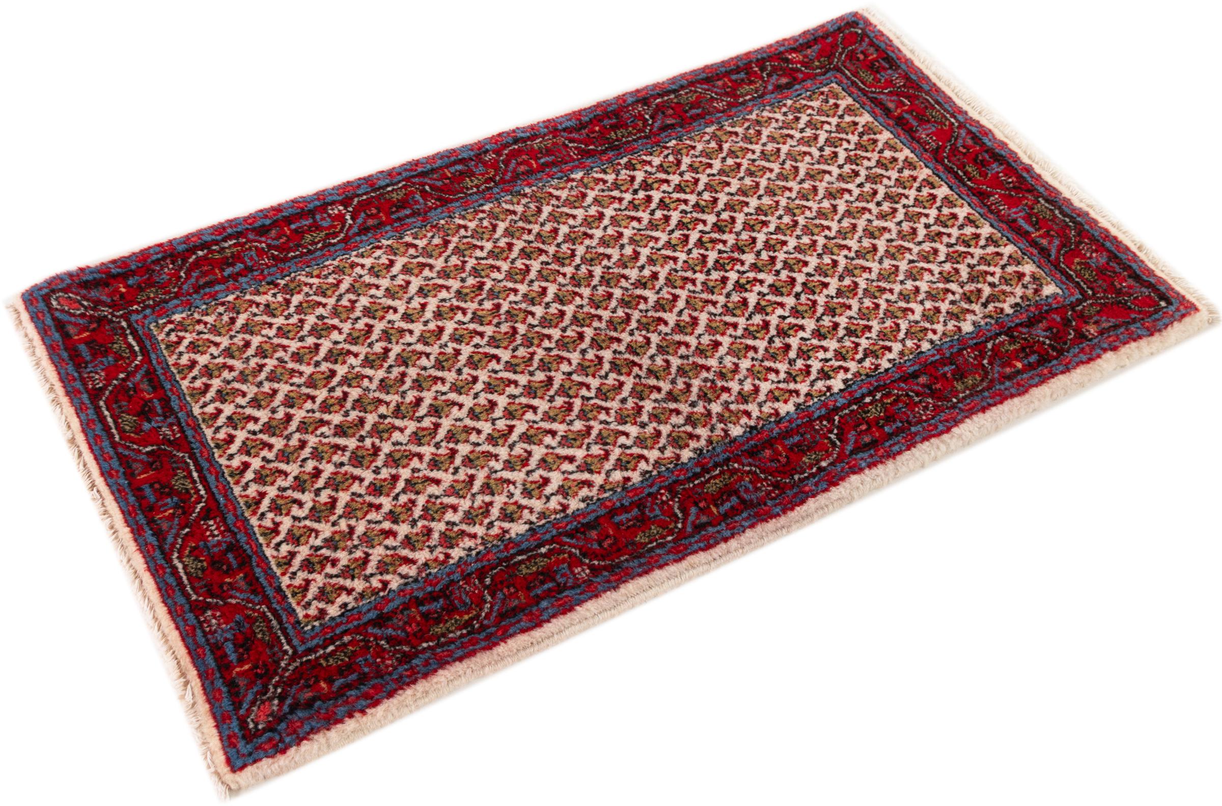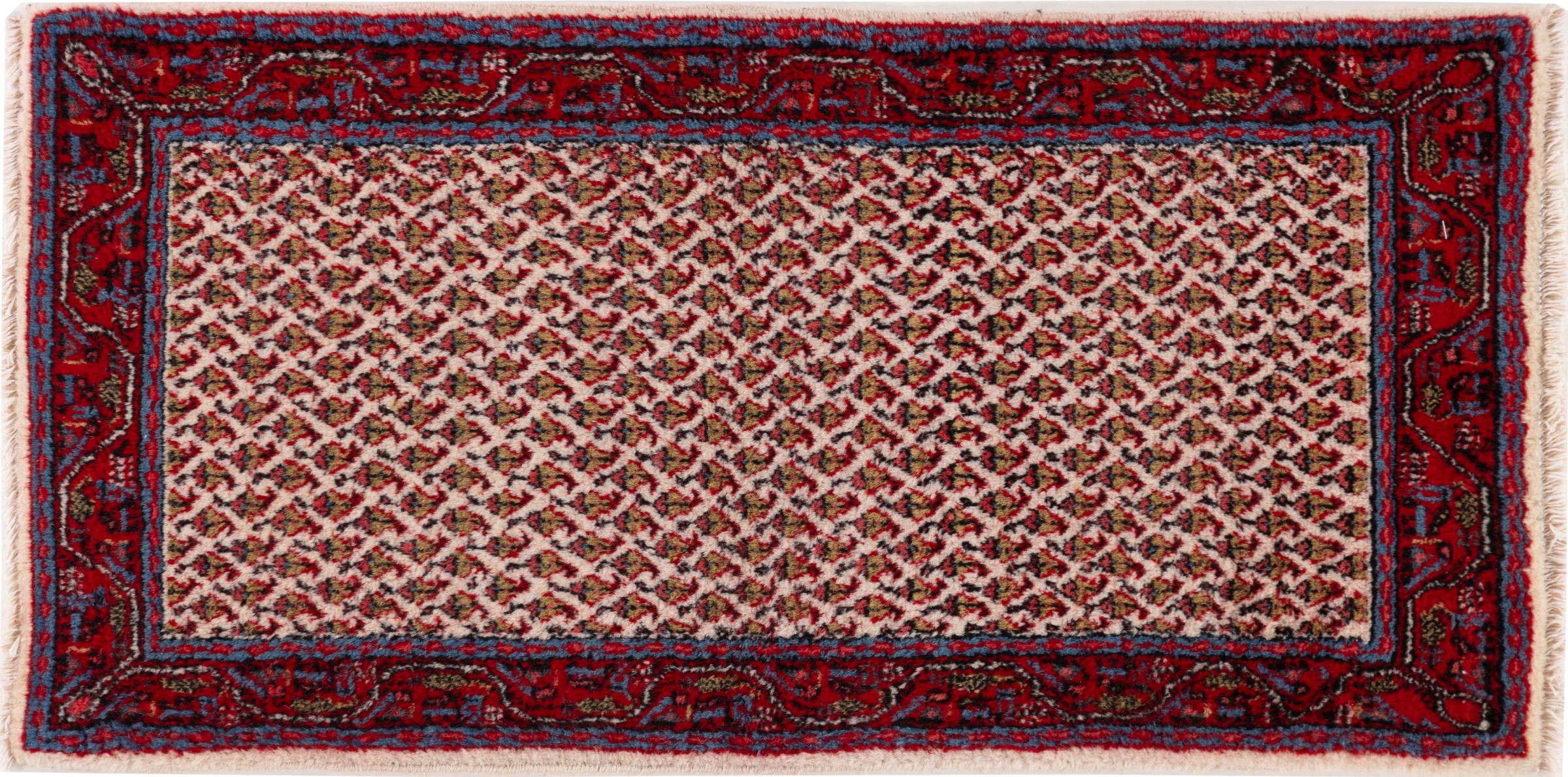 Réf. Article: 30713800105641 Taille: 120x60 cm Épaisseur: ap. 12 mm Densité de nouage: 200 000 - 250 000 / m² Fabrication: Noué à la main Velours: Laine filée à la main Chaîne: Coton Origine: Persie / Iran Âge: Nouveau Poids: ap. 3 kg Également connu sous Sarough Mir Nombre en stock: Unique - Seulement 1 en stock