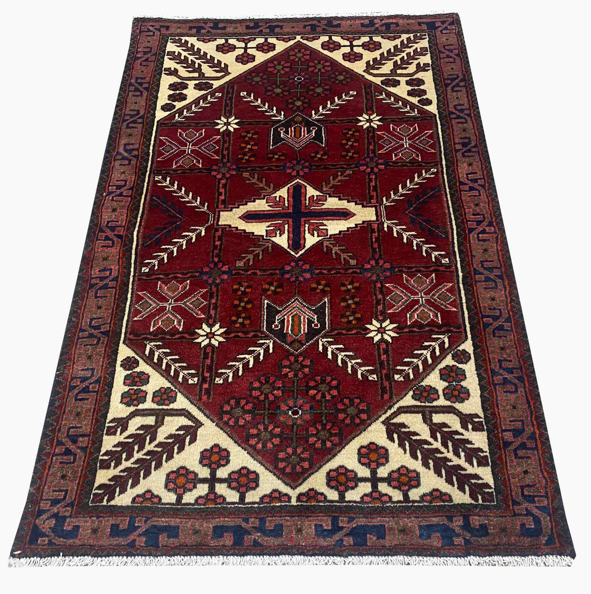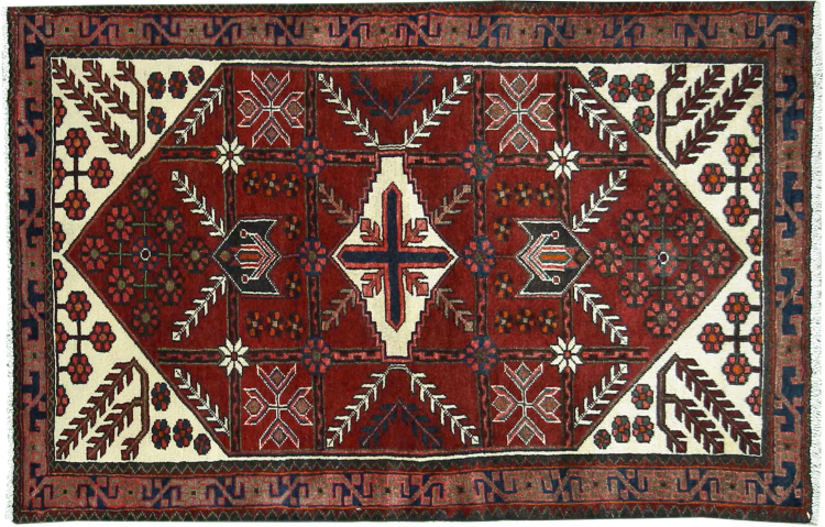 Réf. Article: 318909006972943 Taille: 169x108 cm Épaisseur: ap. 12 mm Densité de nouage: 128 000 - 160 000 / m² Fabrication: Noué à la main Velours: Laine filée à la main Chaîne: Coton Origine: Persie / Iran Âge: Nouveau Poids: ap. 6 kg Nombre en stock: Unique - Seulement 1 en stock