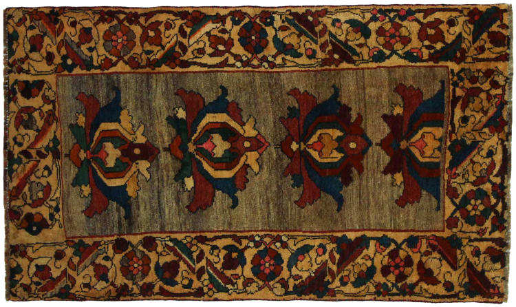 Ce tapis appartient aux tapis de village et de nomade d'Iran, anciennement la Perse. Ce type de tapis est noué à la main dans les petites villes et les villages selon l'ancienne tradition. Même les nomades nouent encore des tapis persans en plein air. Les tapis sont noués sans schéma et entièrement à partir de la tête. Ils se caractérisent par des ornements classiques, qui sont disposés en motifs droits et géométriques. Grâce à leur origine culturelle et traditionnelle, ces tapis ont un caractère unique qui incarne la Perse ancienne.