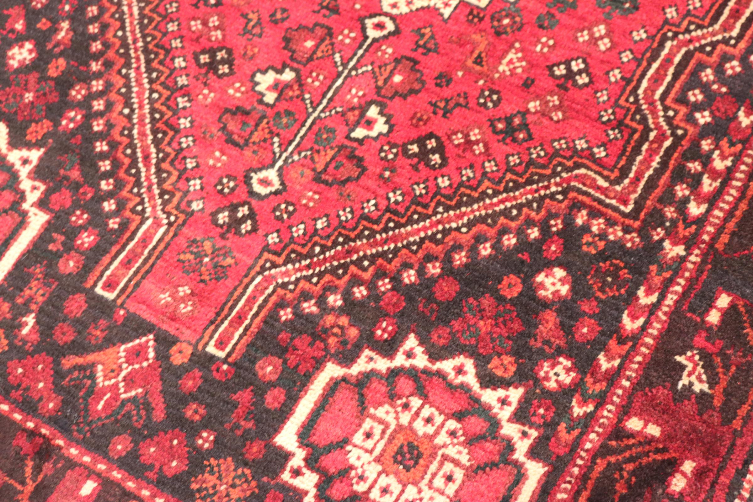 Ce tapis Shiraz reflète l’artisanat des nomades de la province Fars. Son design simple, les couleurs magnifiques et la bonne qualité parlent en sa faveur, tout comme sa longévité. Si vous aimez les tapis persans, vous adorerez les tapis Shiraz.