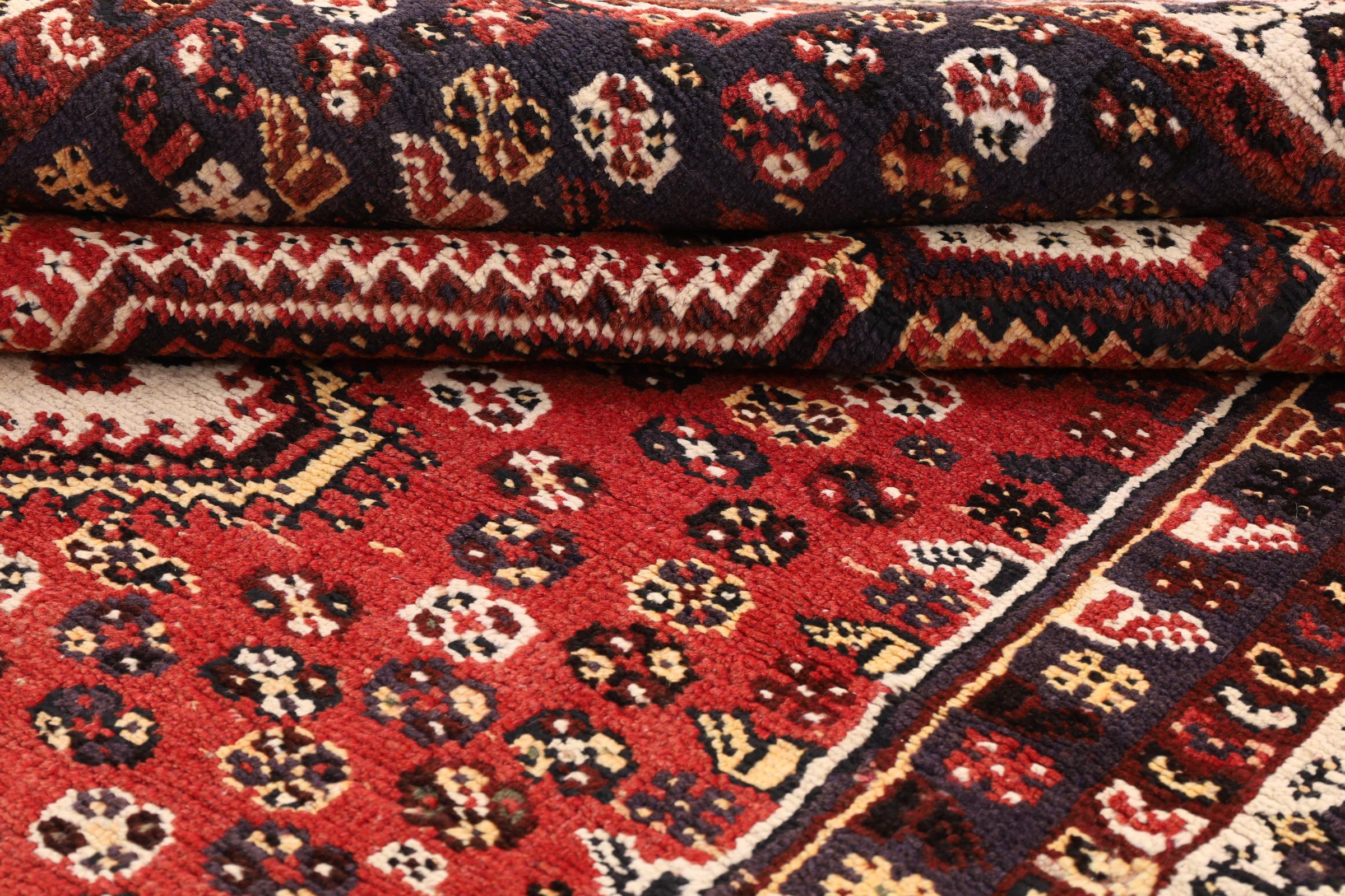 Ce tapis appartient aux tapis de village et de nomade d'Iran, anciennement la Perse. Ce type de tapis est noué à la main dans les petites villes et les villages selon l'ancienne tradition. Même les nomades nouent encore des tapis persans en plein air. Les tapis sont noués sans schéma et entièrement à partir de la tête. Ils se caractérisent par des ornements classiques, qui sont disposés en motifs droits et géométriques. Grâce à leur origine culturelle et traditionnelle, ces tapis ont un caractère unique qui incarne la Perse ancienne.