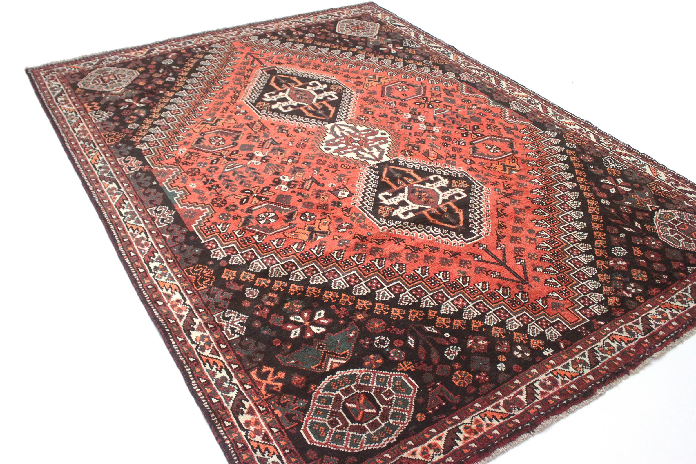 Ce tapis Shiraz reflète l’artisanat des nomades de la province Fars. Son design simple, les couleurs magnifiques et la bonne qualité parlent en sa faveur, tout comme sa longévité. Si vous aimez les tapis persans, vous adorerez les tapis Shiraz.