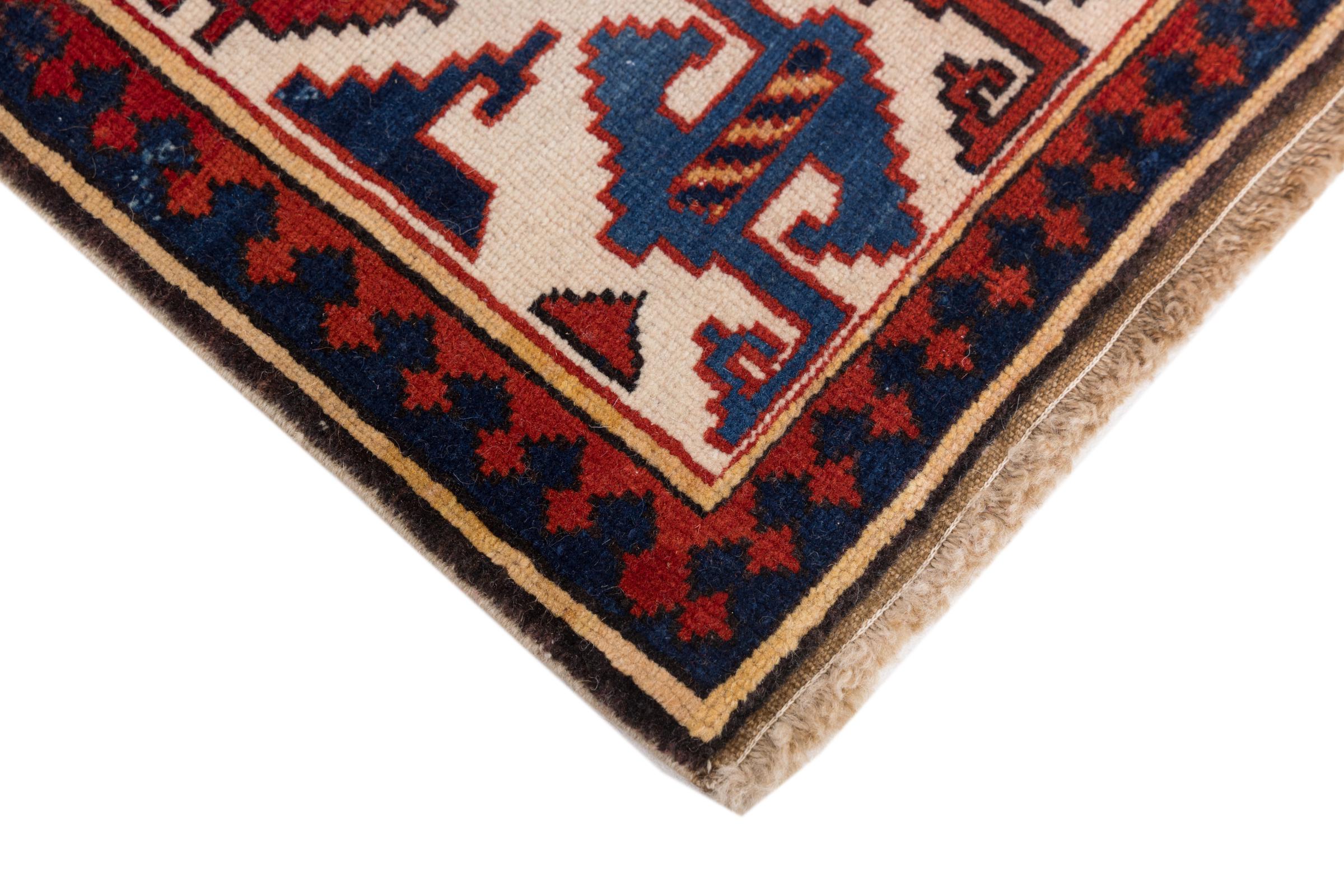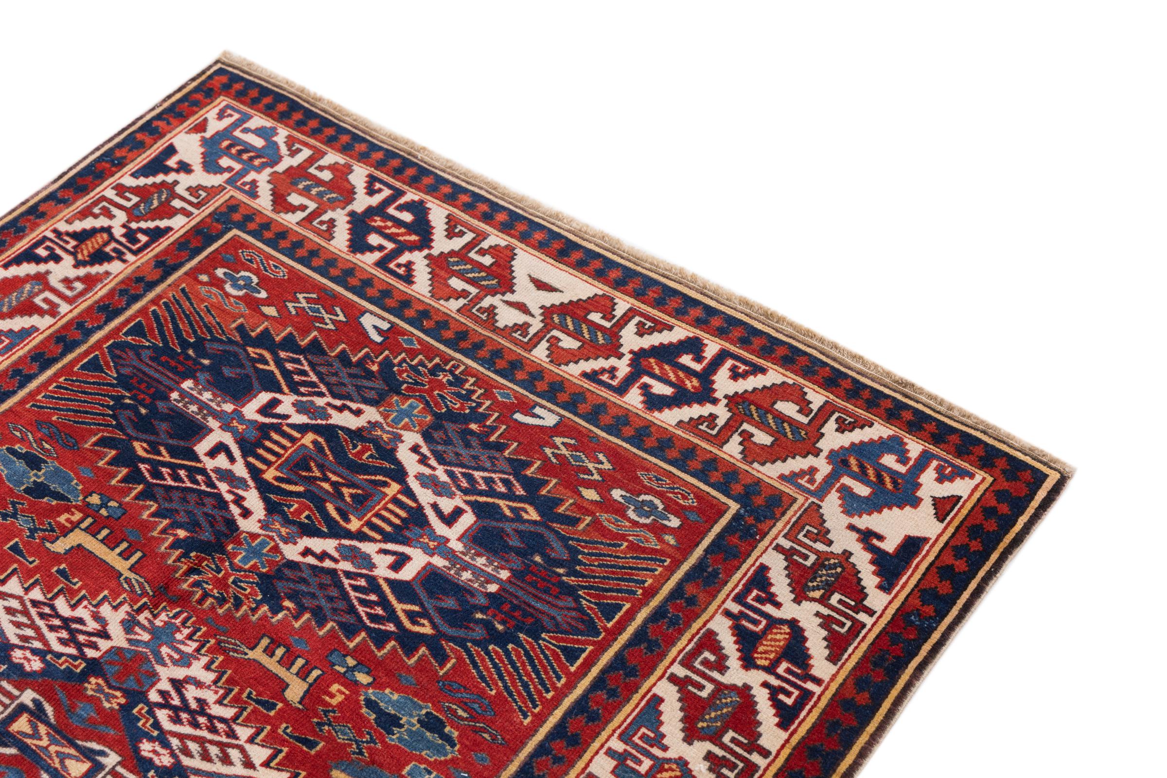 Ce tapis Shirvan noué à la main est un tapis très robuste de la région Est du Caucase, qui captive l’œil grâce à ses splendides couleurs et ses beaux éléments décoratifs. Grâce à sa forte densité de nœuds, il est également durable dans le temps.