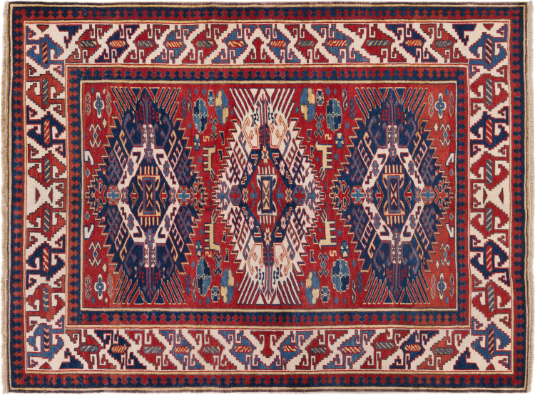 Réf. Article: 296830001882 Taille: 172x128 cm Épaisseur: ap. 12 mm Densité de nouage: 360 000 - 400 000 / m² Fabrication: Noué à la main Velours: Laine filée à la main Chaîne: Laine de mouton Origine: Persie / Iran Âge: Vieux/Semi antique, over 50 ans Poids: ap. 7 kg Également connu sous Afghan Shirvan, Kaukasisch Nombre en stock: Unique - Seulement 1 en stock