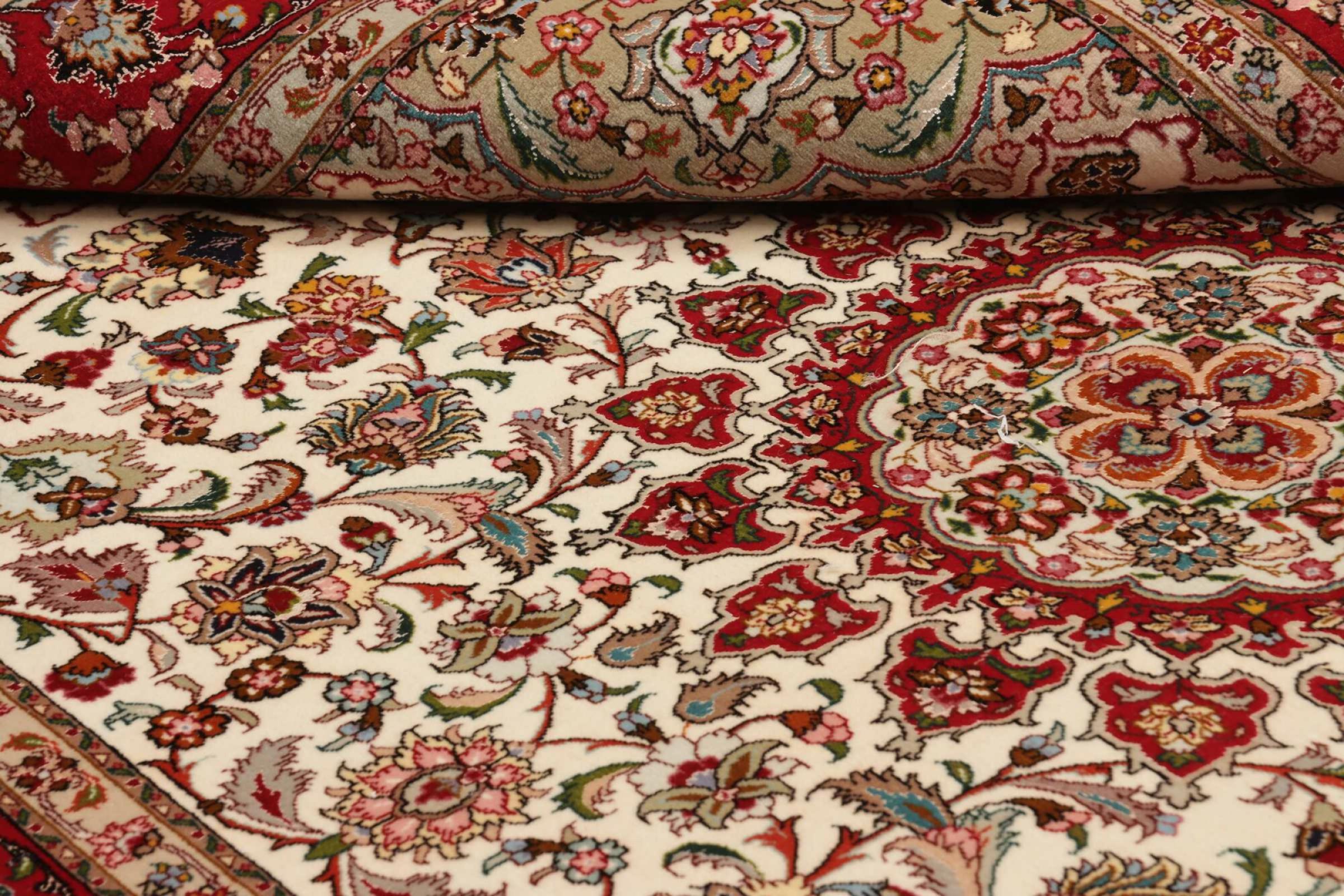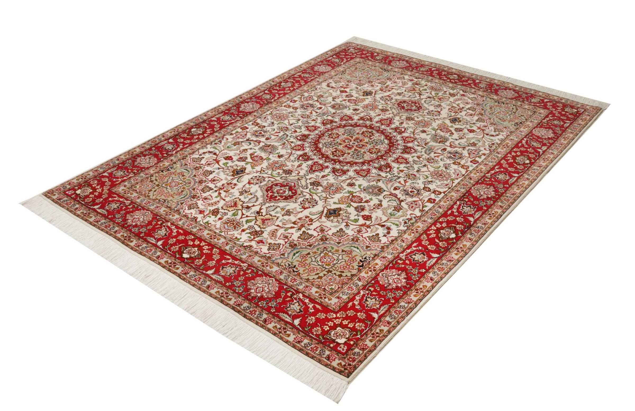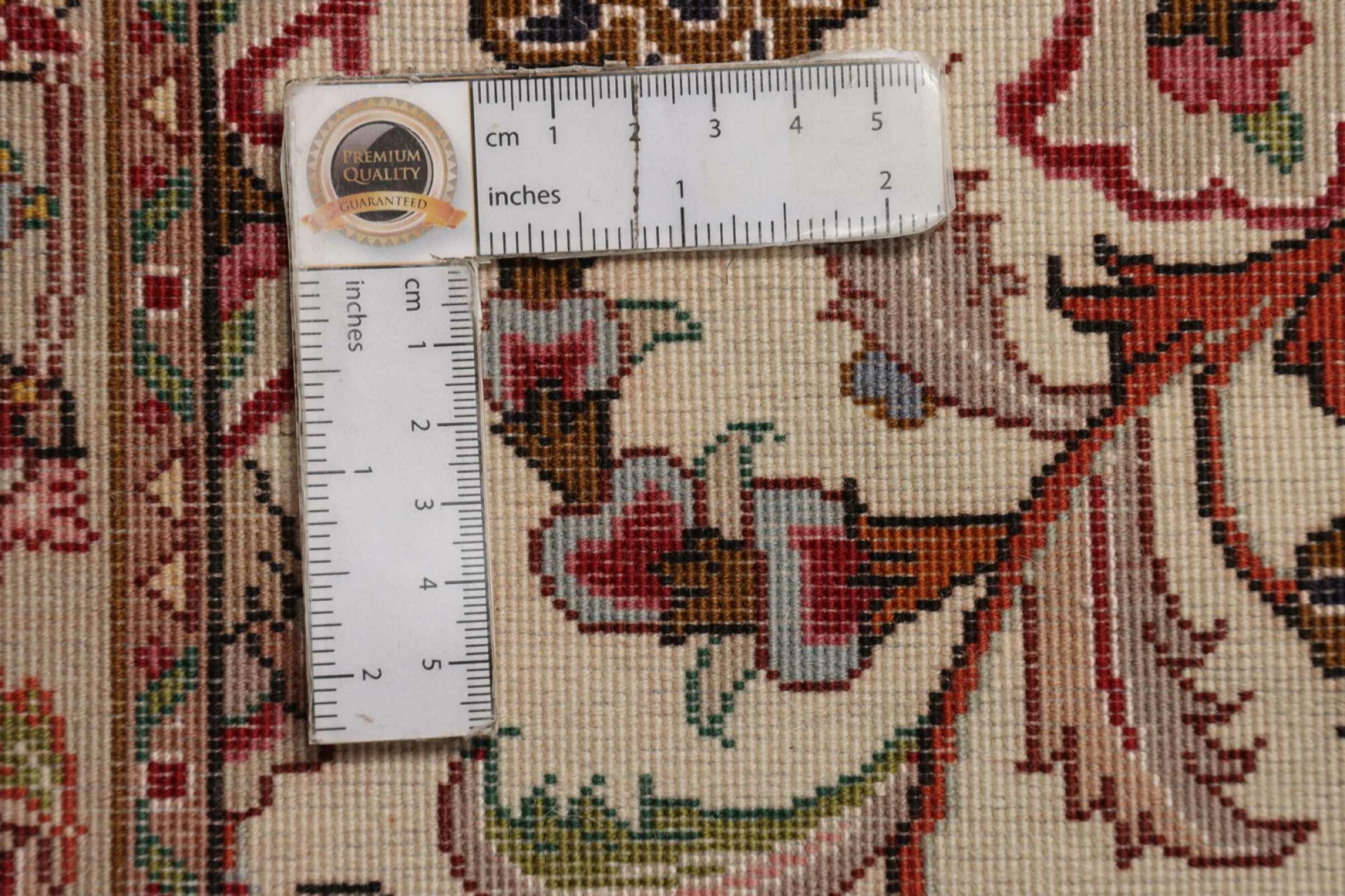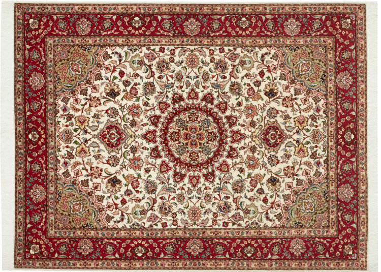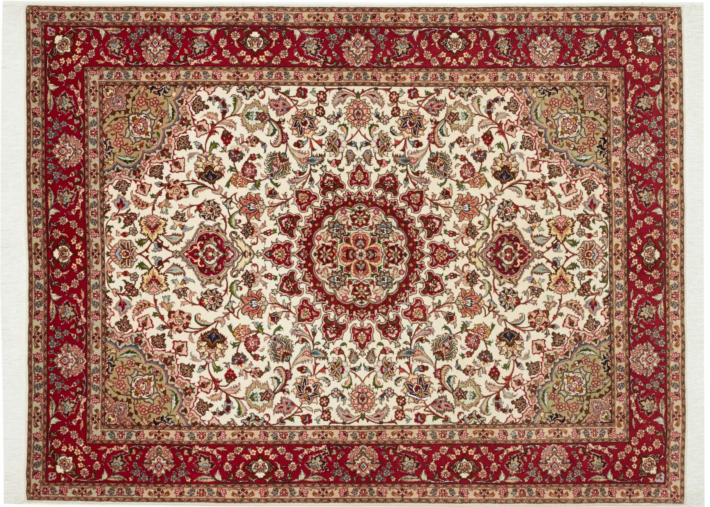 Réf. Article: 242202006532551 Taille: 206x149 cm Épaisseur: ap. 7 mm Densité de nouage: 600 000 / m² Fabrication: Noué à la main Velours: Laine avec de la soie Chaîne: Coton Origine: Persie / Iran Âge: Nouveau Poids: ap. 9 kg Également connu sous Tabriz, Tabris, Täbris, Tebriz, Tebris, 40Raj, 50Raj Nombre en stock: Unique - Seulement 1 en stock