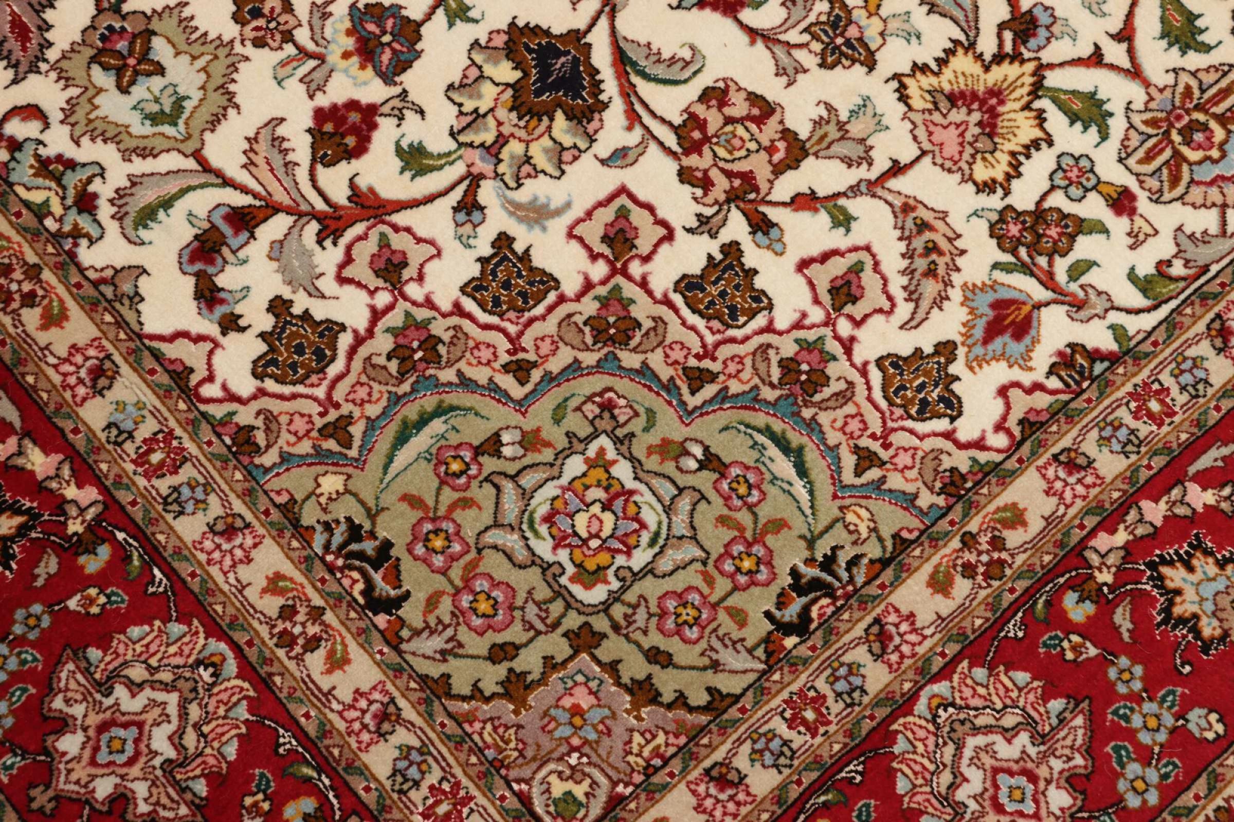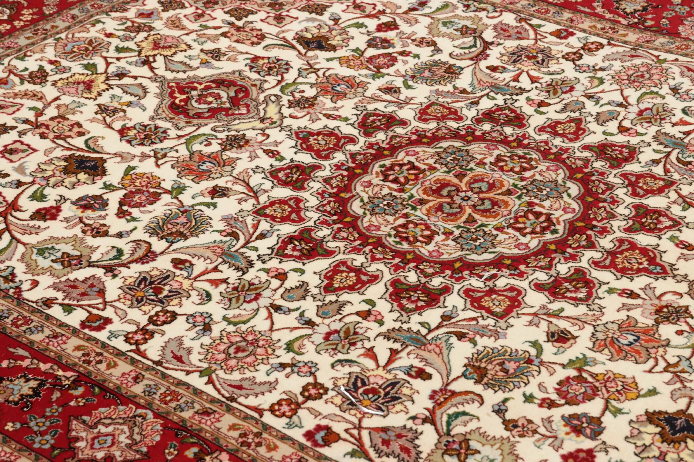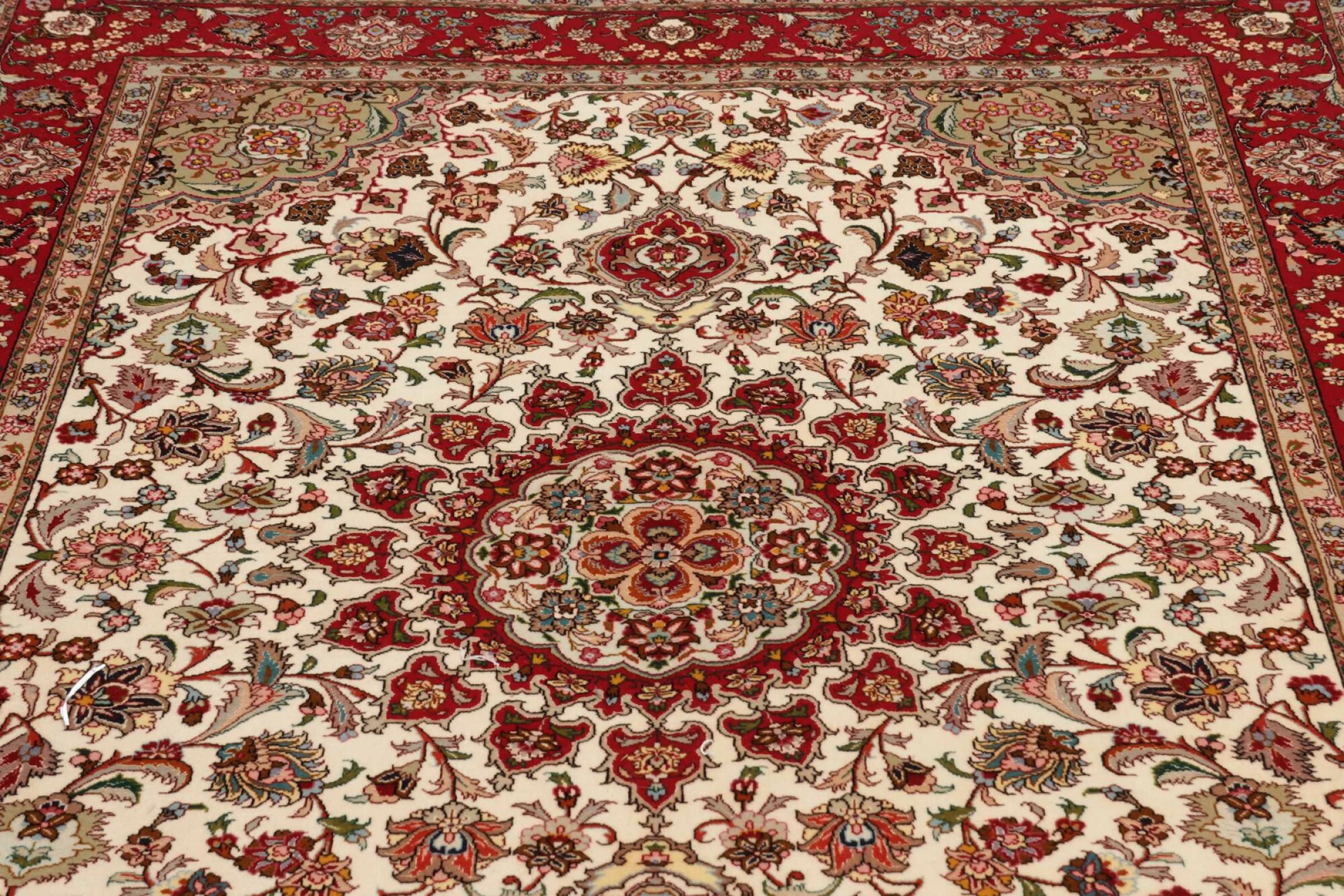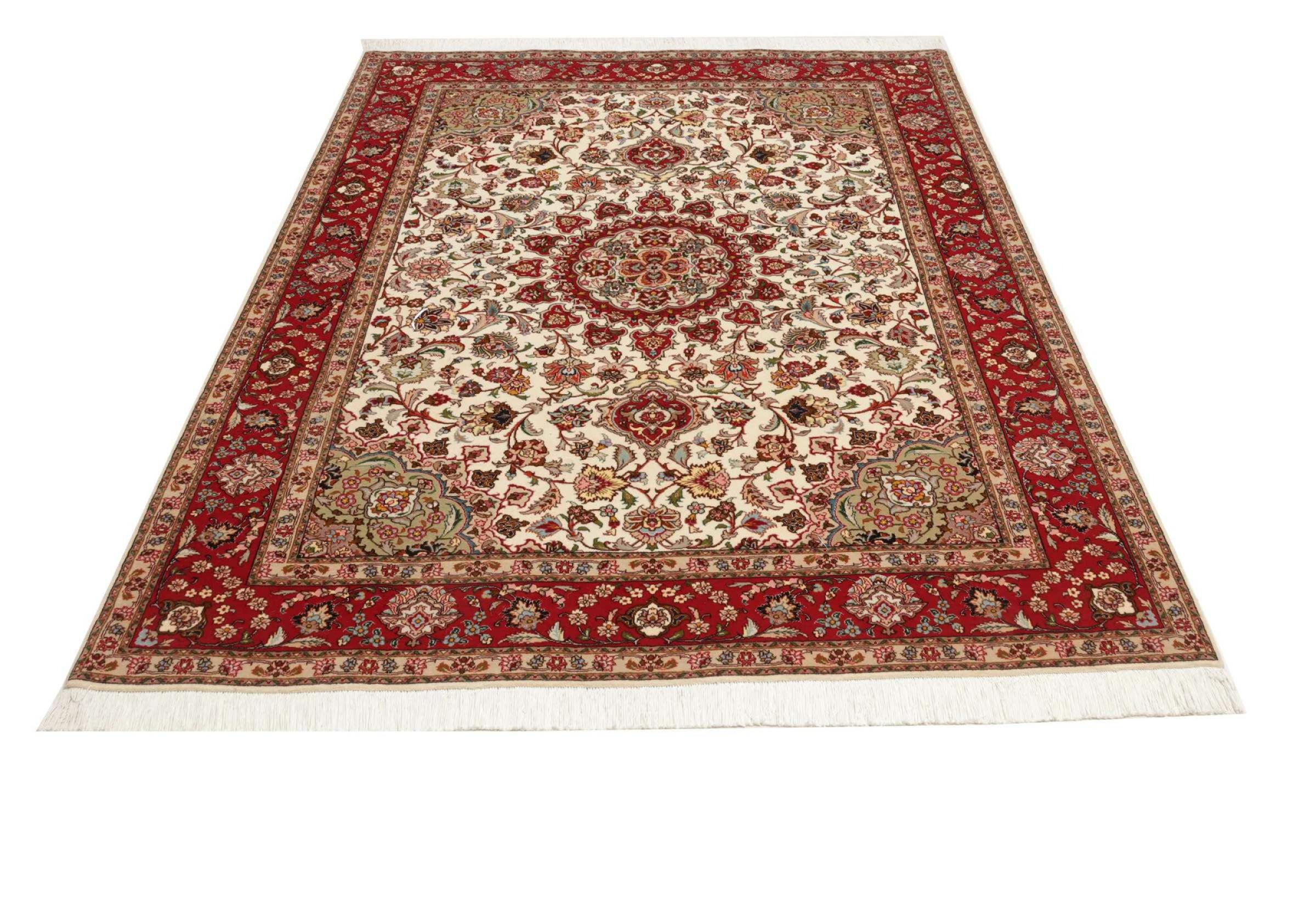Réf. Article: 242202006532551 Taille: 206x149 cm Épaisseur: ap. 7 mm Densité de nouage: 600 000 / m² Fabrication: Noué à la main Velours: Laine avec de la soie Chaîne: Coton Origine: Persie / Iran Âge: Nouveau Poids: ap. 9 kg Également connu sous Tabriz, Tabris, Täbris, Tebriz, Tebris, 40Raj, 50Raj Nombre en stock: Unique - Seulement 1 en stock