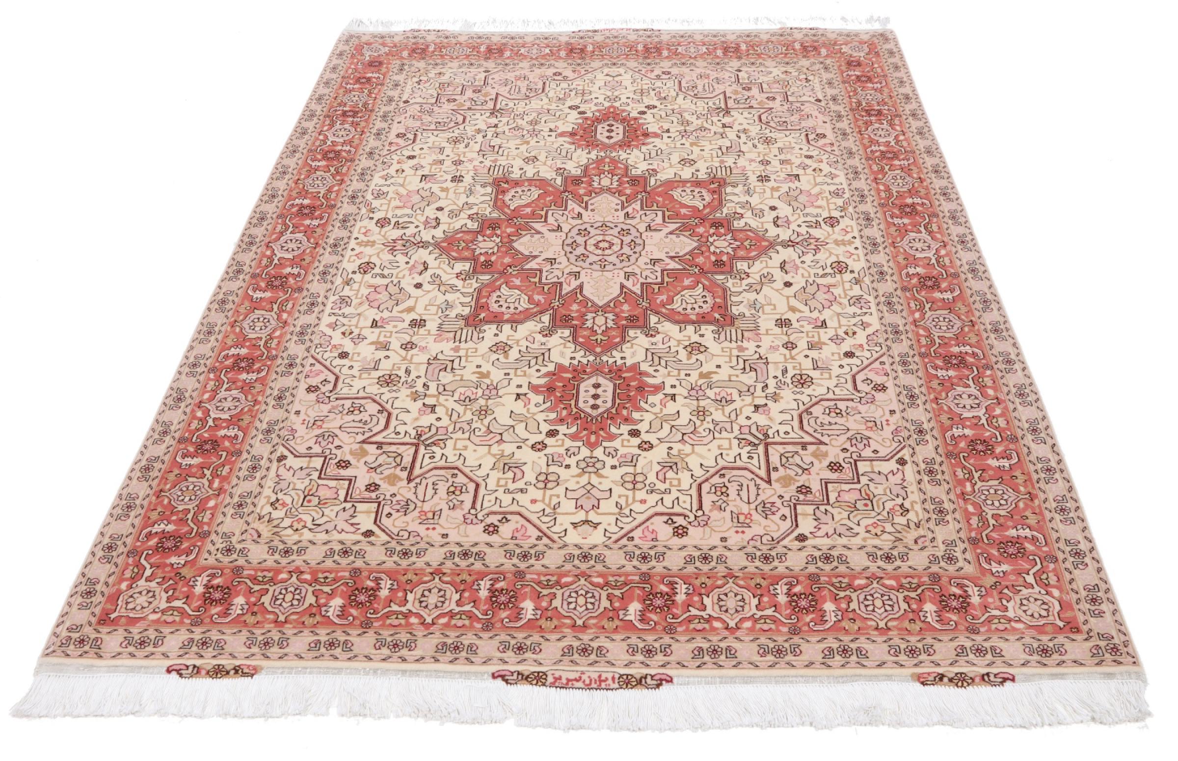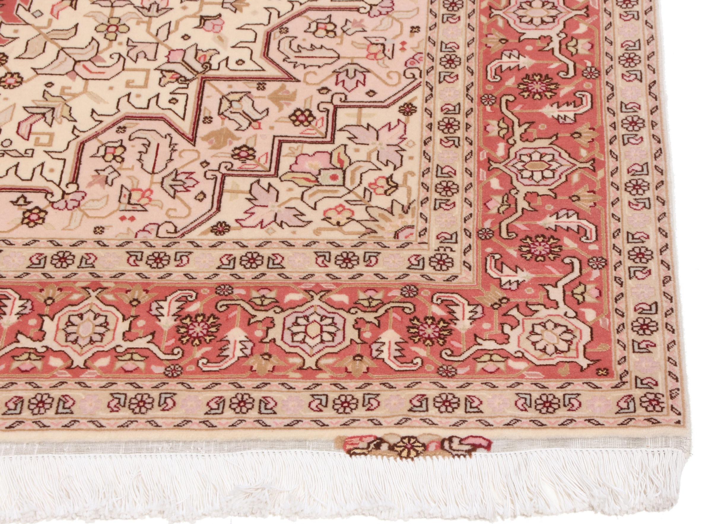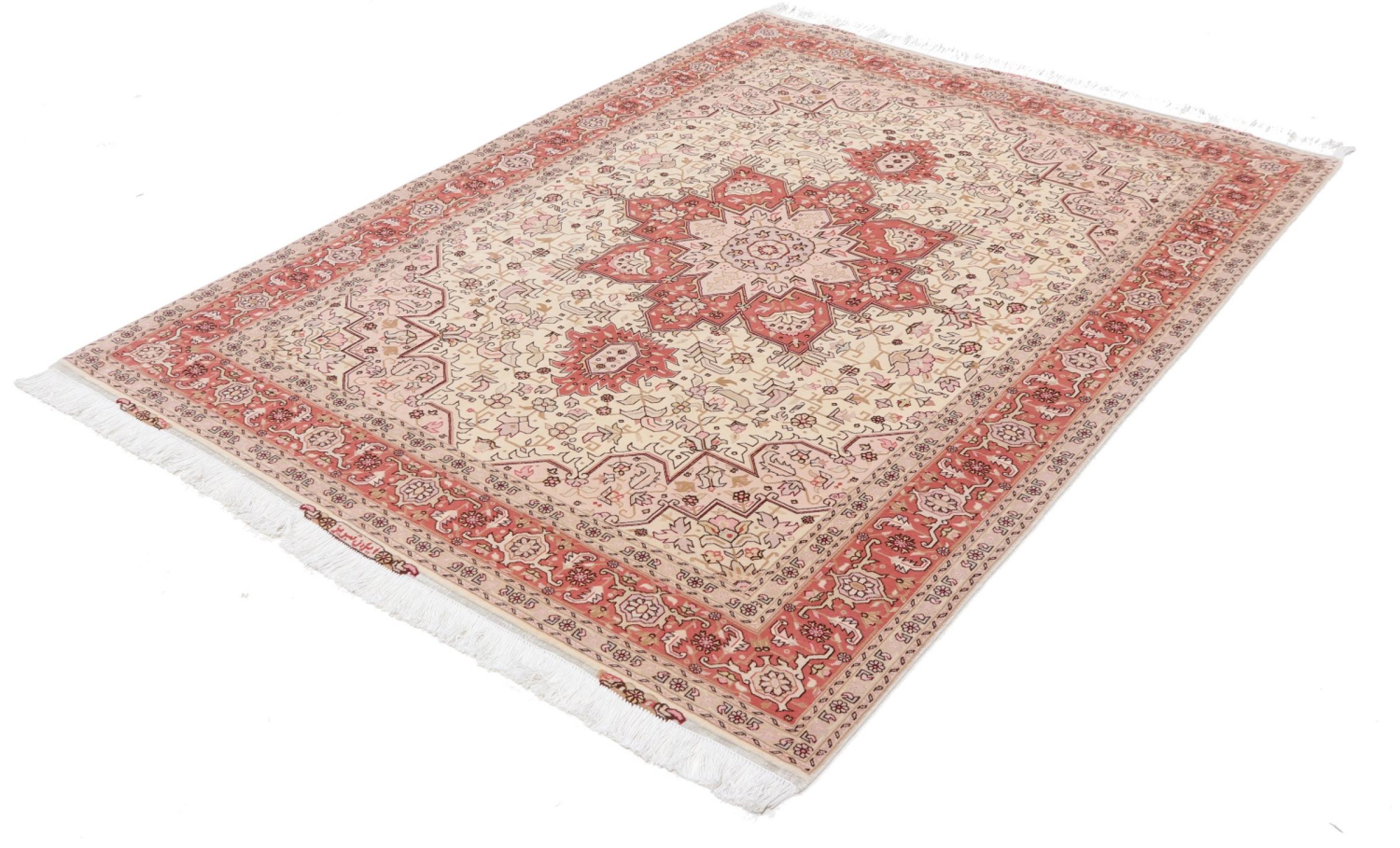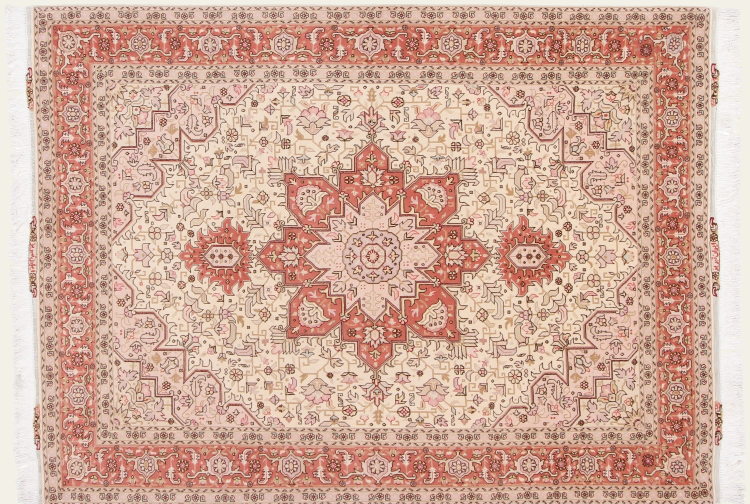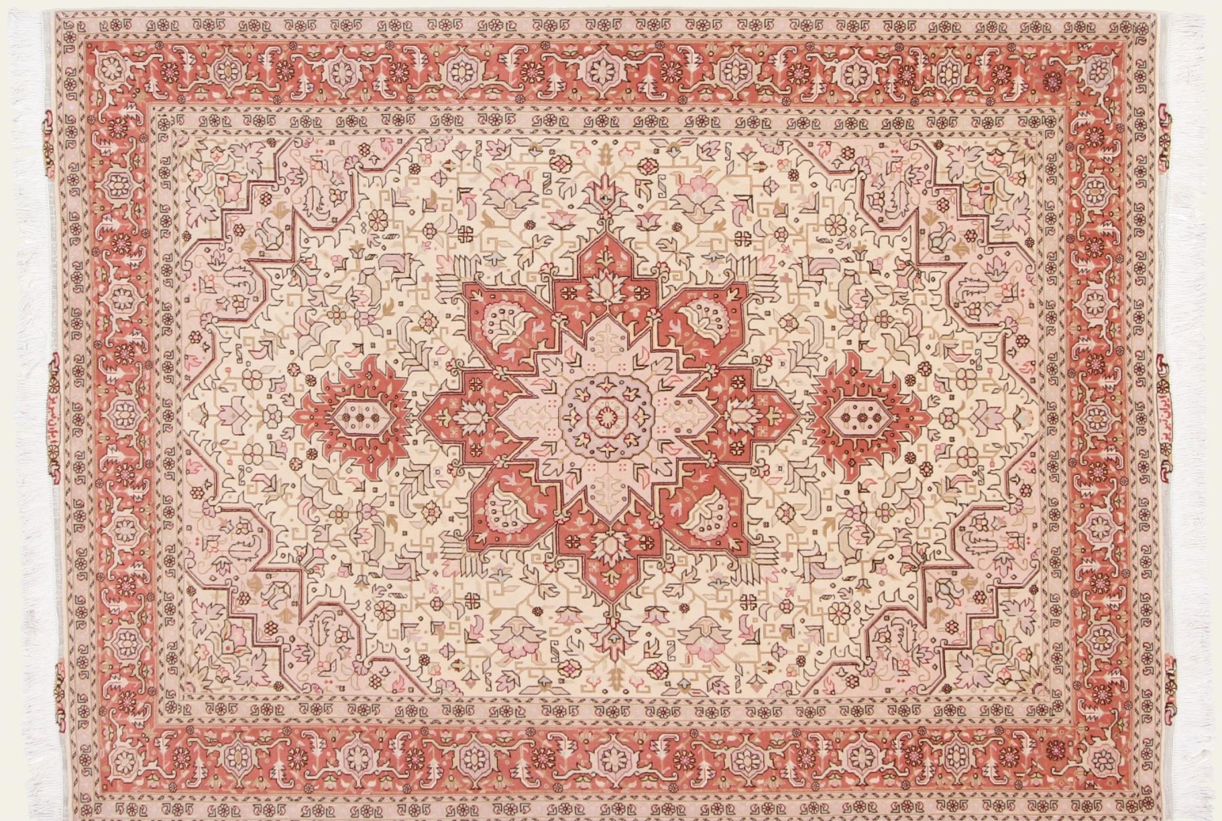 Réf. Article: 39010048962 Taille: 207x154 cm Épaisseur: ap. 7 mm Densité de nouage: 450 000 - 500 000 / m² Fabrication: Noué à la main Velours: Laine avec de la soie Chaîne: Coton Origine: Persie / Iran Âge: Nouveau Poids: ap. 10 kg Également connu sous Tabriz, Tabris, Täbris, Tebriz, Tebris, 40Raj, 50Raj Nombre en stock: Unique - Seulement 1 en stock