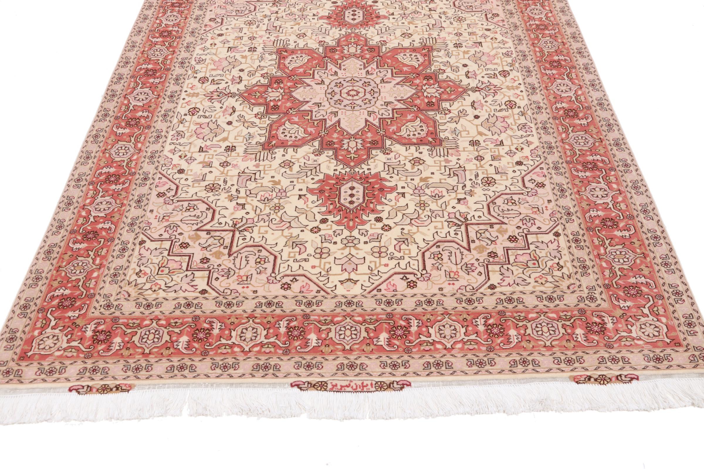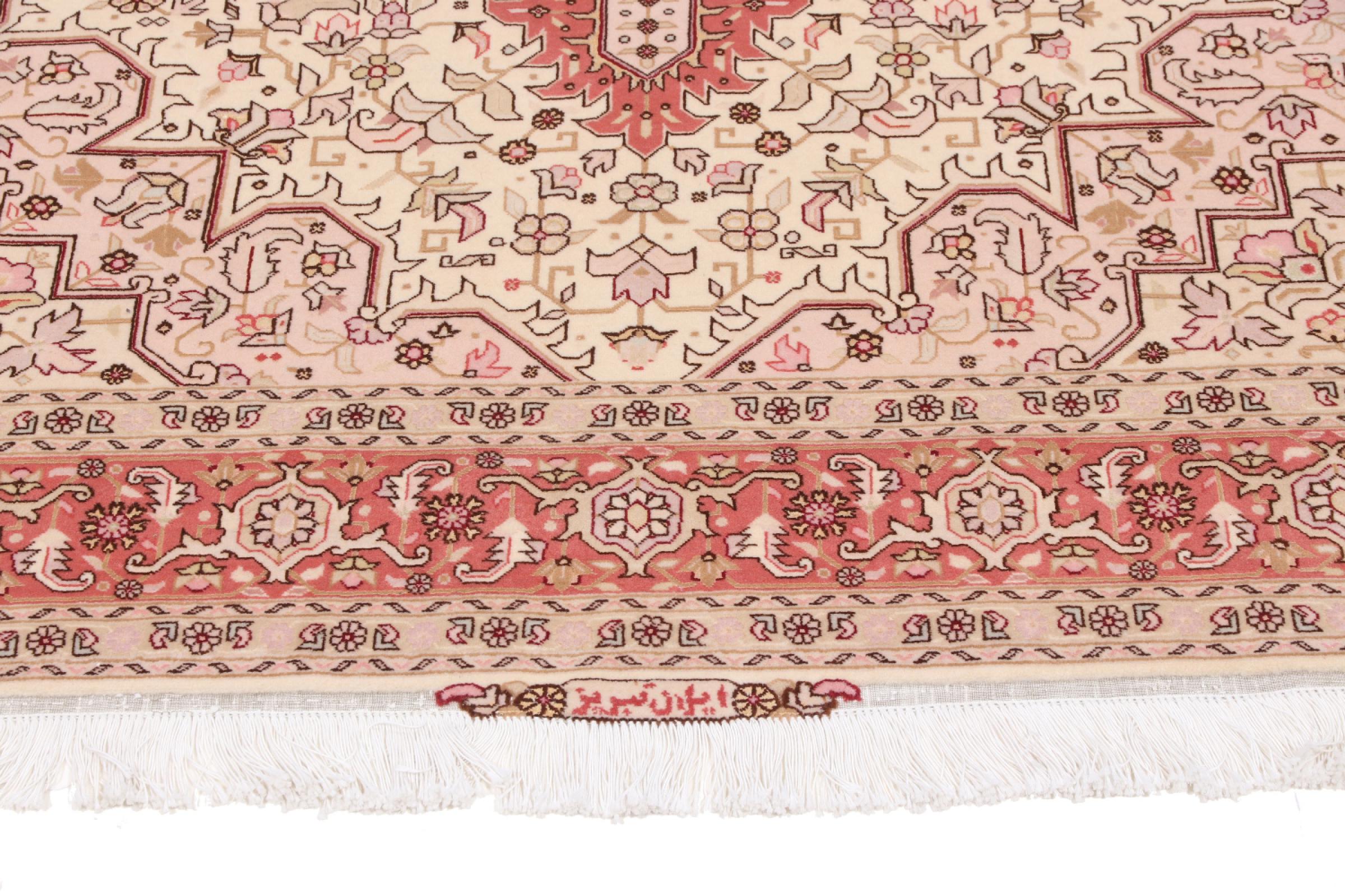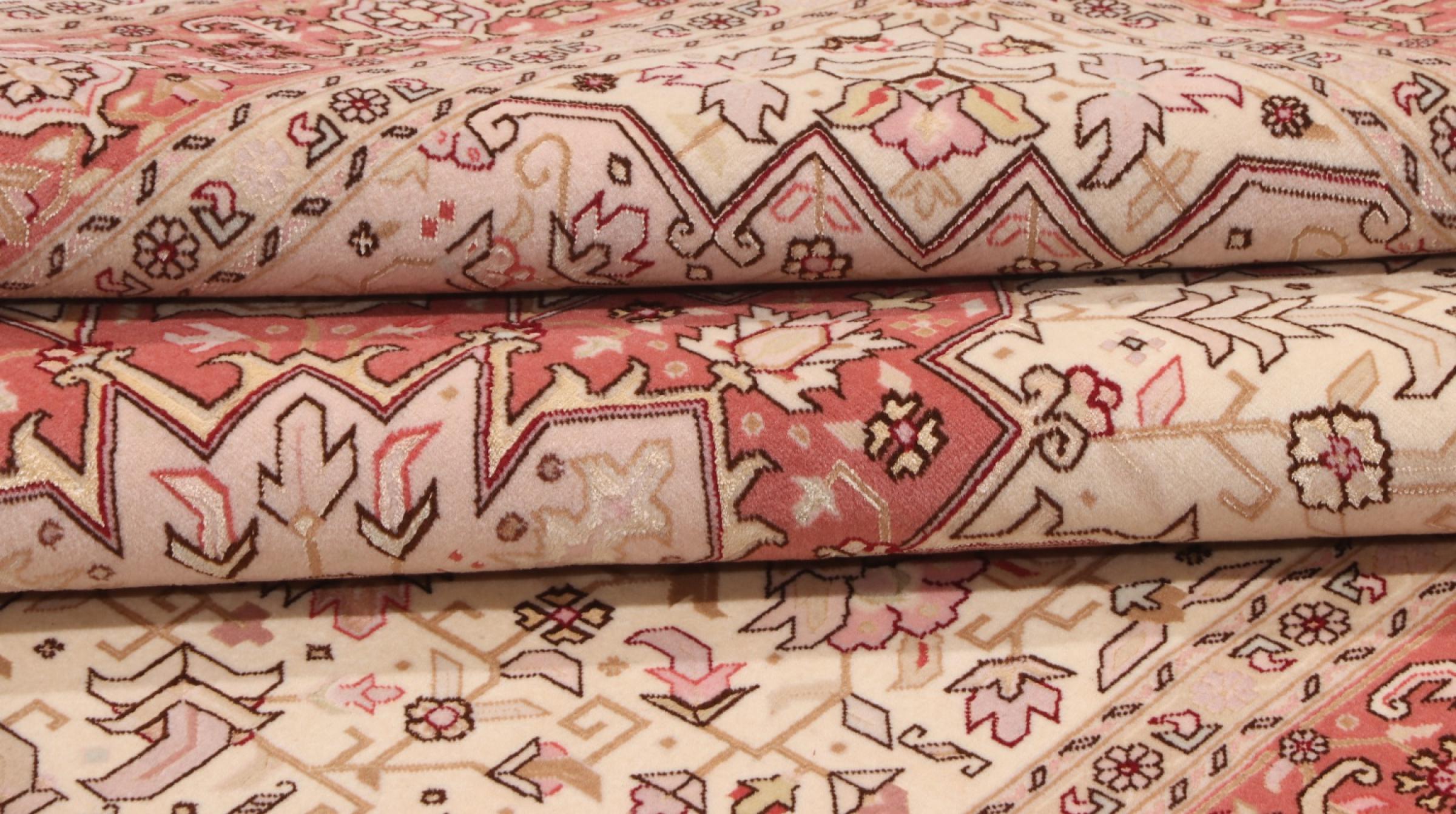 Tabriz est l'une des plus grandes villes d'Iran et l'une des plus célèbres provinces de tapis persans. Les tapis de Tabriz sont souvent indiqués par un numéro "Raj". Plus ce chiffre est élevé, plus le tapis est fin, car il indique la densité des nœuds. Il existe des tapis persans de Tabriz de classe moyenne (40 Raj) et de classe exceptionnellement fine (80 Raj).