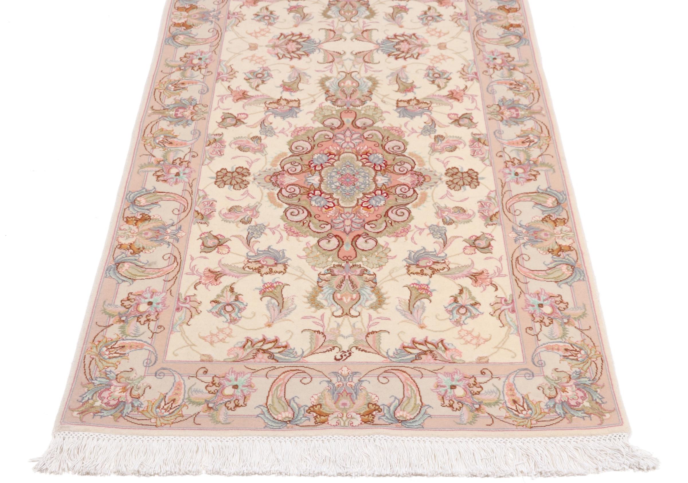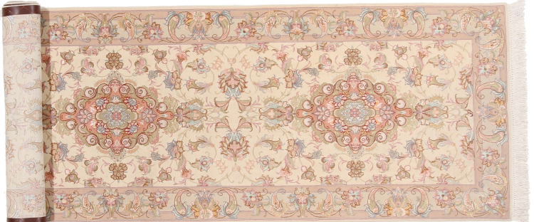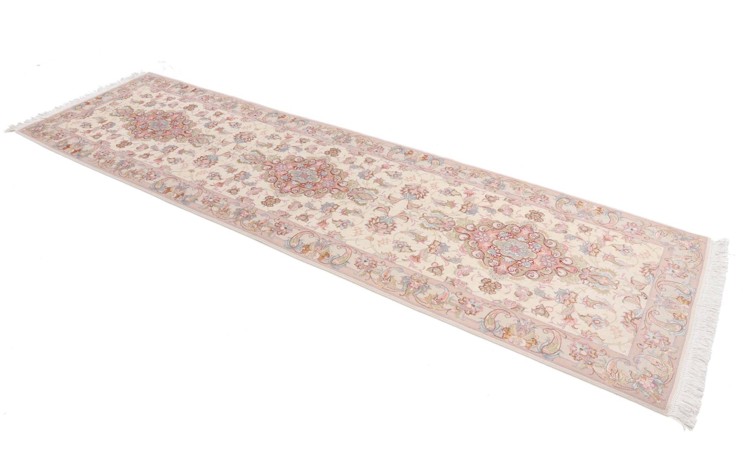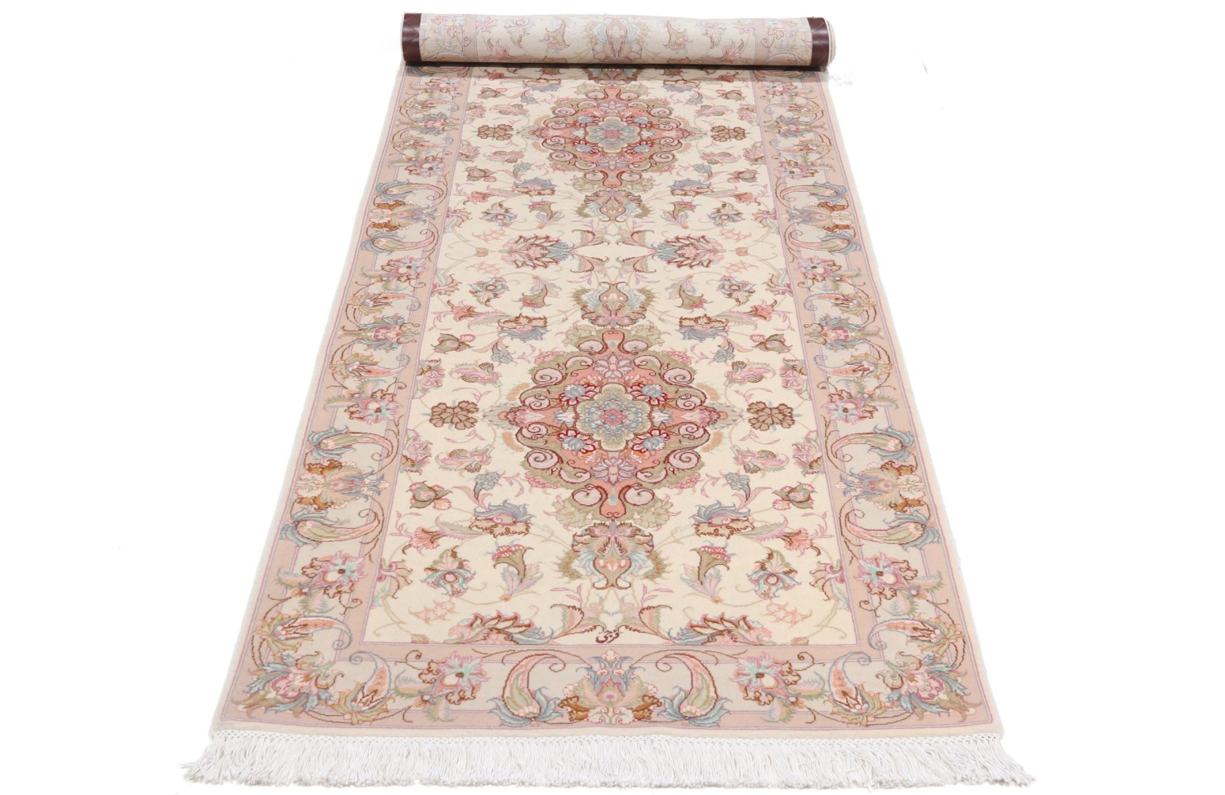 Réf. Article: 39730052436 Taille: 340x95 cm Épaisseur: ap. 7 mm Densité de nouage: 450 000 - 500 000 / m² Fabrication: Noué à la main Velours: Laine avec de la soie Chaîne: Coton Origine: Persie / Iran Âge: Nouveau Poids: ap. 10 kg Également connu sous Tabriz, Tabris, Täbris, Tebriz, Tebris, 40Raj, 50Raj Nombre en stock: Unique - Seulement 1 en stock