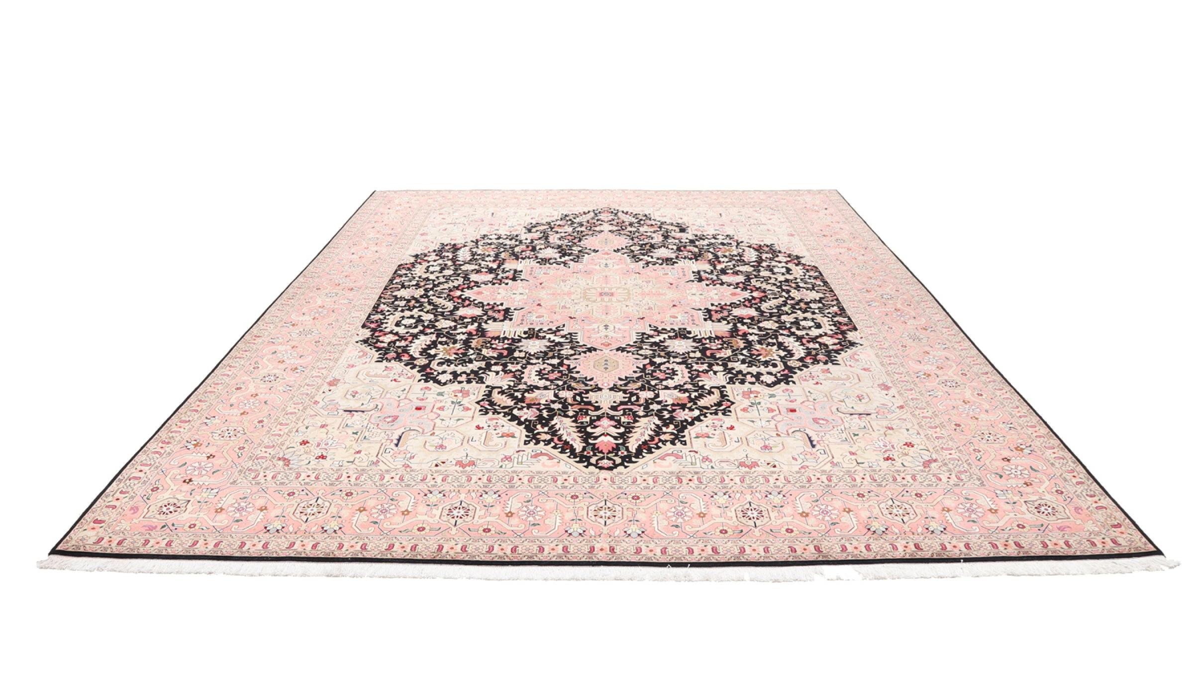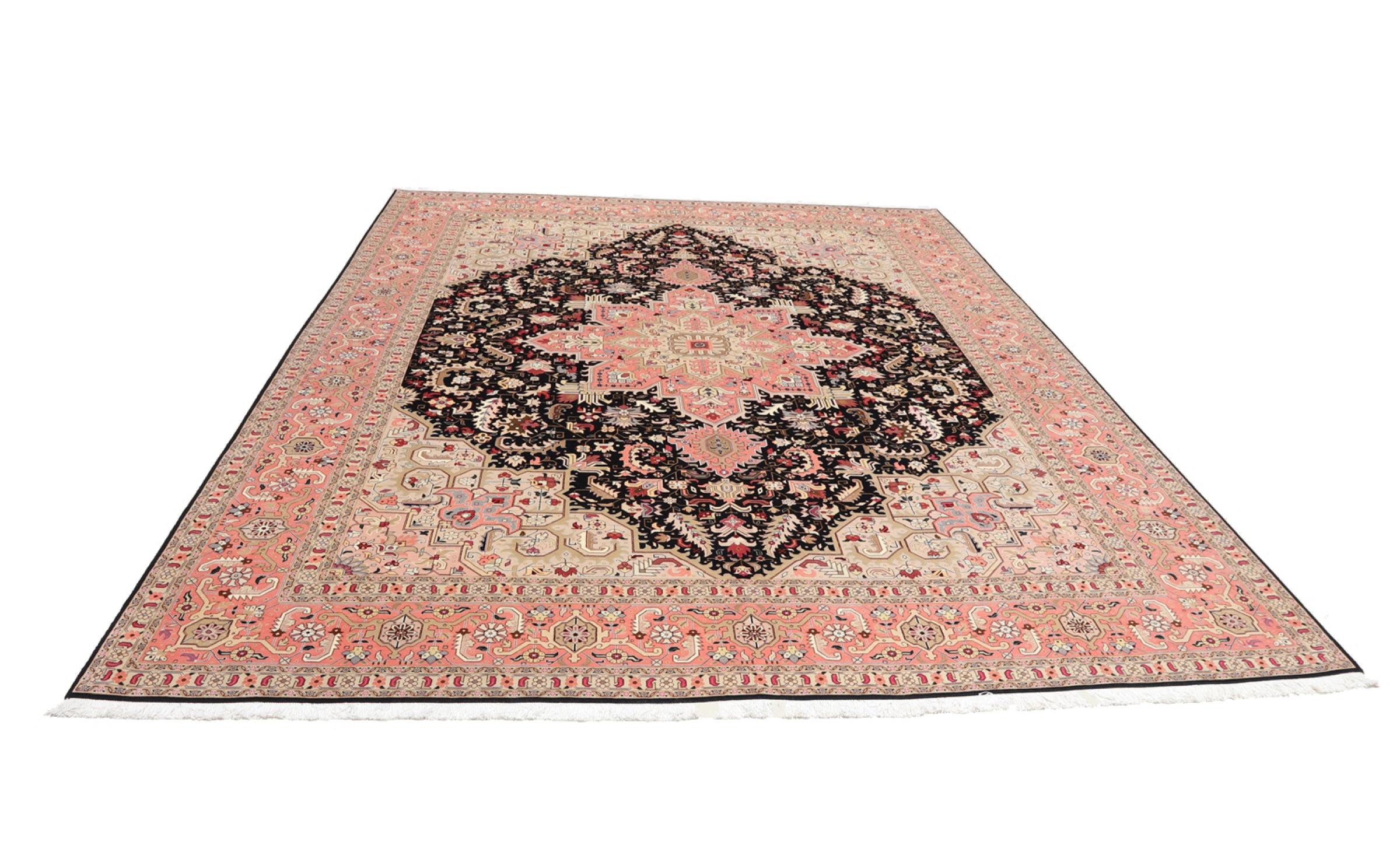 Réf. Article: 202330036065 Taille: 390x302 cm Épaisseur: ap. 7 mm Densité de nouage: 450 000 - 500 000 / m² Fabrication: Noué à la main Velours: Laine avec de la soie Chaîne: Coton Origine: Persie / Iran Âge: Nouveau Poids: ap. 35 kg Également connu sous Tabriz, Tabris, Täbris, Tebriz, Tebris, 40Raj, 50Raj Nombre en stock: Unique - Seulement 1 en stock