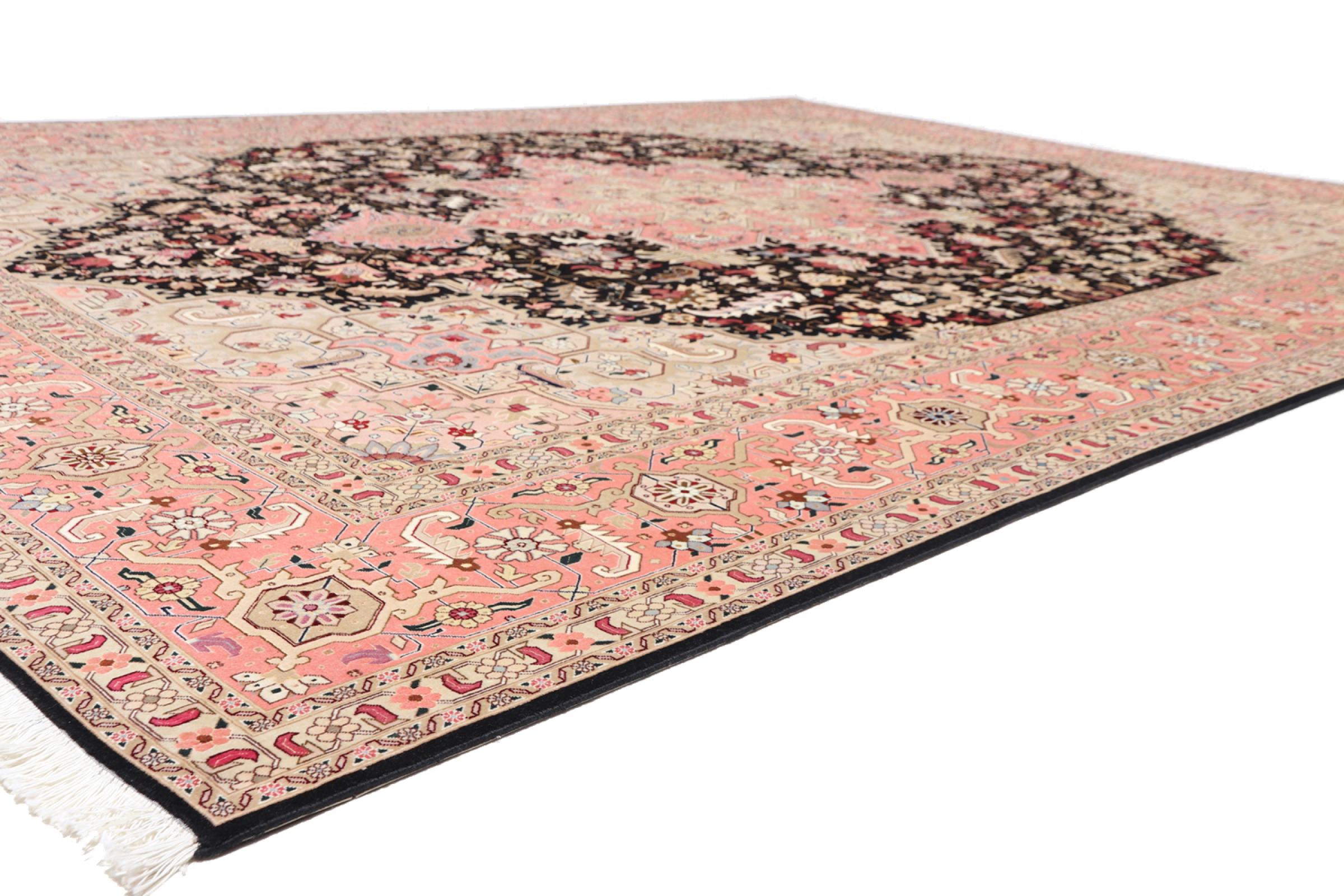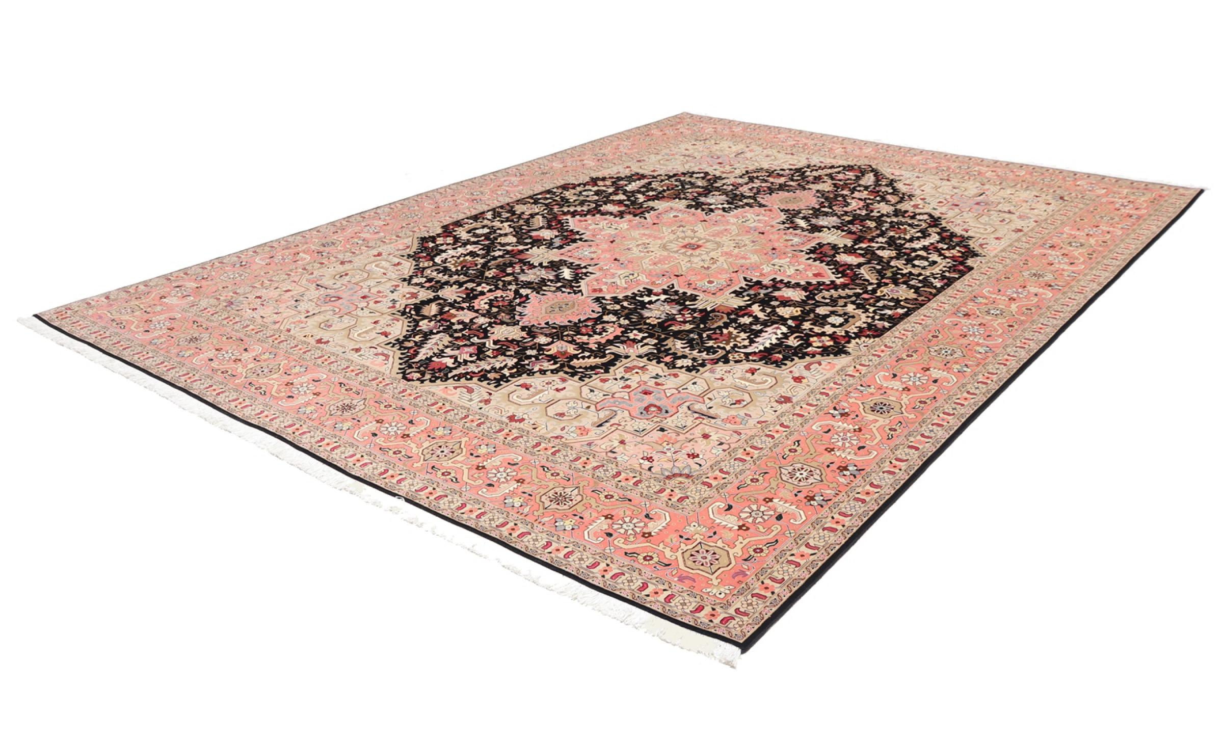 Tabriz est l'une des plus grandes villes d'Iran et l'une des plus célèbres provinces de tapis persans. Les tapis de Tabriz sont souvent indiqués par un numéro "Raj". Plus ce chiffre est élevé, plus le tapis est fin, car il indique la densité des nœuds. Il existe des tapis persans de Tabriz de classe moyenne (40 Raj) et de classe exceptionnellement fine (80 Raj).