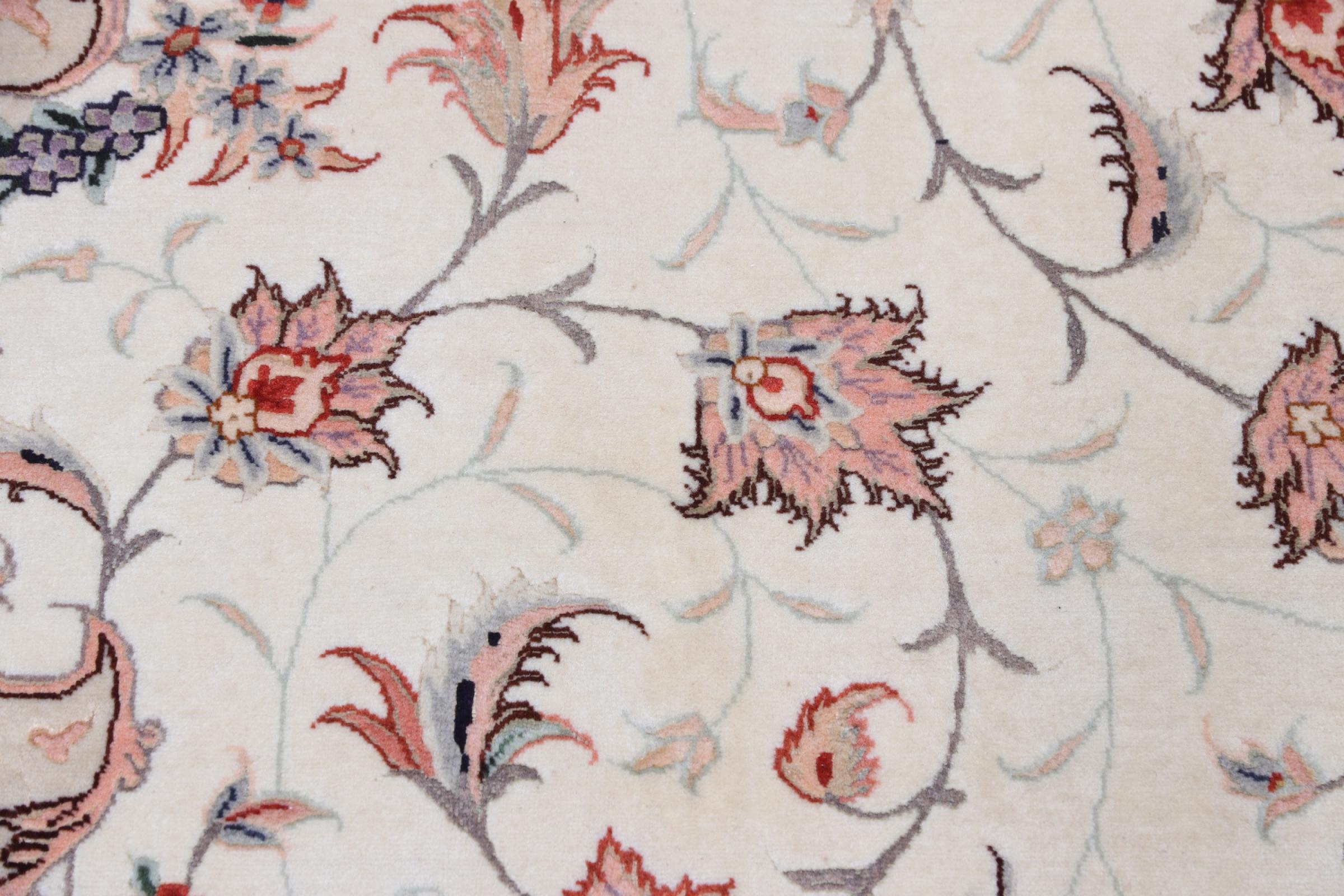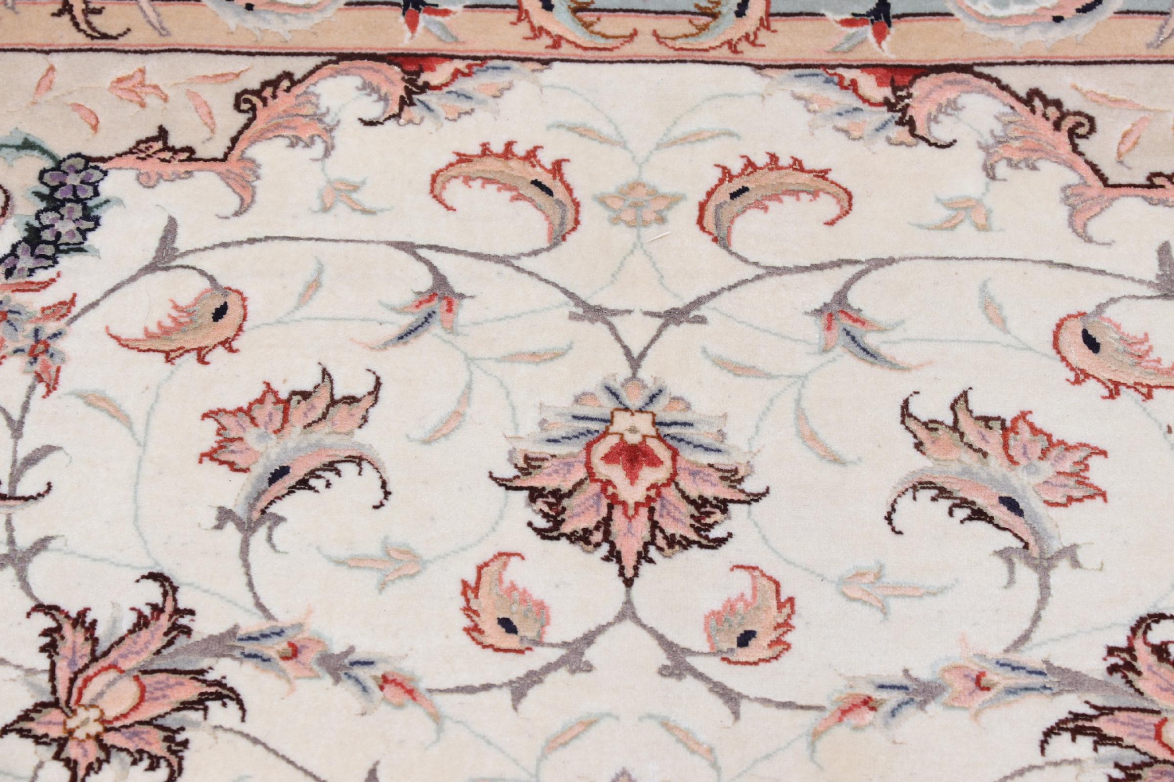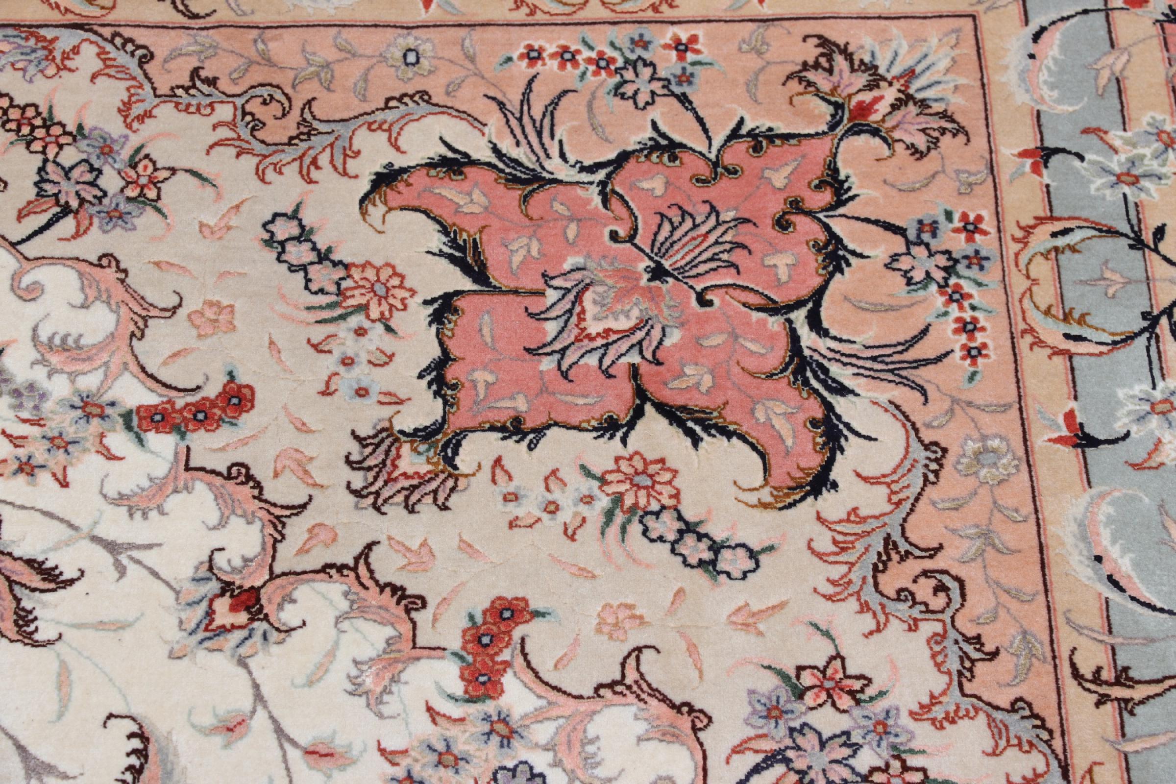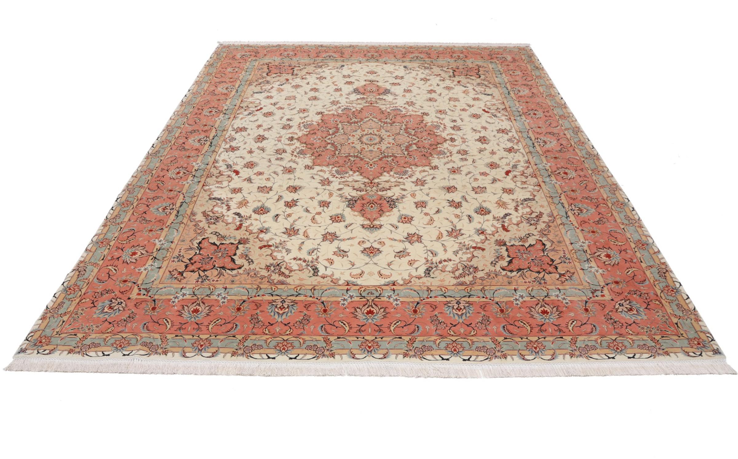 Tabriz est l'une des plus grandes villes d'Iran et l'une des plus célèbres provinces de tapis persans. Les tapis de Tabriz sont souvent indiqués par un numéro "Raj". Plus ce chiffre est élevé, plus le tapis est fin, car il indique la densité des nœuds. Il existe des tapis persans de Tabriz de classe moyenne (40 Raj) et de classe exceptionnellement fine (80 Raj).