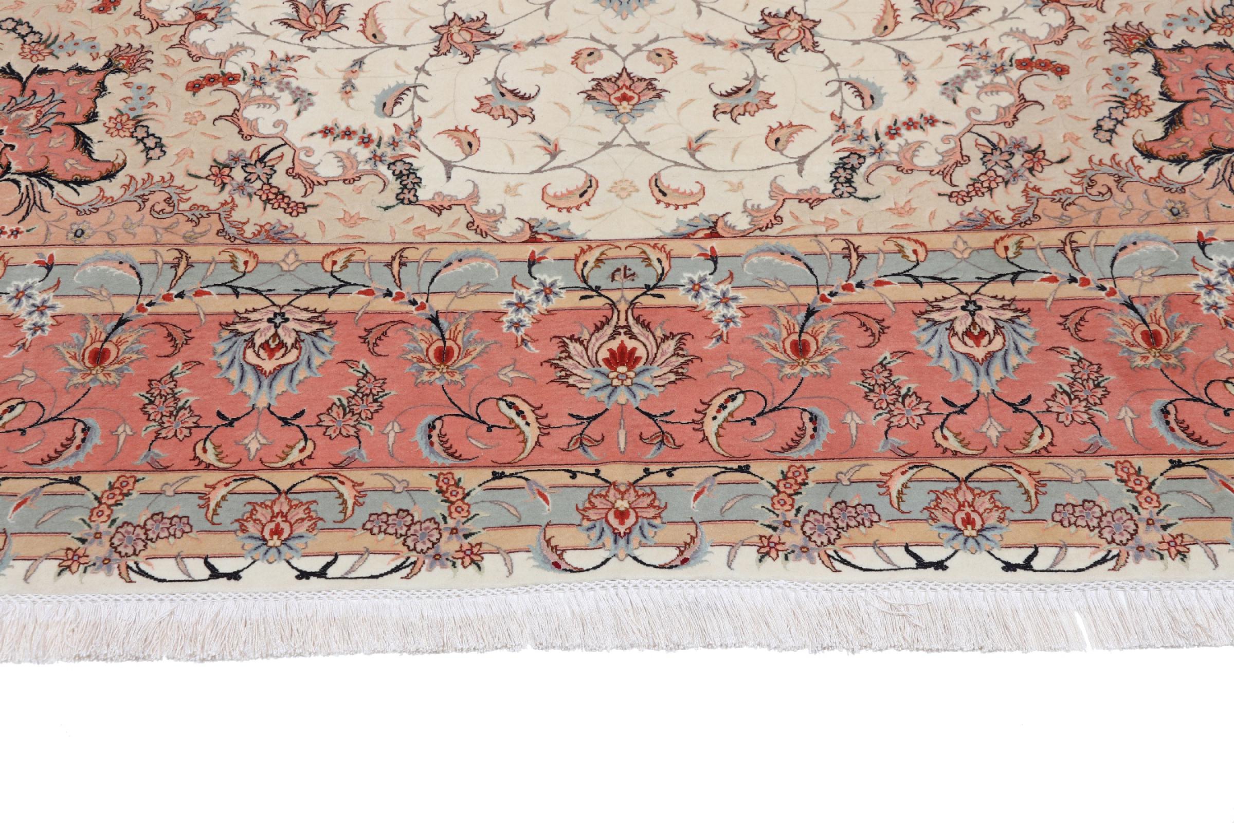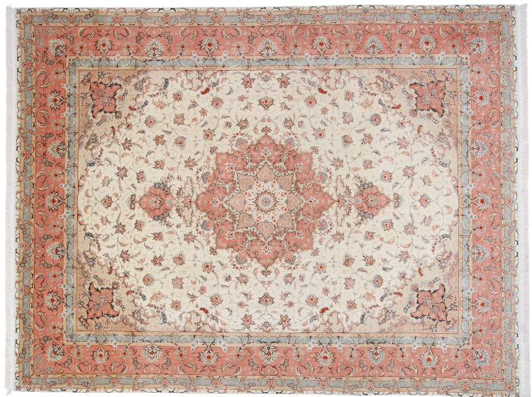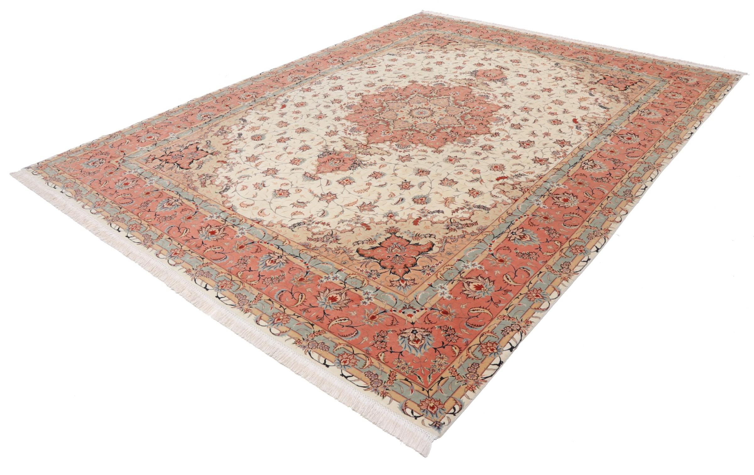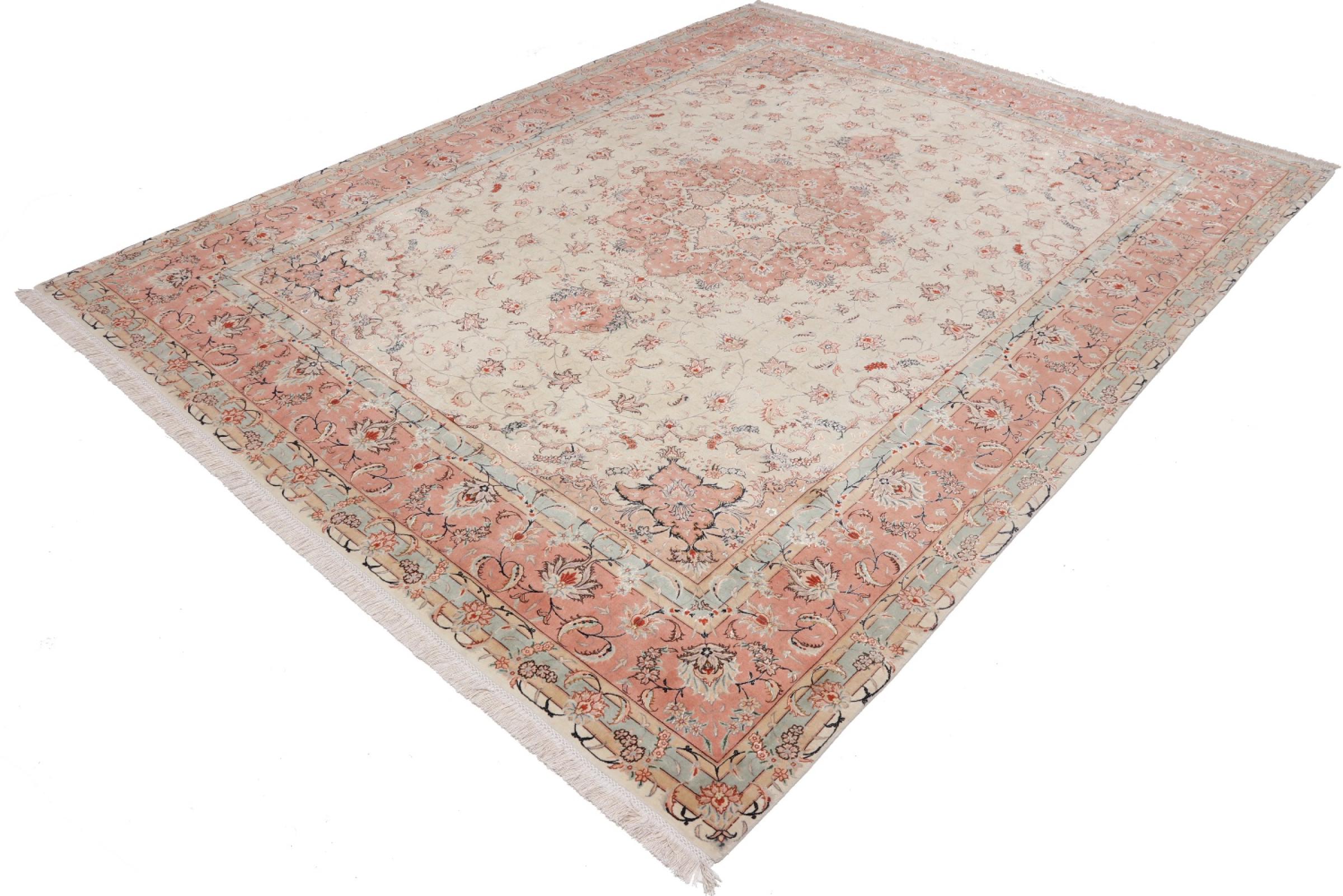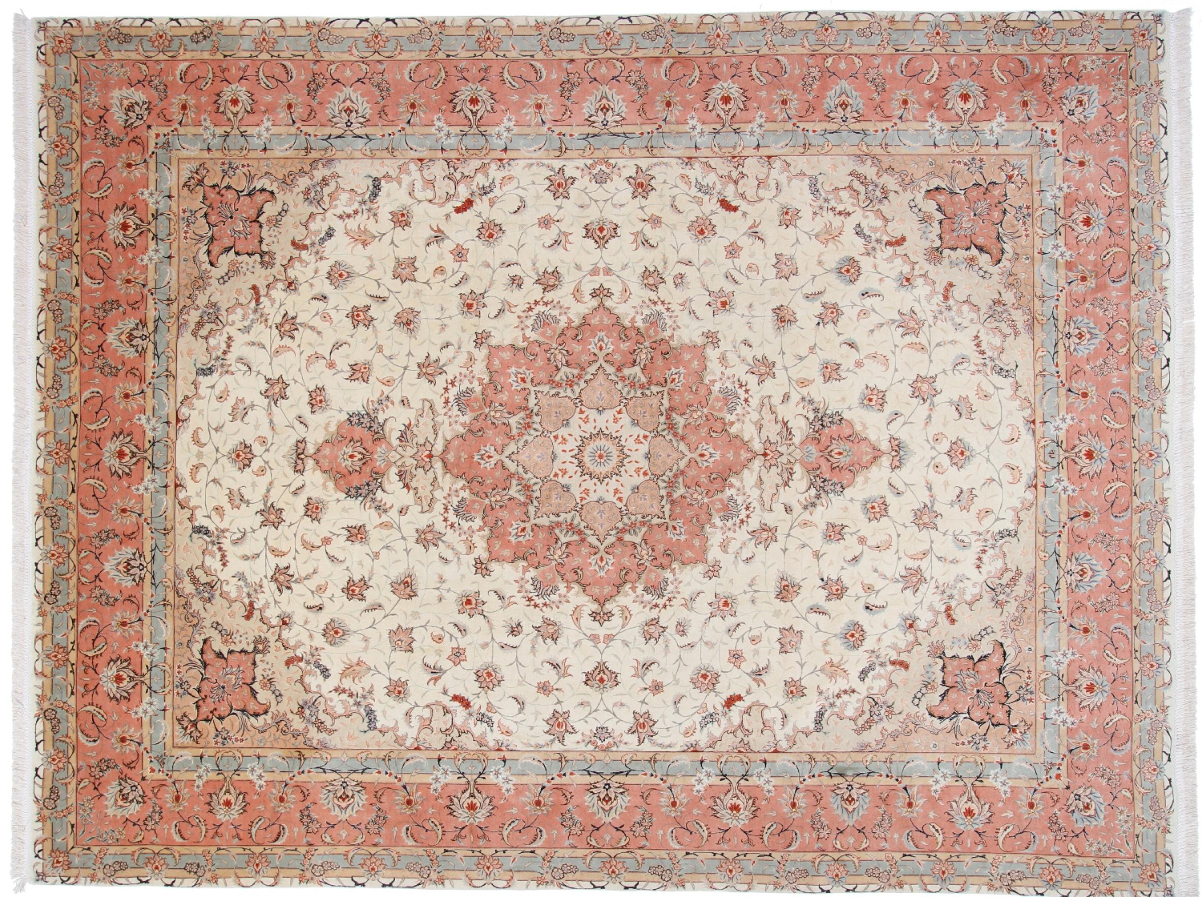 Réf. Article: 41560033159 Taille: 386x296 cm Épaisseur: ap. 7 mm Densité de nouage: 450 000 - 500 000 / m² Fabrication: Noué à la main Velours: Laine avec de la soie Chaîne: Soie Origine: Persie / Iran Âge: Nouveau Poids: ap. 34 kg Également connu sous Tabriz, Tabris, Täbris, Tebriz, Tebris, 40Raj, 50Raj Nombre en stock: Unique - Seulement 1 en stock