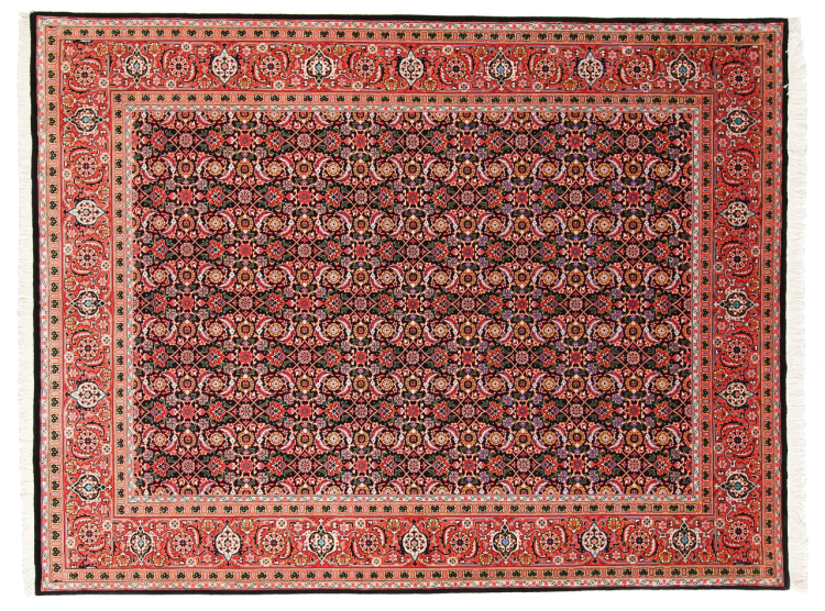 Réf. Article: 72300023904 Taille: 203x155 cm Épaisseur: ap. 7 mm Densité de nouage: 450 000 - 500 000 / m² Fabrication: Noué à la main Velours: Laine filée à la main Chaîne: Coton Origine: Persie / Iran Âge: Nouveau Poids: ap. 9 kg Également connu sous Tabris, Tabriz, Tebris, Tebriz, Täbris Nombre en stock: Unique - Seulement 1 en stock