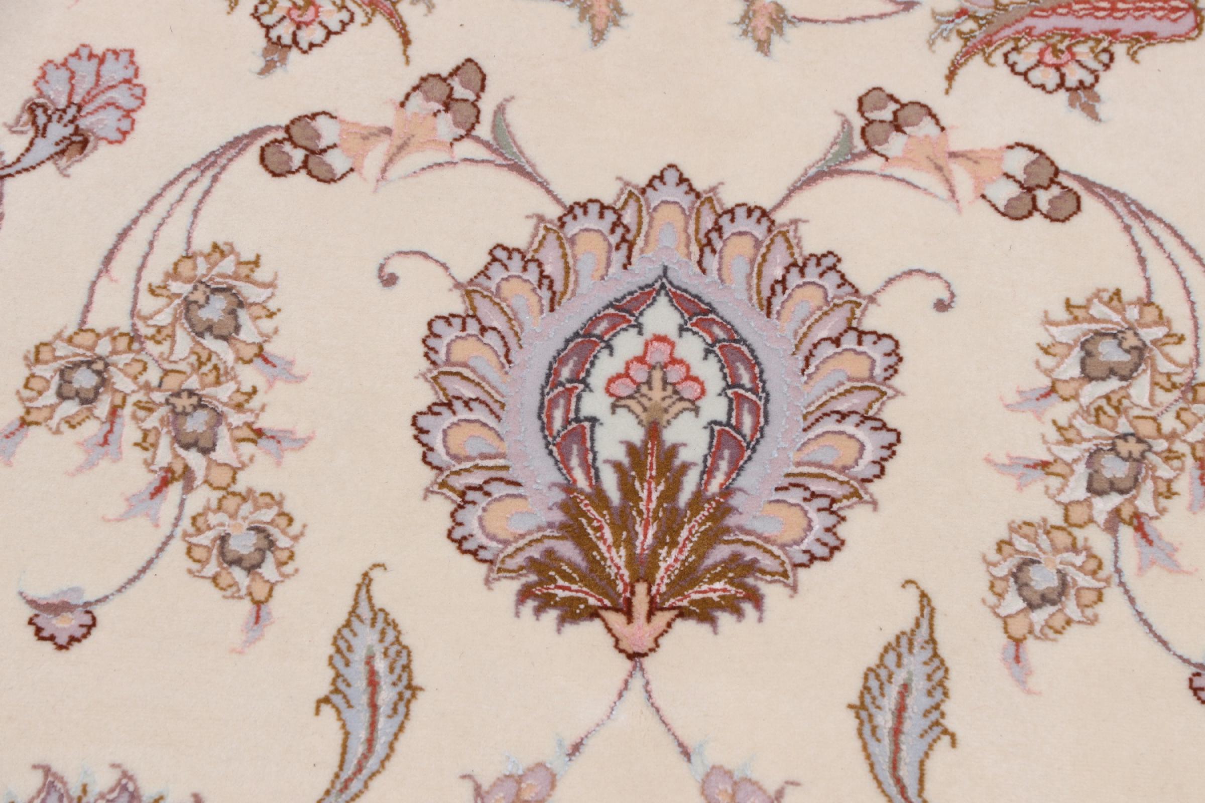 Tabriz est l'une des plus grandes villes d'Iran et l'une des plus célèbres provinces de tapis persans. Les tapis de Tabriz sont souvent indiqués par un numéro "Raj". Plus ce chiffre est élevé, plus le tapis est fin, car il indique la densité des nœuds. Il existe des tapis persans de Tabriz de classe moyenne (40 Raj) et de classe exceptionnellement fine (80 Raj).