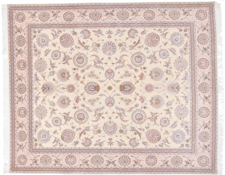 Réf. Article: 36995001225040 Taille: 313x254 cm Épaisseur: ap. 6 mm Densité de nouage: 600 000 / m² Fabrication: Noué à la main Velours: Laine avec de la soie Chaîne: Coton Origine: Persie / Iran Âge: Nouveau Poids: ap. 24 kg Également connu sous Tabris, Tabriz, Tebris, Tebriz, Täbris, 60Raj Nombre en stock: Unique - Seulement 1 en stock