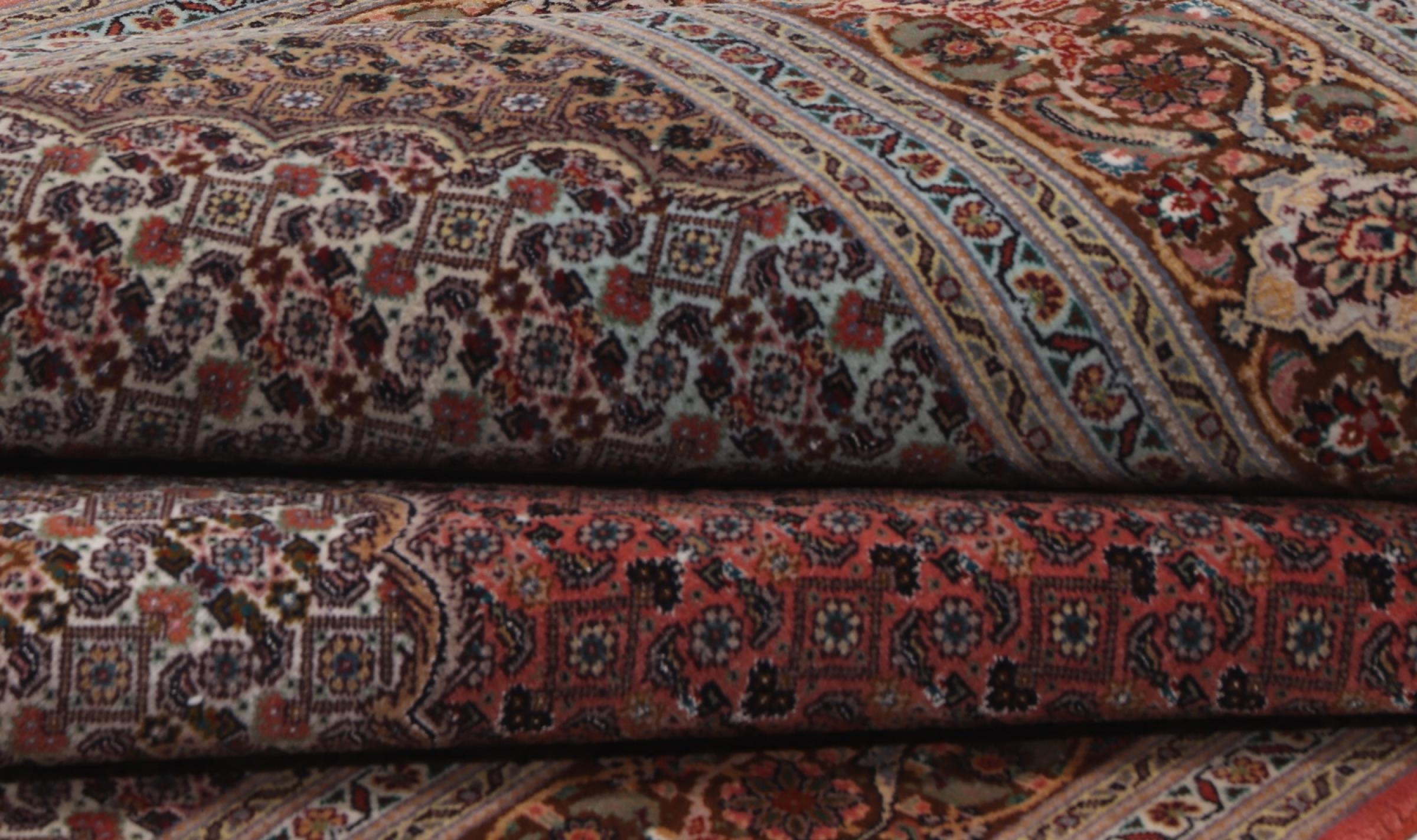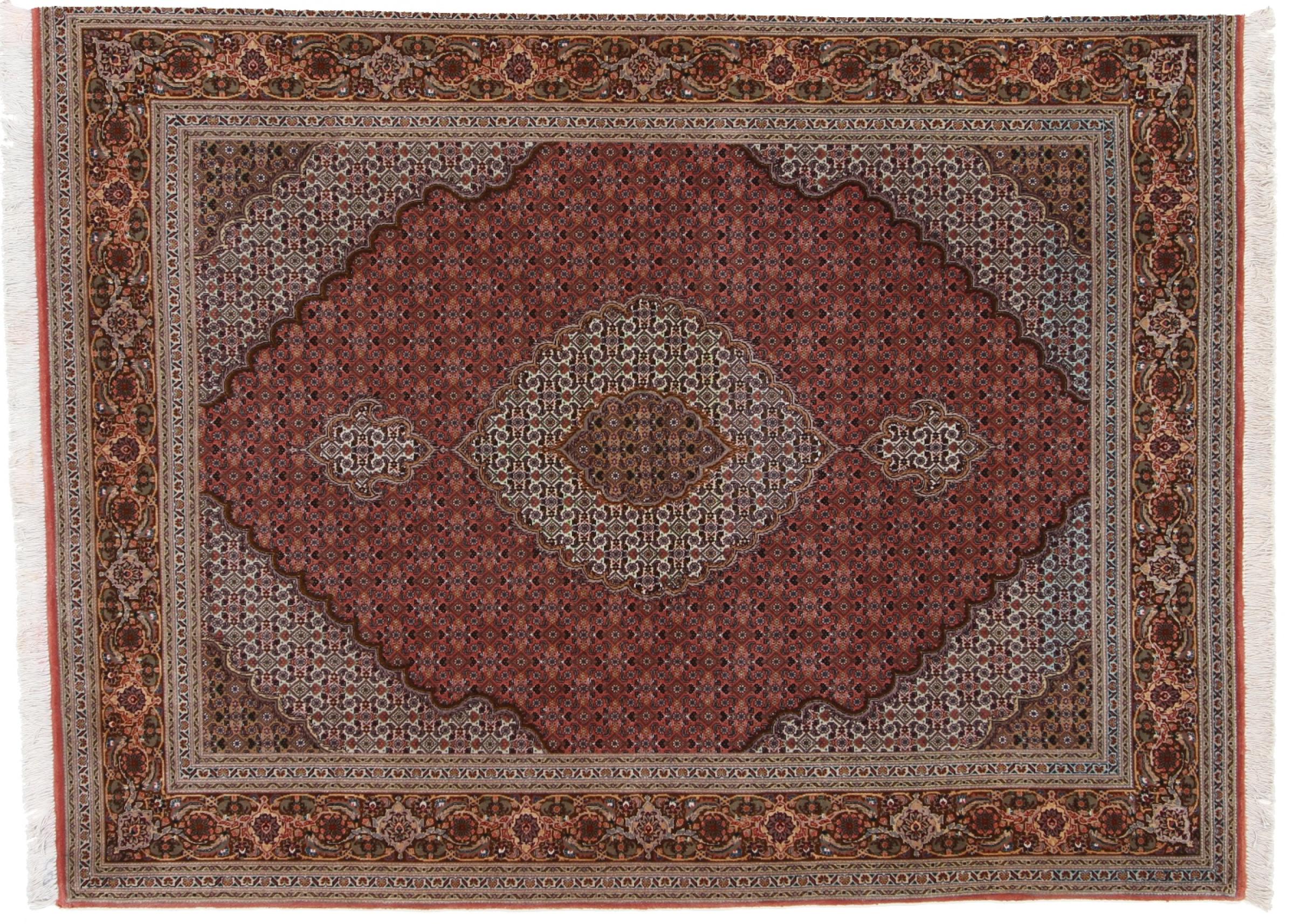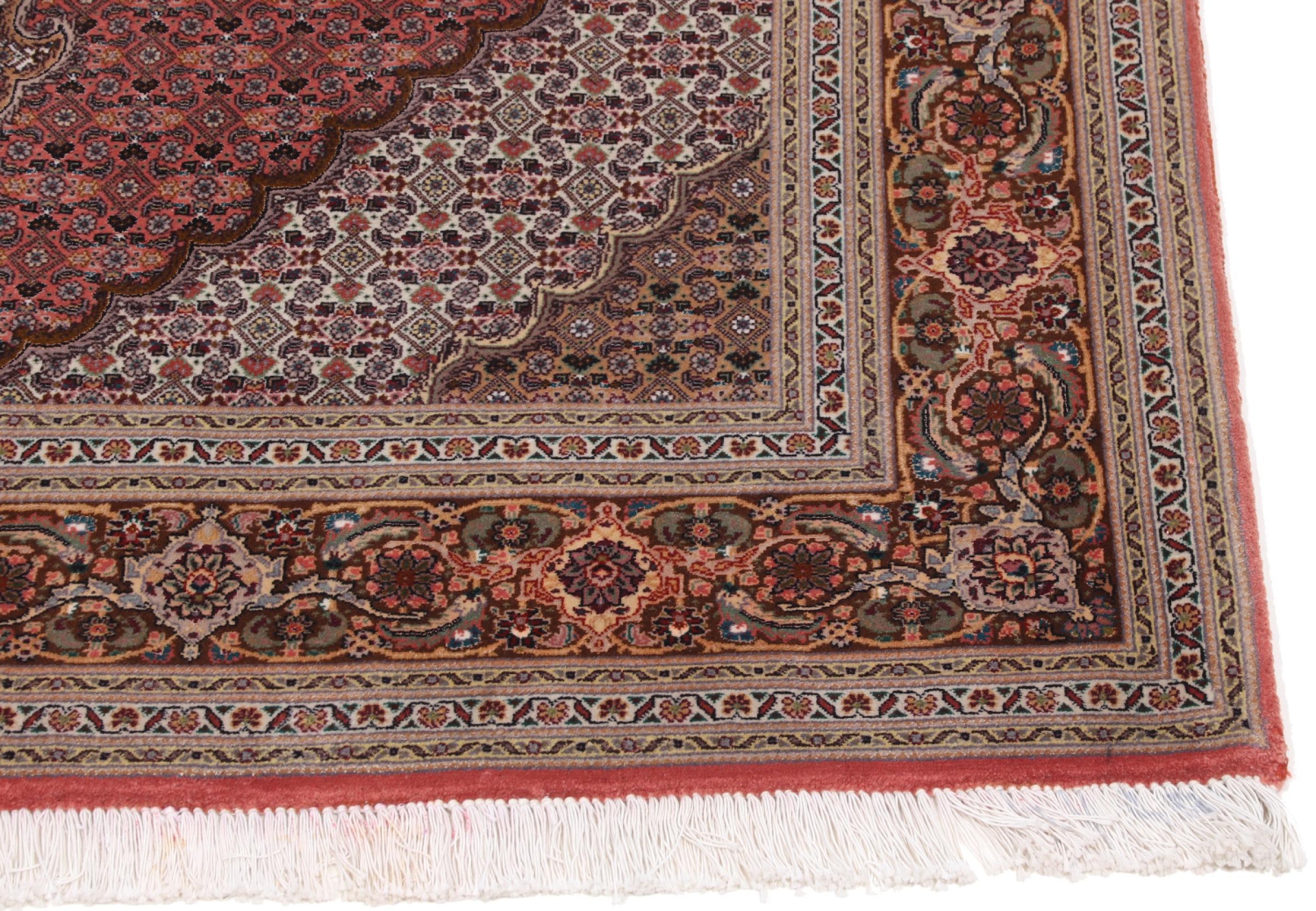 Tabriz est l'une des plus grandes villes d'Iran et l'une des plus célèbres provinces de tapis persans. Les tapis de Tabriz sont souvent indiqués par un numéro "Raj". Plus ce chiffre est élevé, plus le tapis est fin, car il indique la densité des nœuds. Il existe des tapis persans de Tabriz de classe moyenne (40 Raj) et de classe exceptionnellement fine (80 Raj).