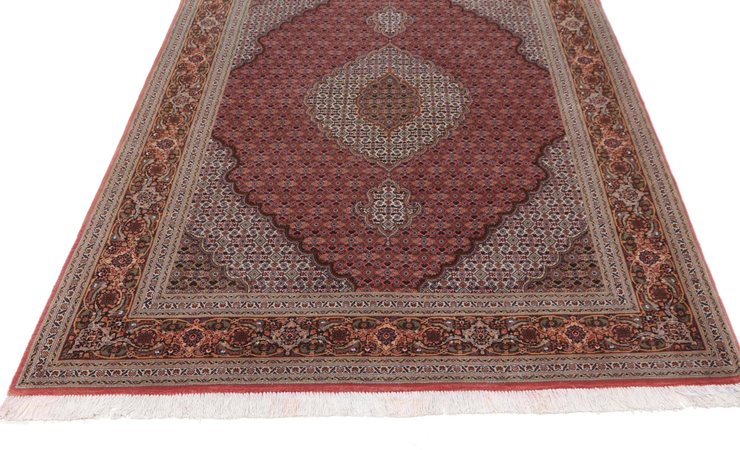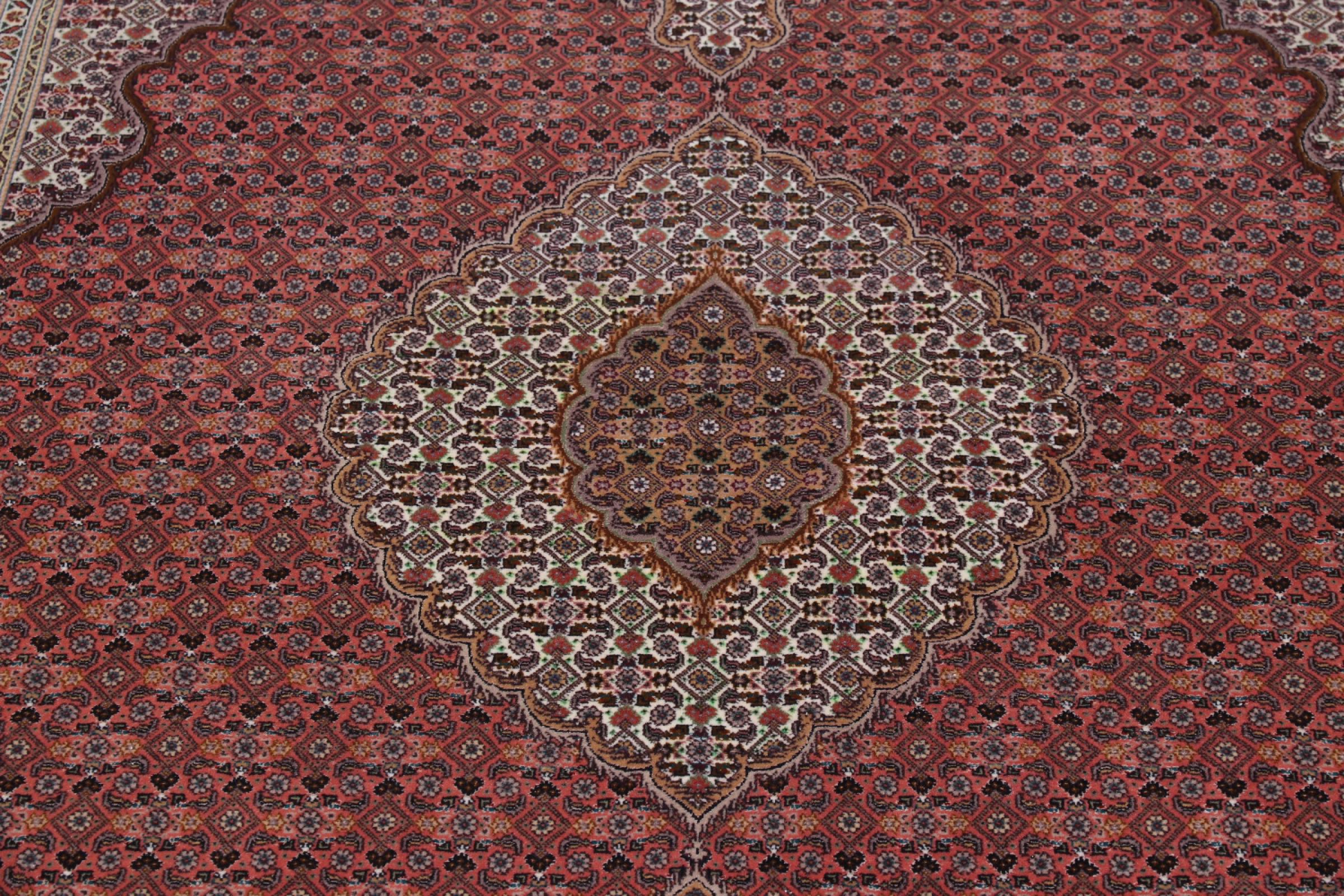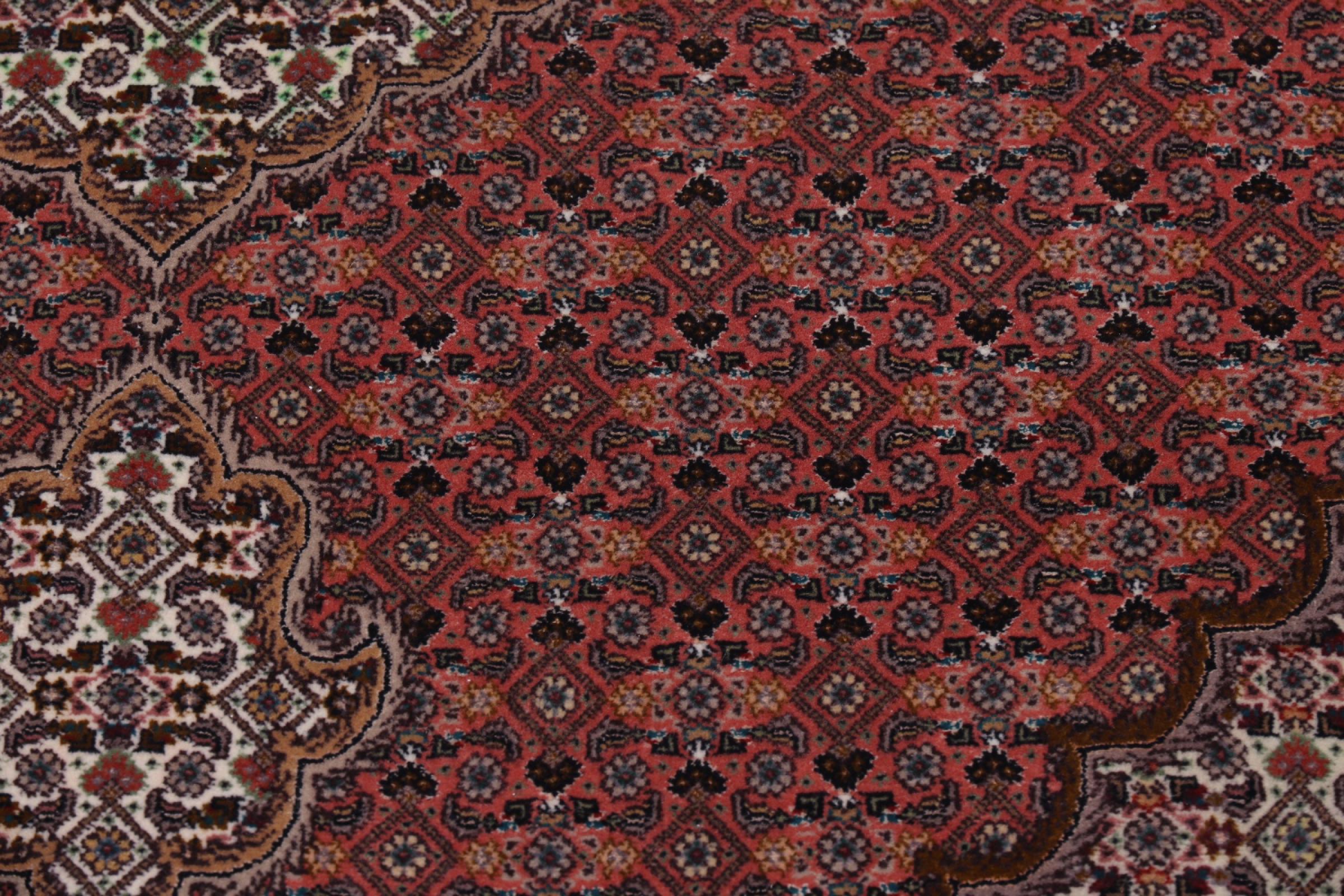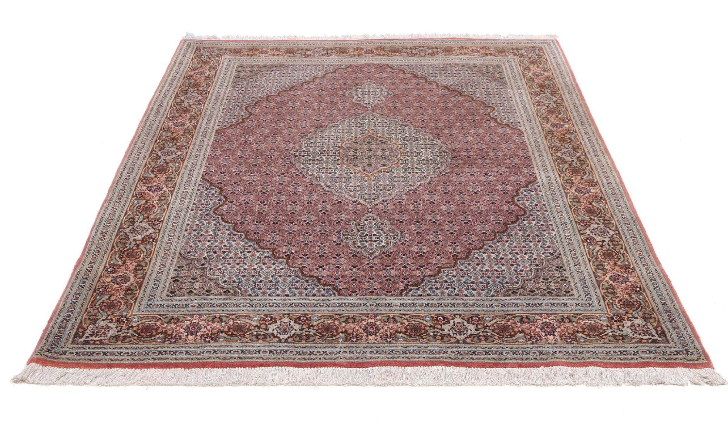Tabriz est l'une des plus grandes villes d'Iran et l'une des plus célèbres provinces de tapis persans. Les tapis de Tabriz sont souvent indiqués par un numéro "Raj". Plus ce chiffre est élevé, plus le tapis est fin, car il indique la densité des nœuds. Il existe des tapis persans de Tabriz de classe moyenne (40 Raj) et de classe exceptionnellement fine (80 Raj).