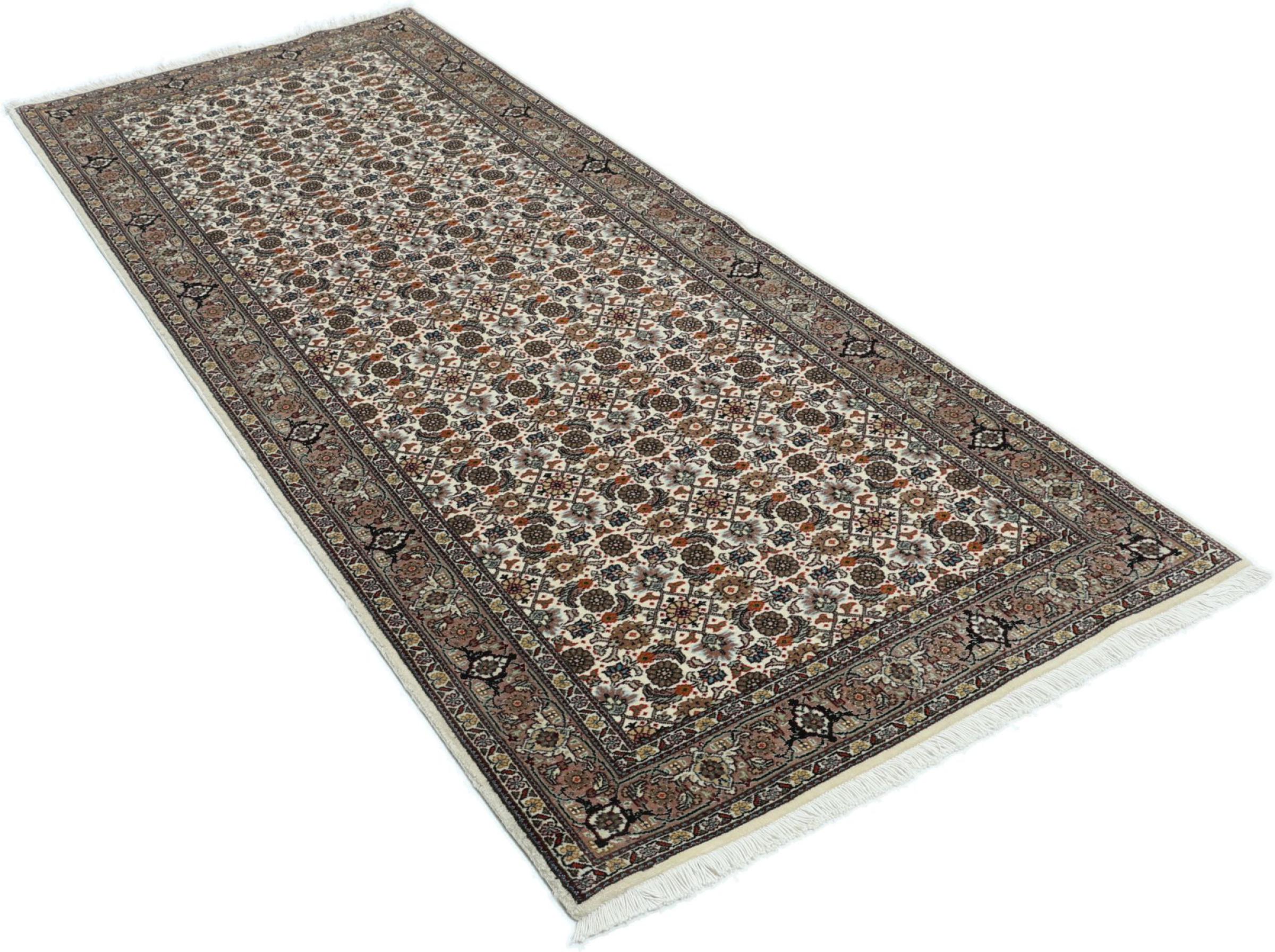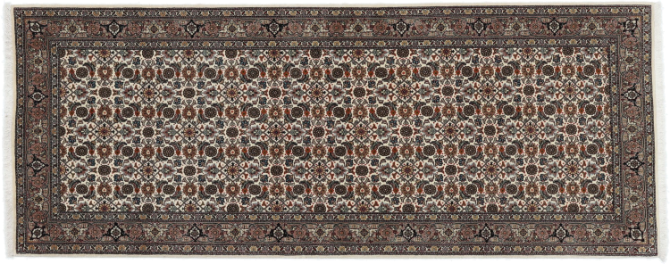 Réf. Article: 30872500987568 Taille: 209x79 cm Épaisseur: ap. 7 mm Densité de nouage: 440 000 - 490 000 / m² Fabrication: Noué à la main Velours: Laine avec de la soie Chaîne: Coton Origine: Persie / Iran Âge: Nouveau Poids: ap. 5 kg Également connu sous Tabris, Tabriz, Tebris, Tebriz, Täbris Nombre en stock: Unique - Seulement 1 en stock