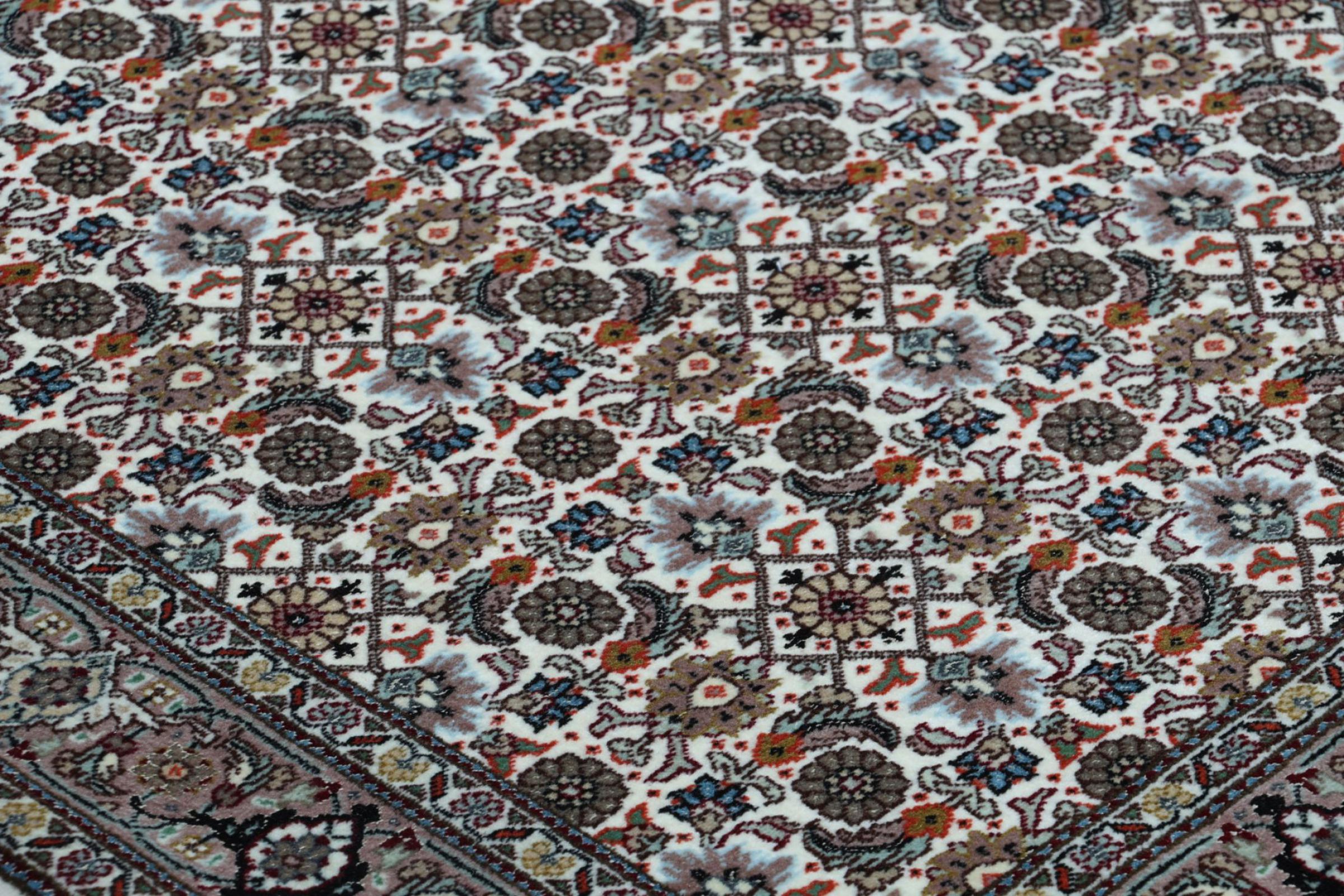 Traditionnellement, les tapis noués à la main représentent toujours la norme de qualité la plus élevée parmi tous les types de tapis. Selon le type de nœud, les tapis sont extrêmement robustes et peuvent durer plusieurs générations. Plus un tapis est noué finement et serré, plus les ornements et les motifs détaillés peuvent être représentés sur le poil. En même temps, un tapis oriental très fin exige un effort manuel beaucoup plus important ainsi qu'un niveau d'expérience et de compétence plus élevé du noueur. Ainsi, la densité des nœuds est également un facteur de valeur décisif pour les tapis noués à la main. La qualité n'est pas directement liée à la densité des nœuds. Un tapis assez grossier peut très bien avoir été fabriqué en excellente qualité.