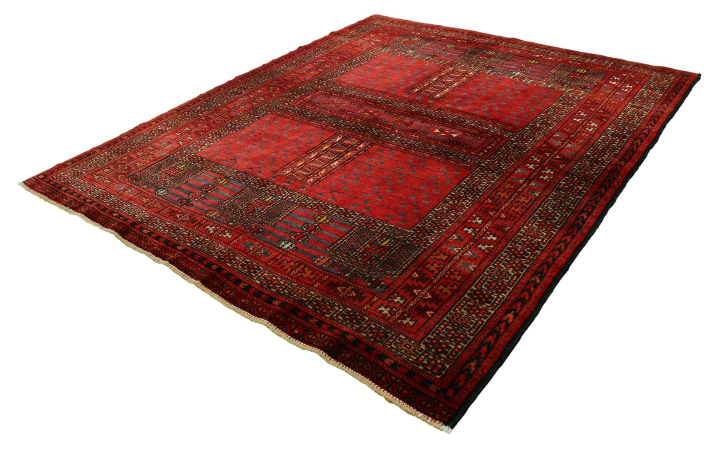 Ce tapis Turkmen a été tissé avec le plus fin savoir-faire artisanal et convainc de part sa production de qualité supérieure et sa laine. Ses couleurs reflètent la culture turkmène et fournit une ambiance orientale à votre chez-vous.