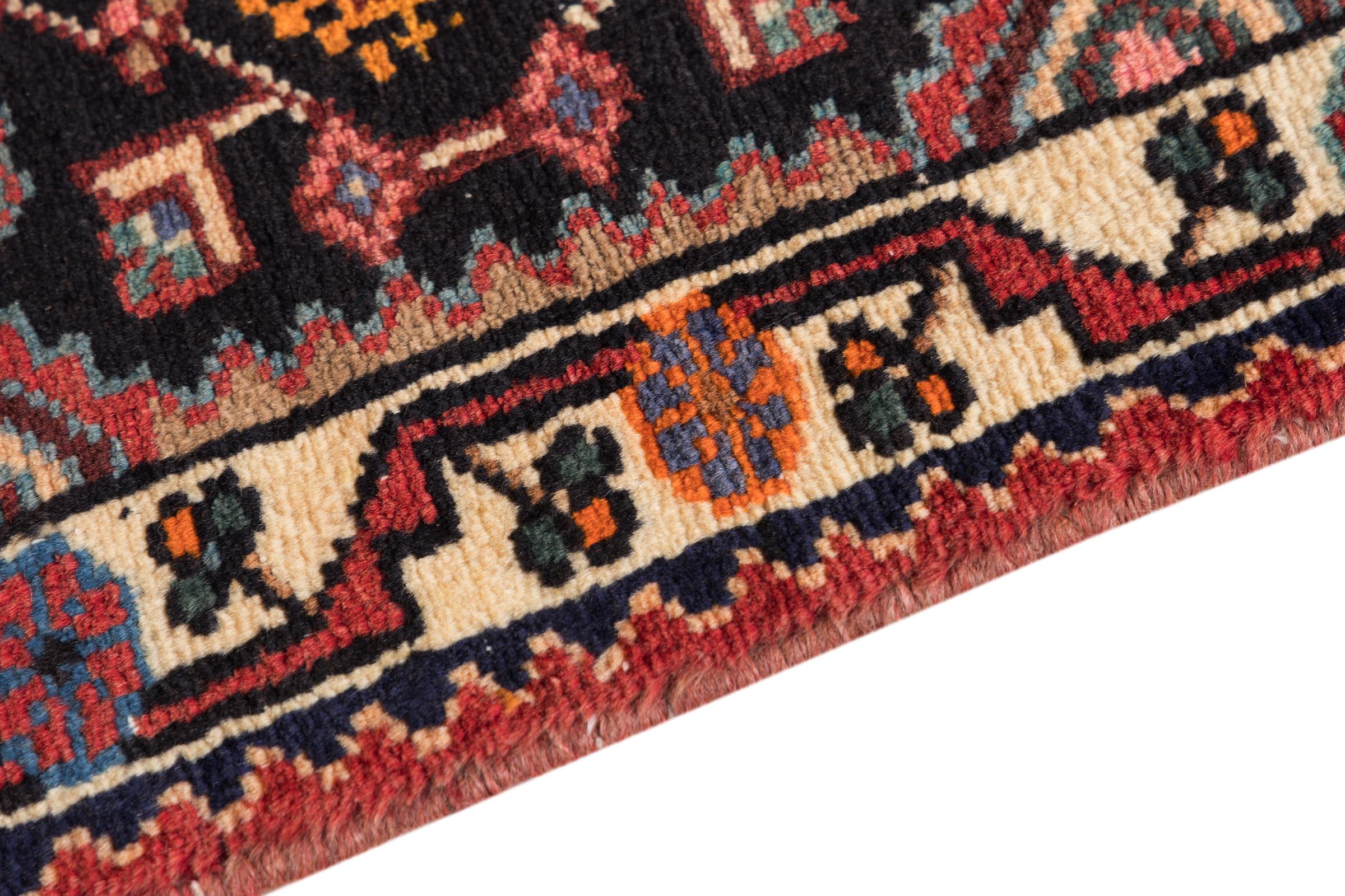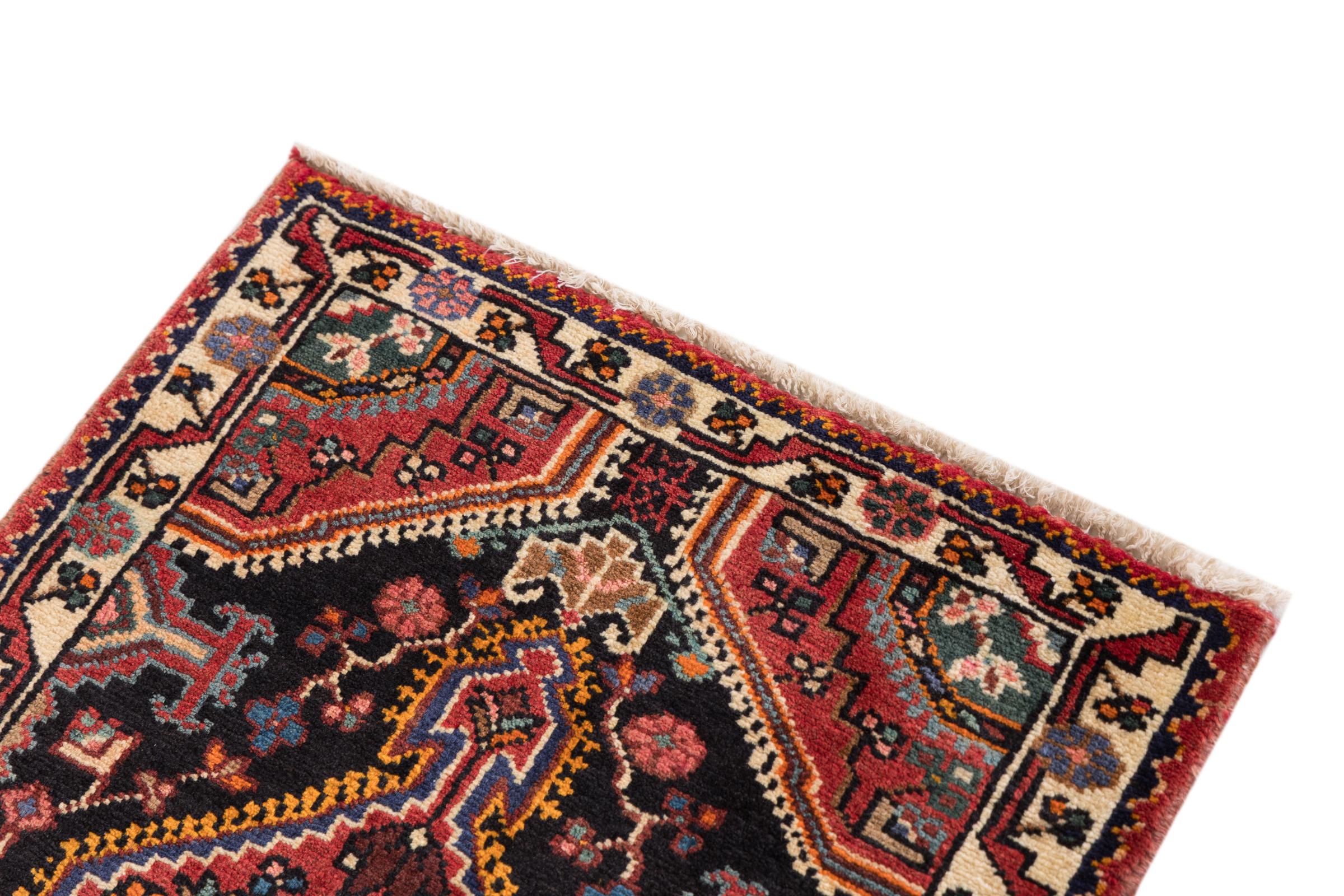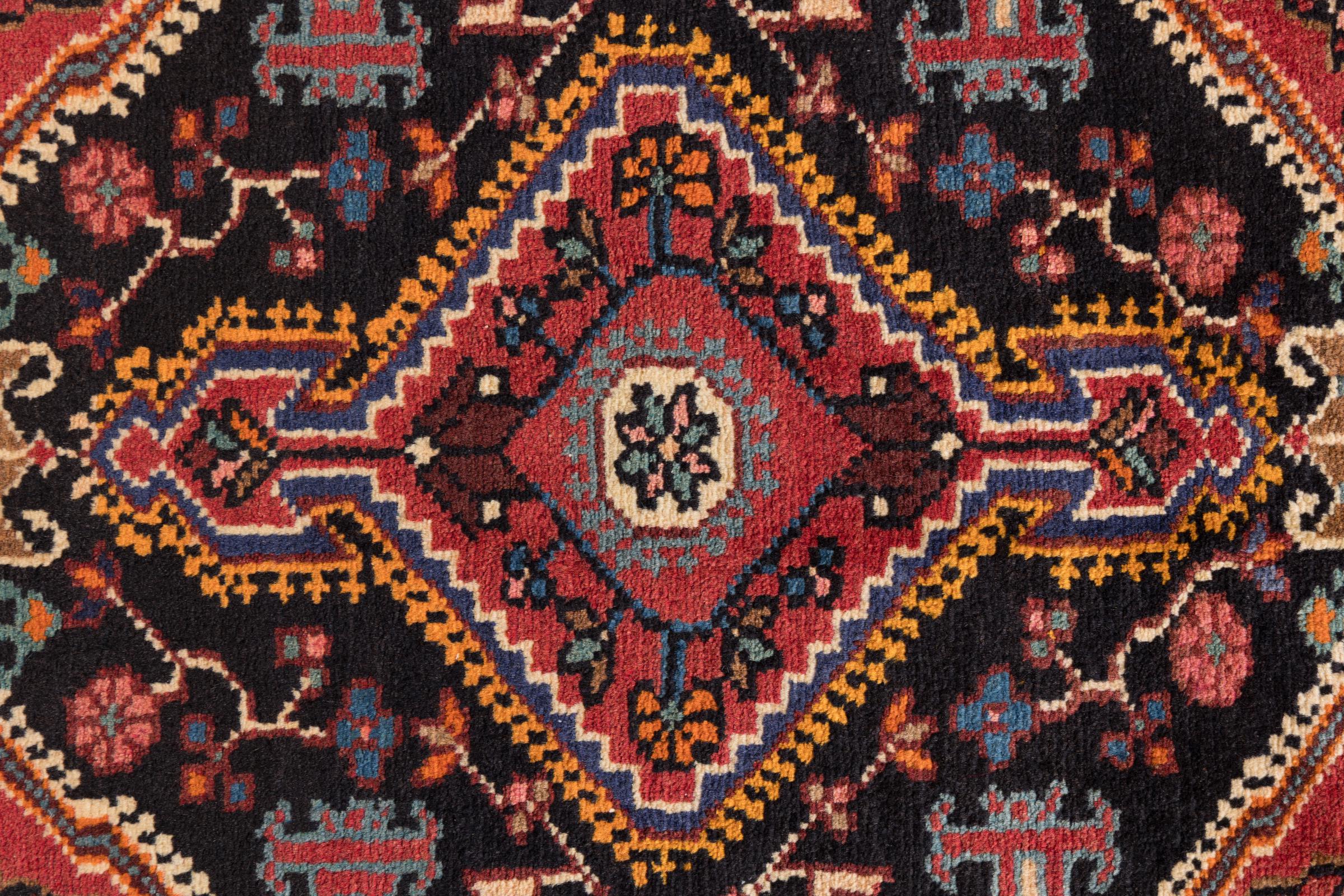 Ce tapis appartient aux tapis de village et de nomade d'Iran, anciennement la Perse. Ce type de tapis est noué à la main dans les petites villes et les villages selon l'ancienne tradition. Même les nomades nouent encore des tapis persans en plein air. Les tapis sont noués sans schéma et entièrement à partir de la tête. Ils se caractérisent par des ornements classiques, qui sont disposés en motifs droits et géométriques. Grâce à leur origine culturelle et traditionnelle, ces tapis ont un caractère unique qui incarne la Perse ancienne.