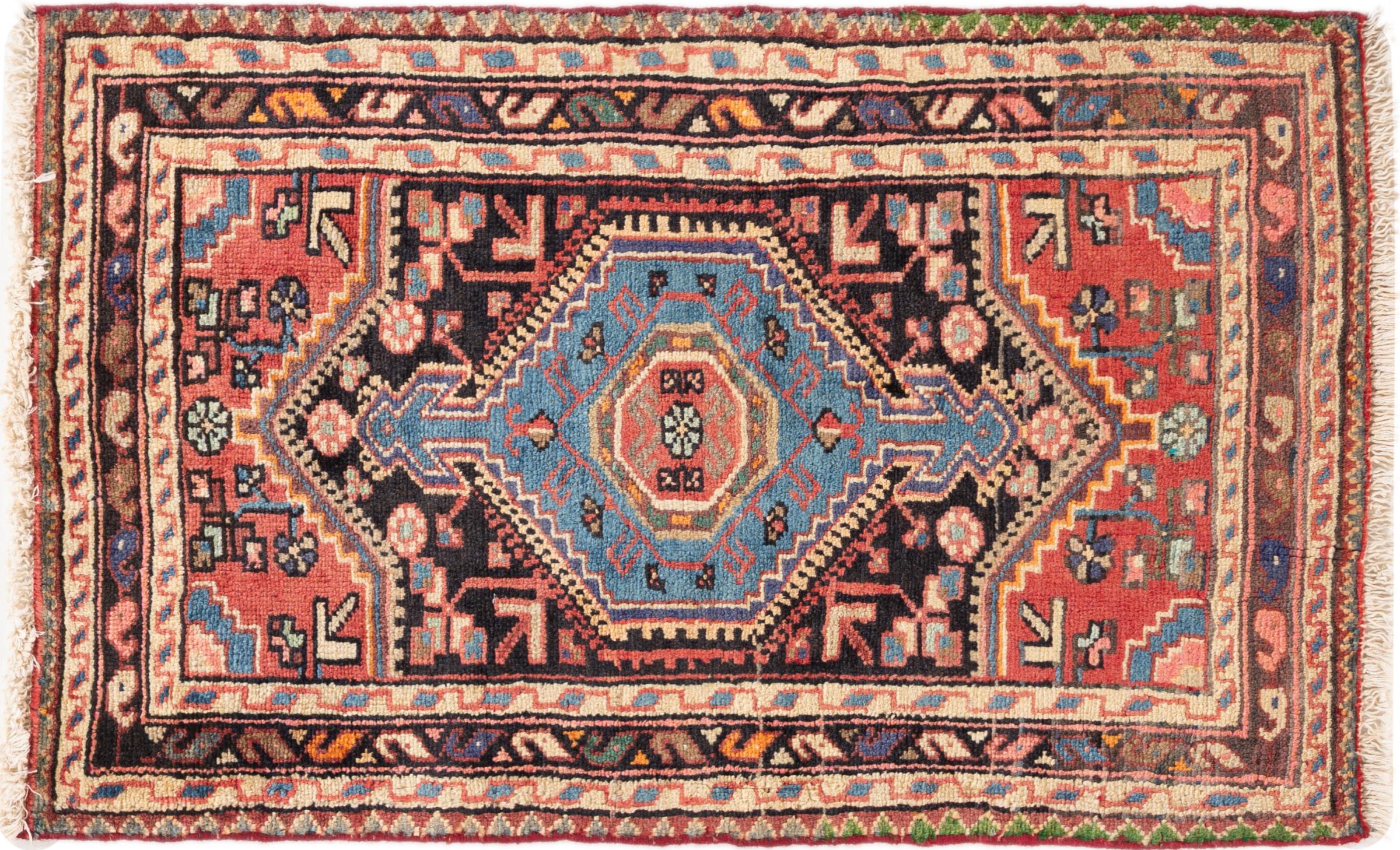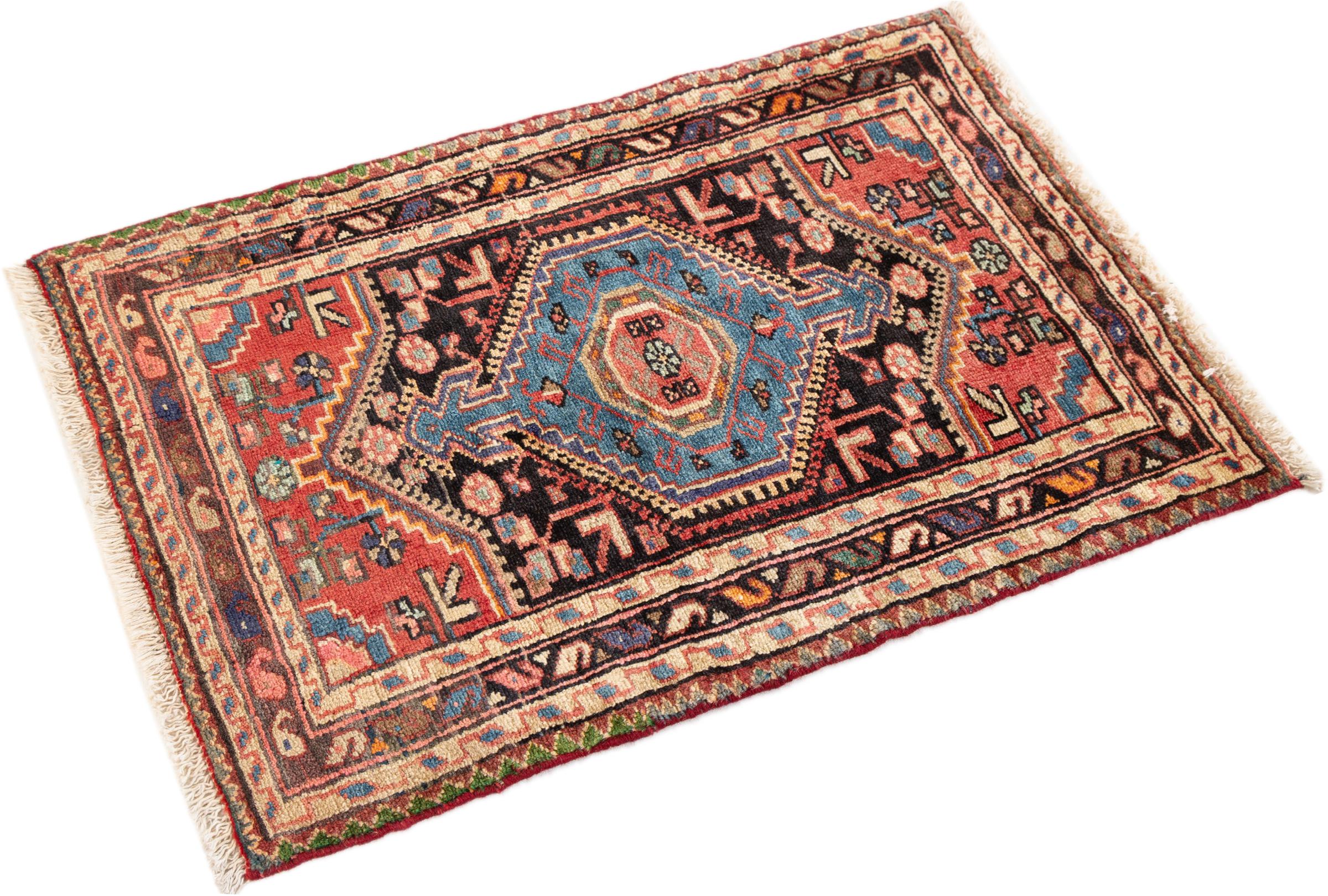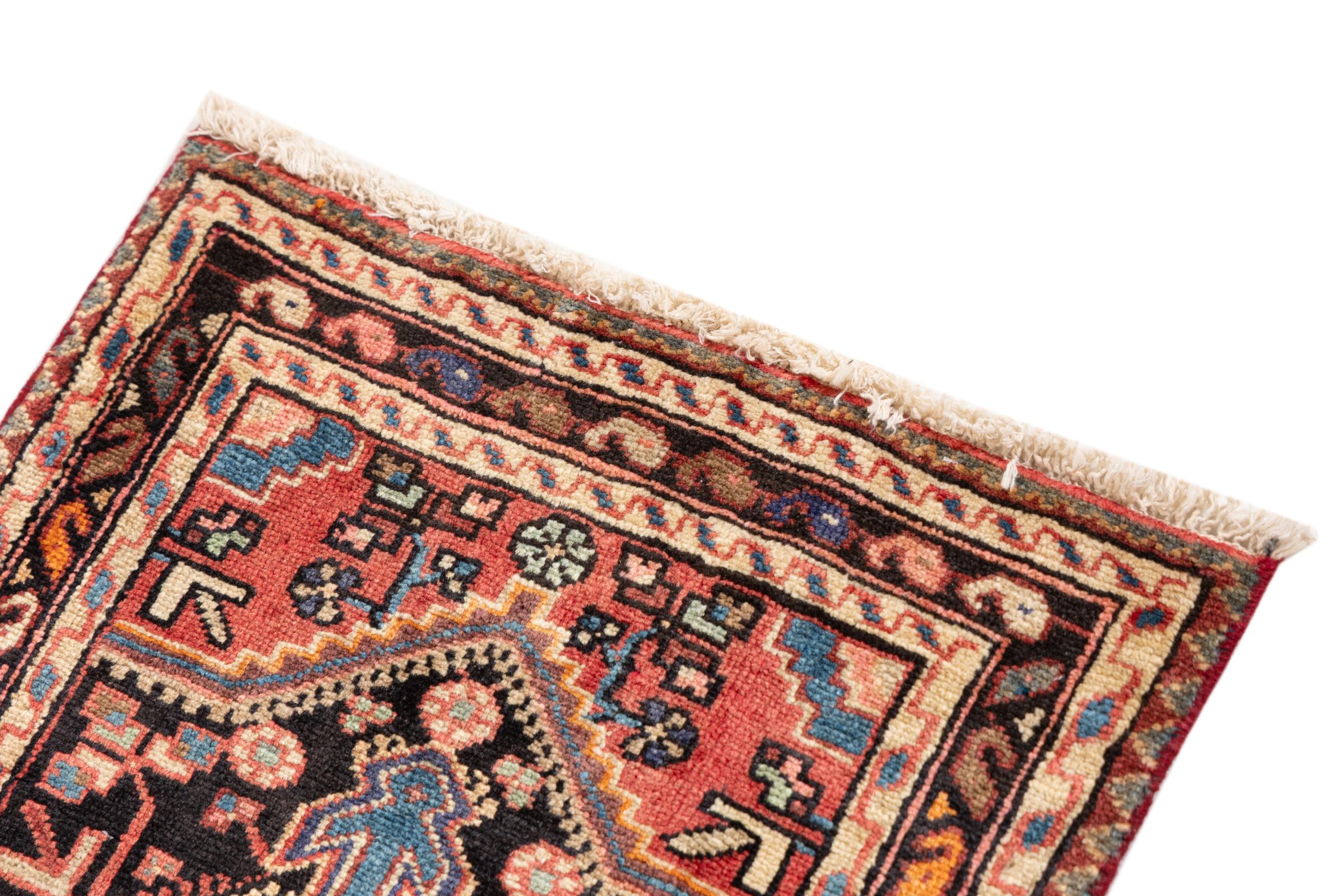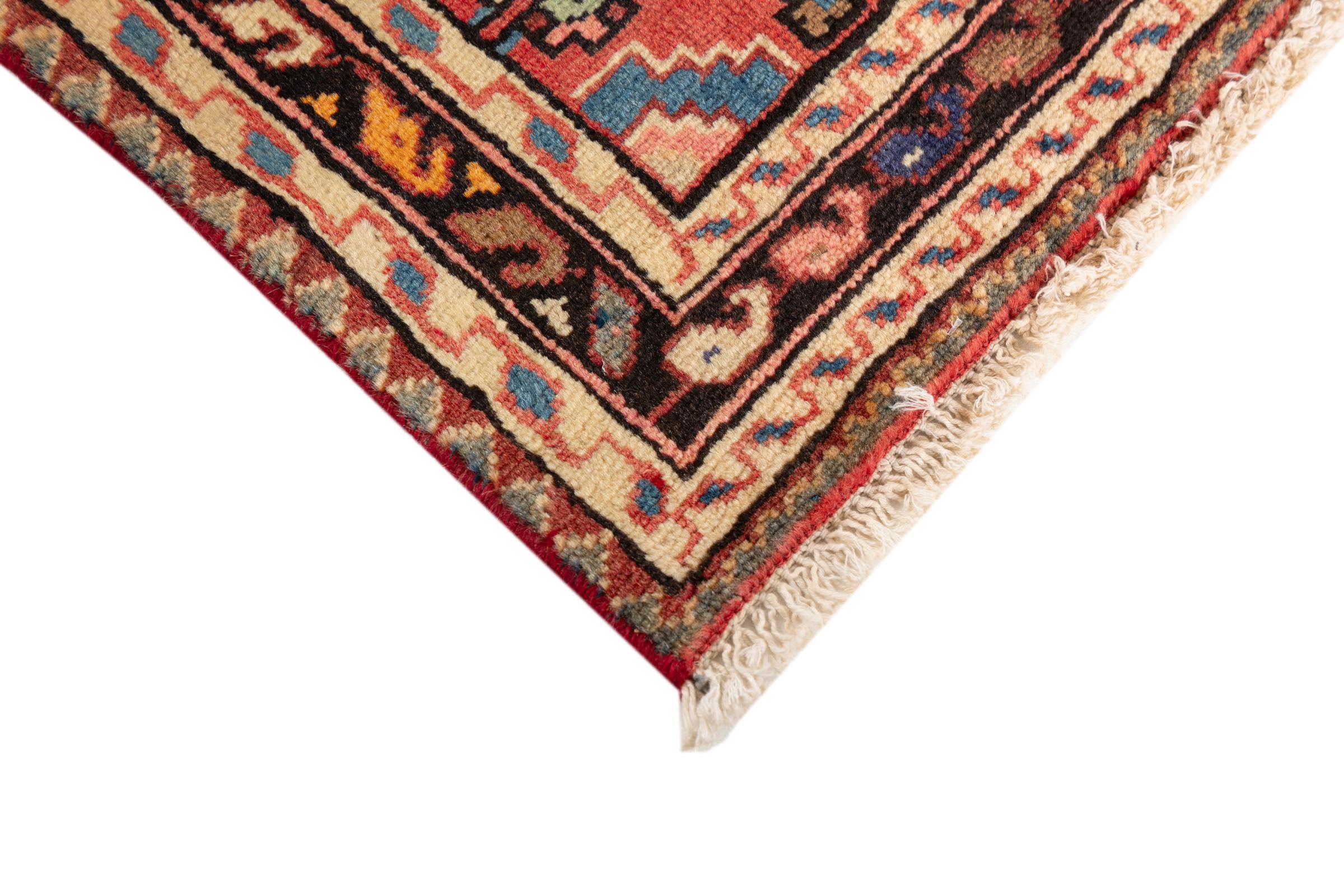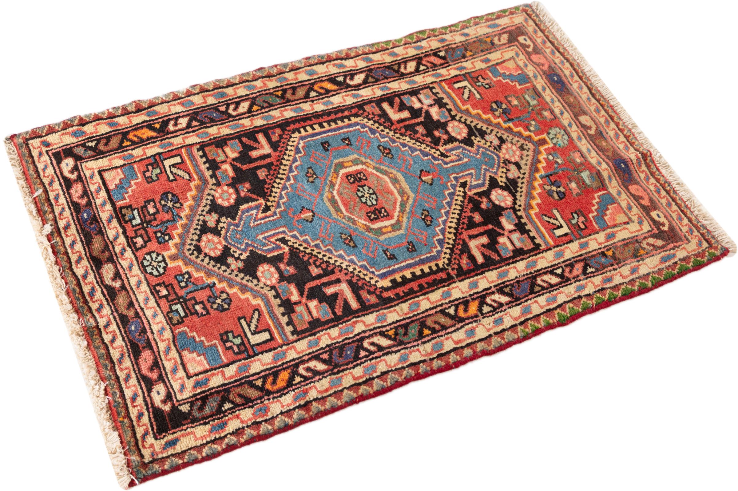 Ce tapis appartient aux tapis de village et de nomade d'Iran, anciennement la Perse. Ce type de tapis est noué à la main dans les petites villes et les villages selon l'ancienne tradition. Même les nomades nouent encore des tapis persans en plein air. Les tapis sont noués sans schéma et entièrement à partir de la tête. Ils se caractérisent par des ornements classiques, qui sont disposés en motifs droits et géométriques. Grâce à leur origine culturelle et traditionnelle, ces tapis ont un caractère unique qui incarne la Perse ancienne.