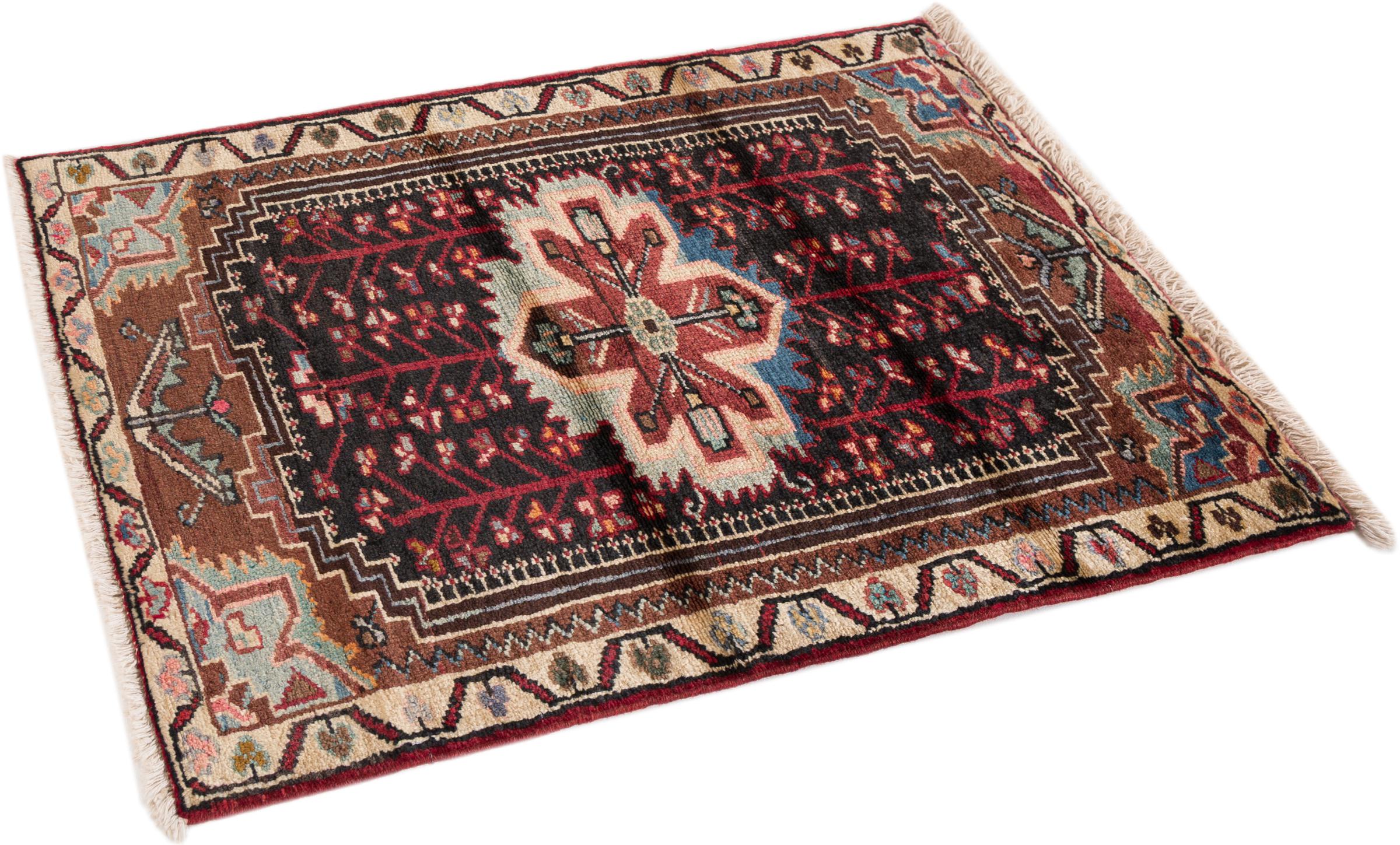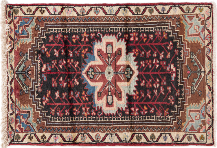 Réf. Article: 296335004023 Taille: 92x60 cm Épaisseur: ap. 10 mm Densité de nouage: 200 000 - 250 000 / m² Fabrication: Noué à la main Velours: Laine filée à la main Chaîne: Coton Origine: Persie / Iran Âge: Nouveau Poids: ap. 2 kg Nombre en stock: Unique - Seulement 1 en stock