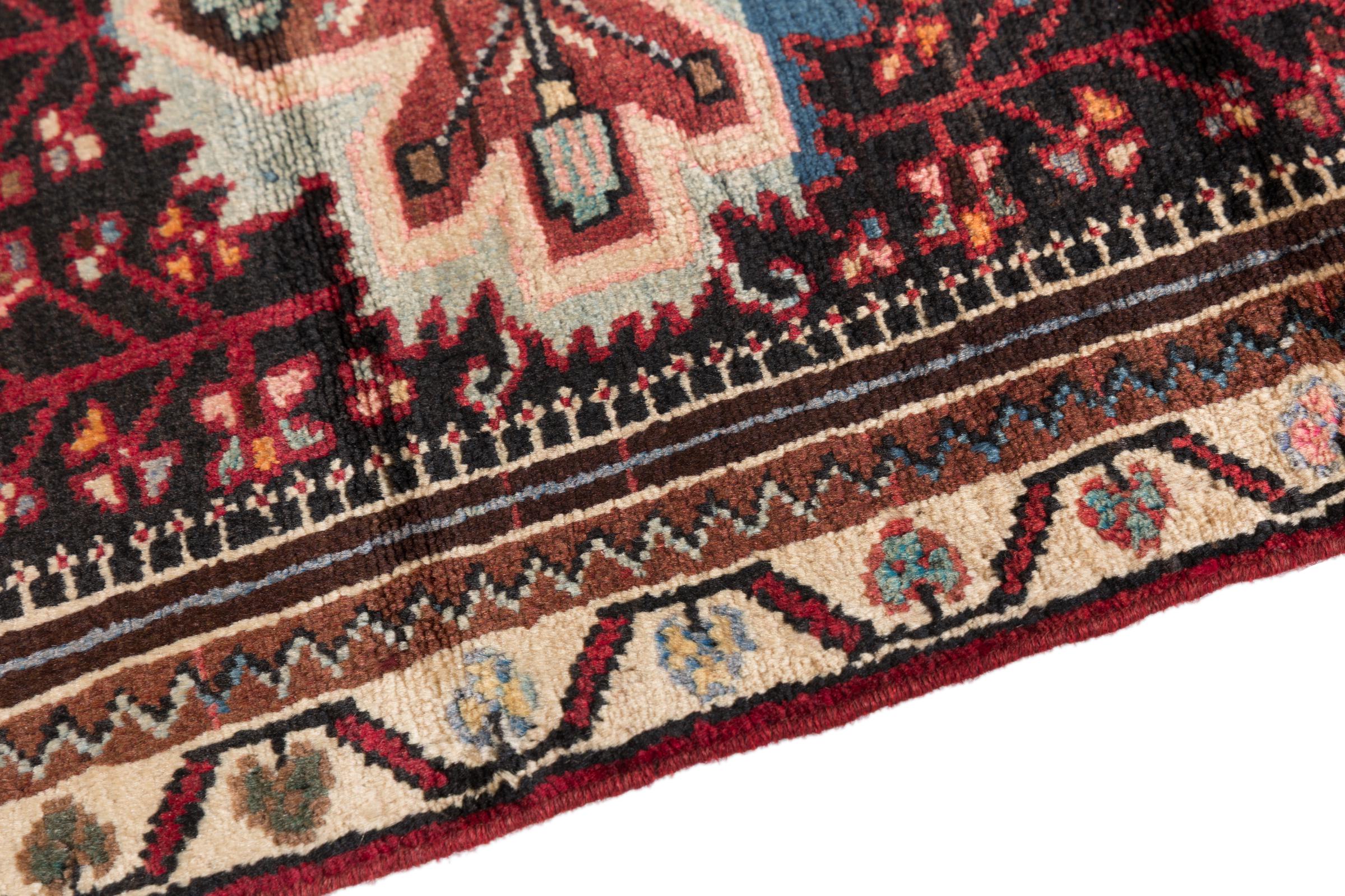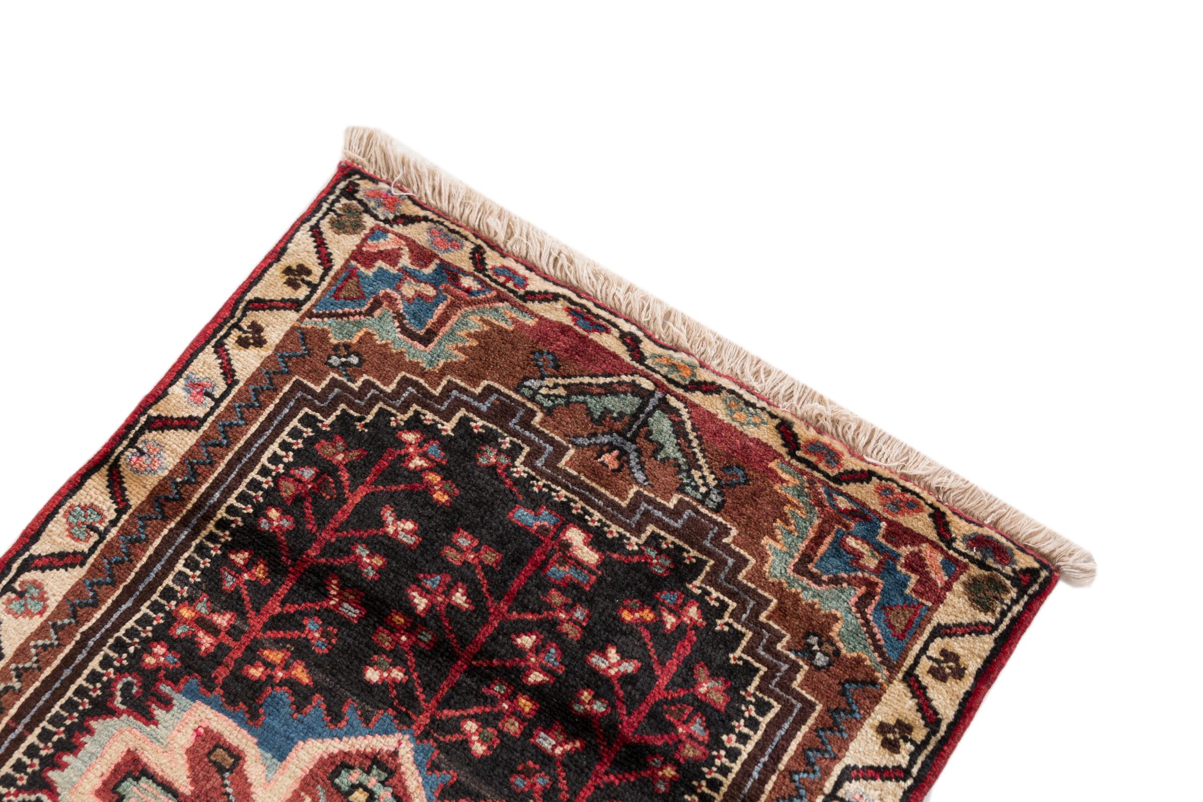 Ce tapis appartient aux tapis de village et de nomade d'Iran, anciennement la Perse. Ce type de tapis est noué à la main dans les petites villes et les villages selon l'ancienne tradition. Même les nomades nouent encore des tapis persans en plein air. Les tapis sont noués sans schéma et entièrement à partir de la tête. Ils se caractérisent par des ornements classiques, qui sont disposés en motifs droits et géométriques. Grâce à leur origine culturelle et traditionnelle, ces tapis ont un caractère unique qui incarne la Perse ancienne.
