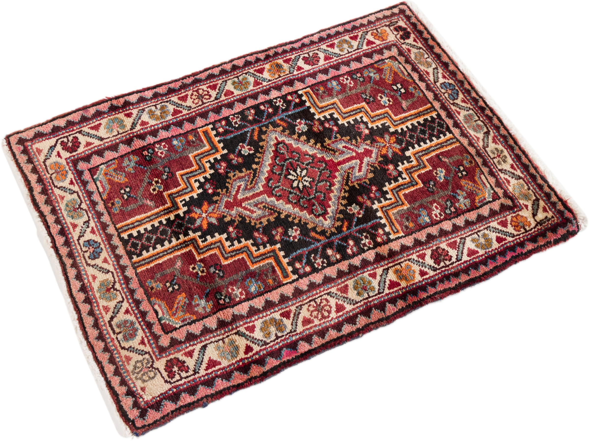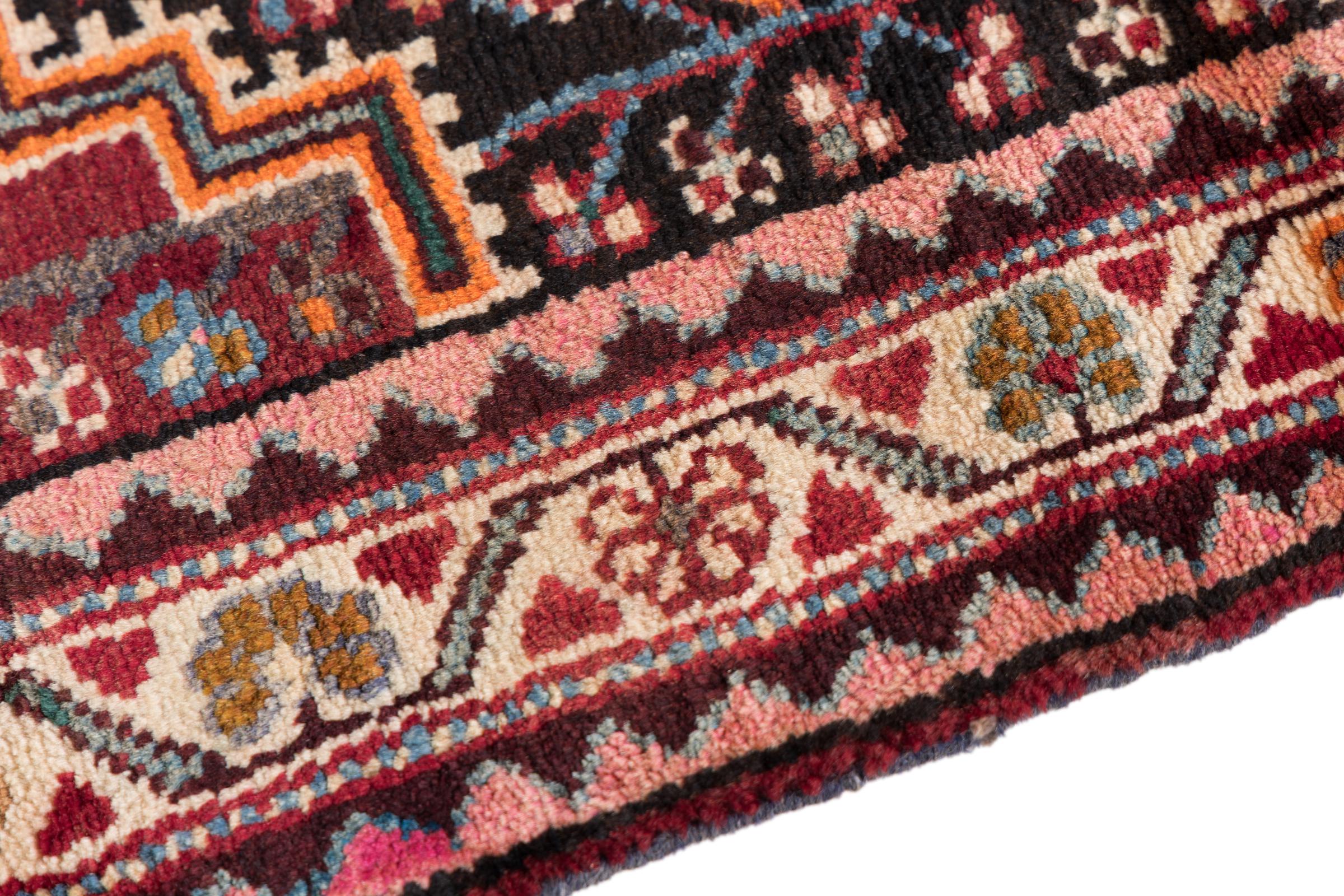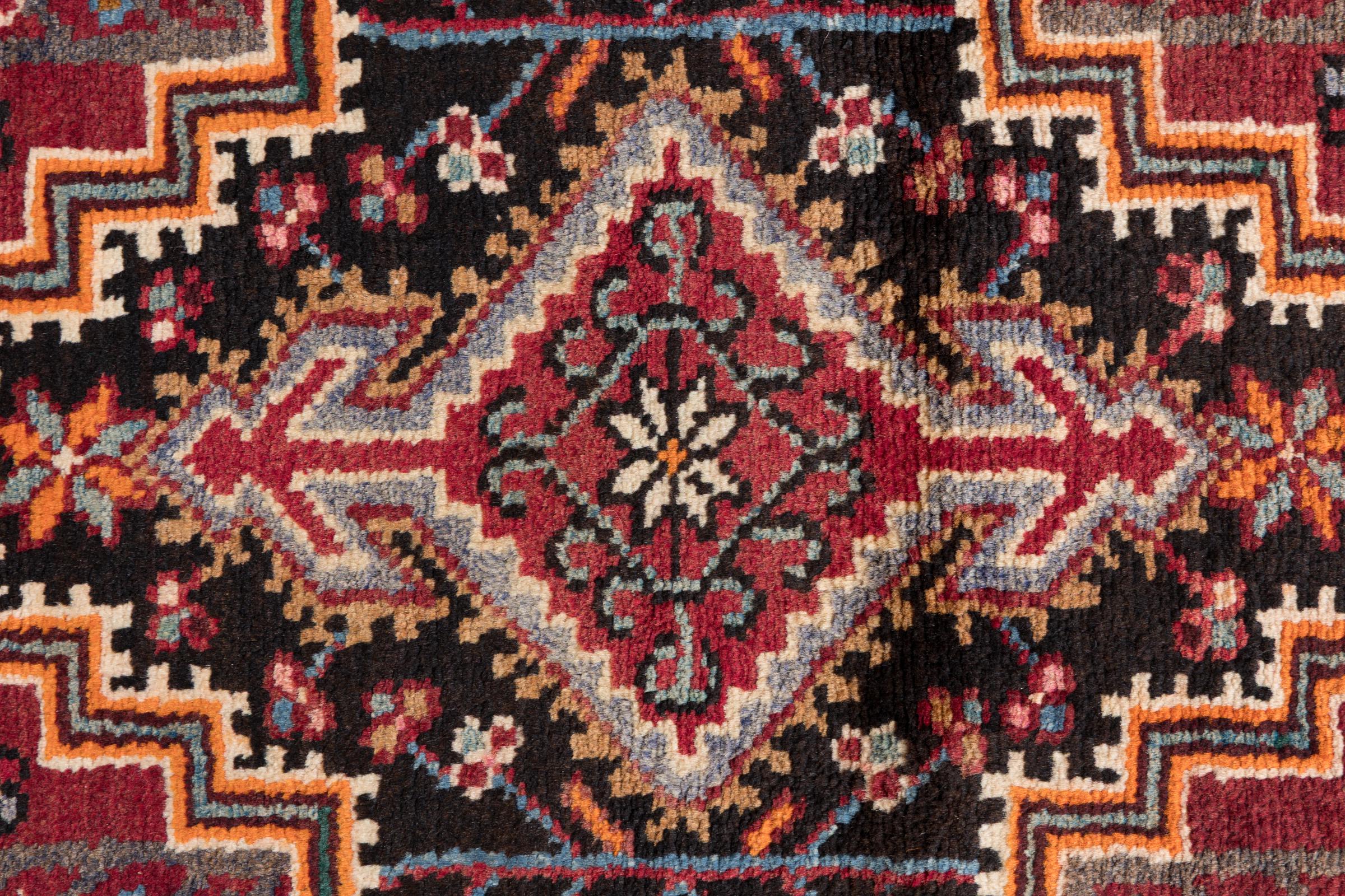 Ce tapis appartient aux tapis de village et de nomade d'Iran, anciennement la Perse. Ce type de tapis est noué à la main dans les petites villes et les villages selon l'ancienne tradition. Même les nomades nouent encore des tapis persans en plein air. Les tapis sont noués sans schéma et entièrement à partir de la tête. Ils se caractérisent par des ornements classiques, qui sont disposés en motifs droits et géométriques. Grâce à leur origine culturelle et traditionnelle, ces tapis ont un caractère unique qui incarne la Perse ancienne.