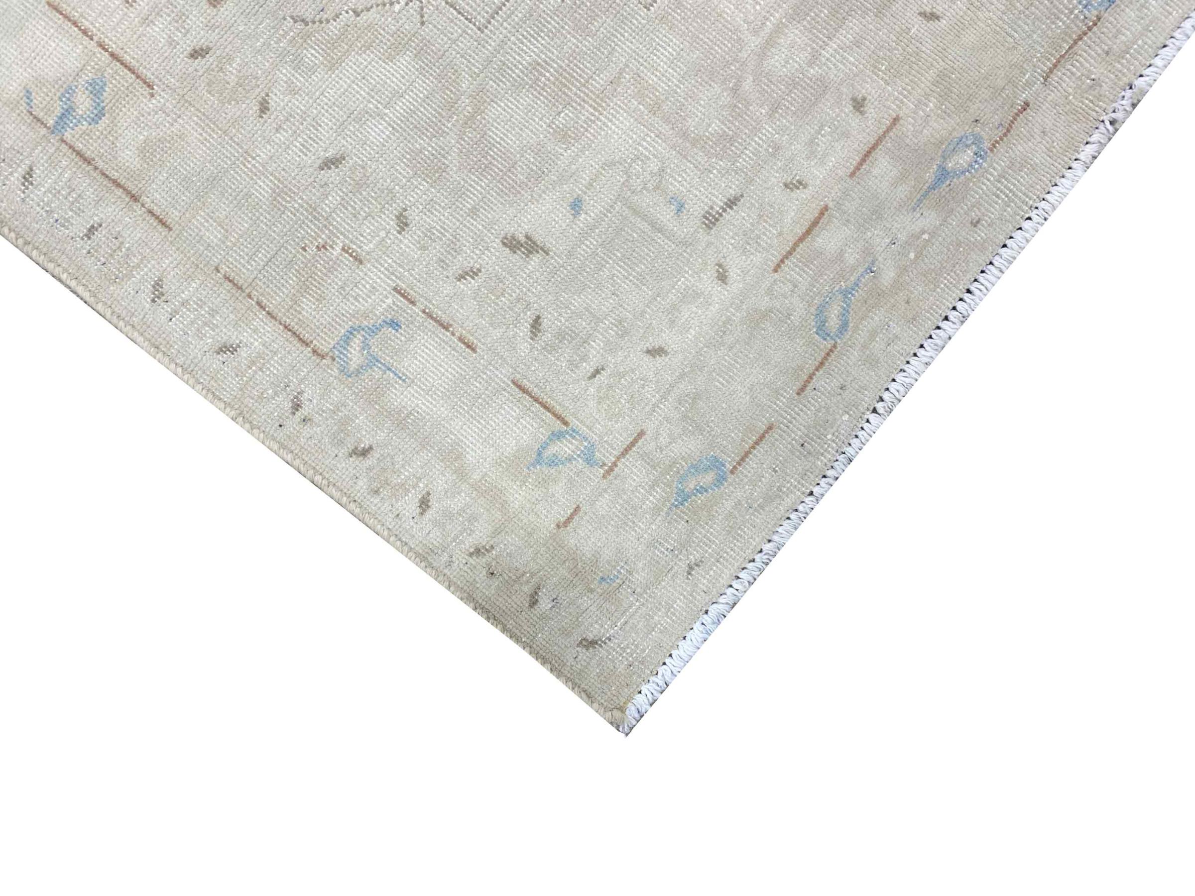 Il s'agit d'un tapis persan noué à la main qui a au moins 20 ans. Un tel tapis peut durer des générations s'il est bien entretenu. Le tapis a été entièrement reteint sans surteindre les ornements noués à l'origine. Cela confère à ce tapis persan de haute qualité un caractère unique, moderne et vintage.