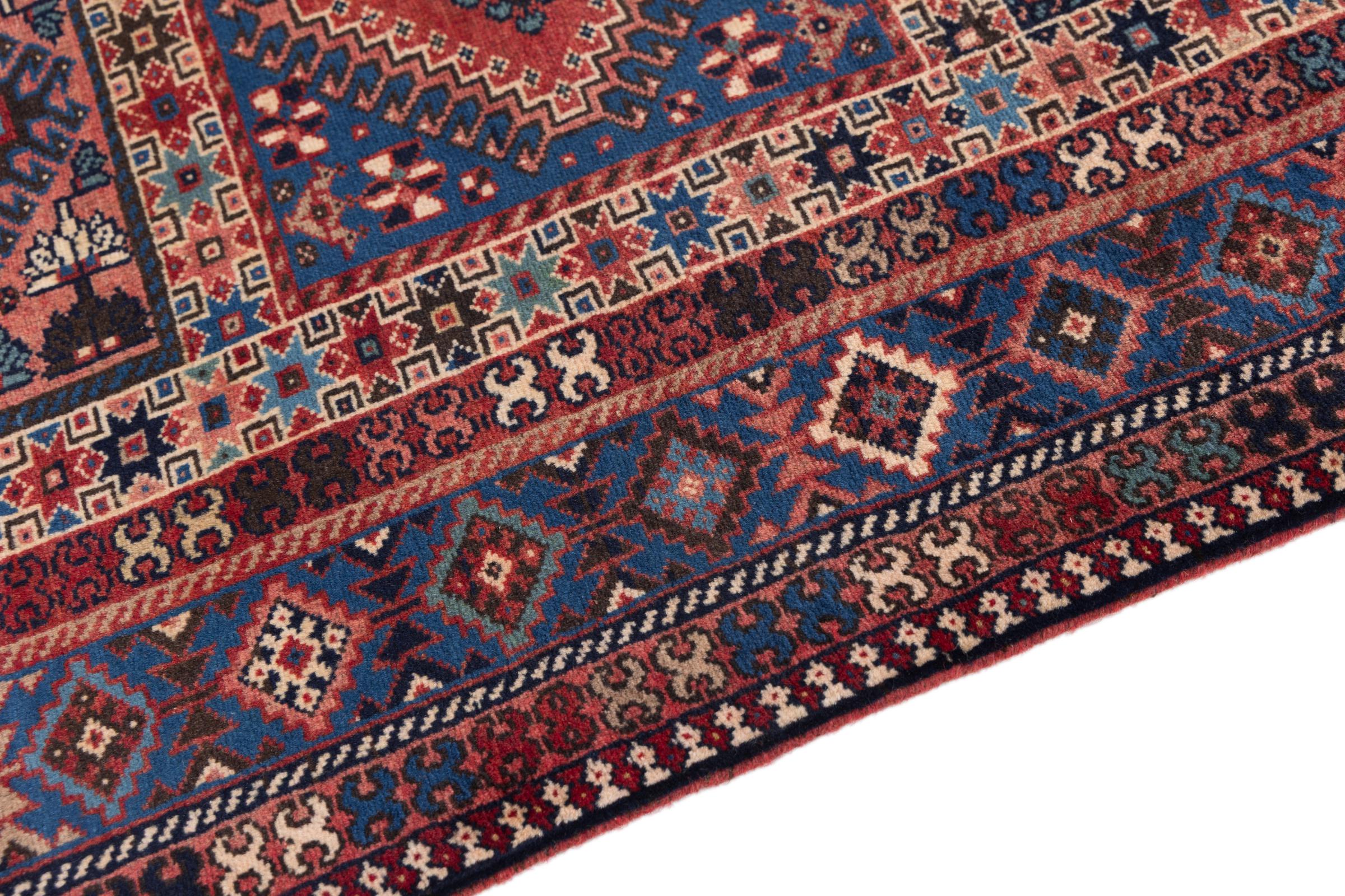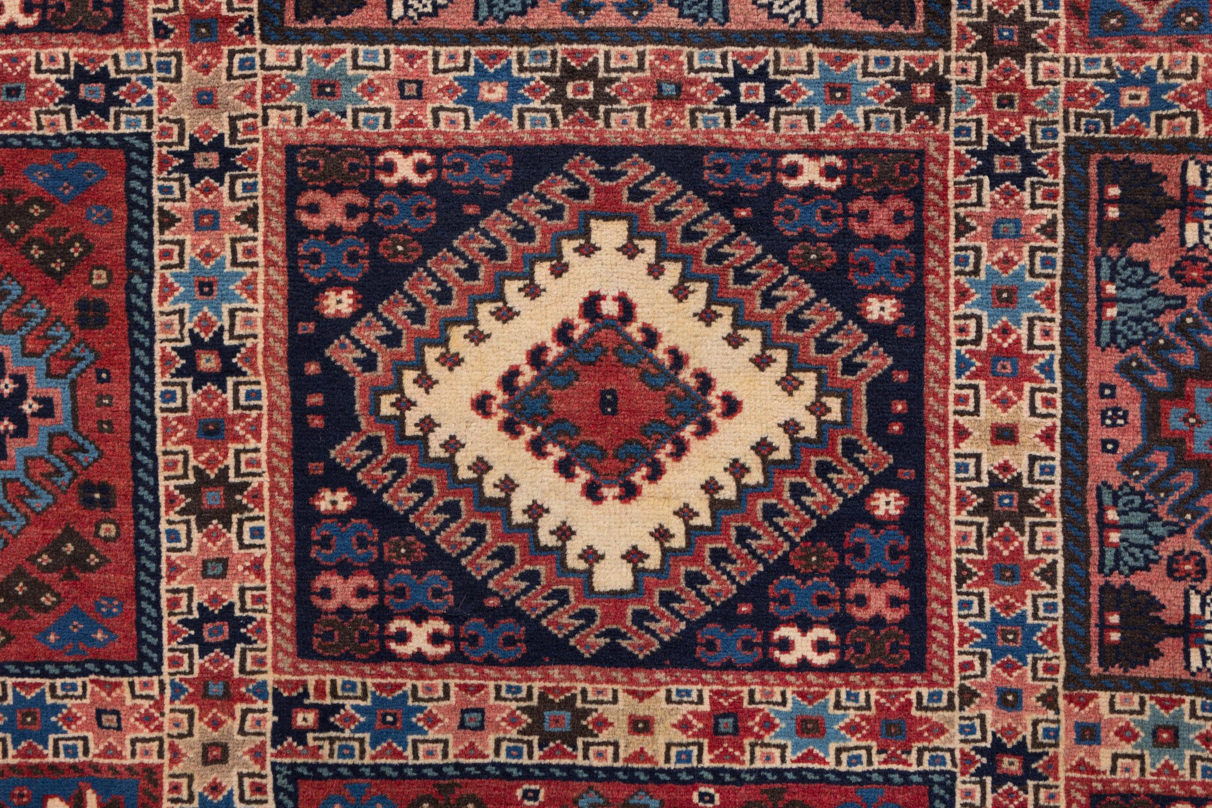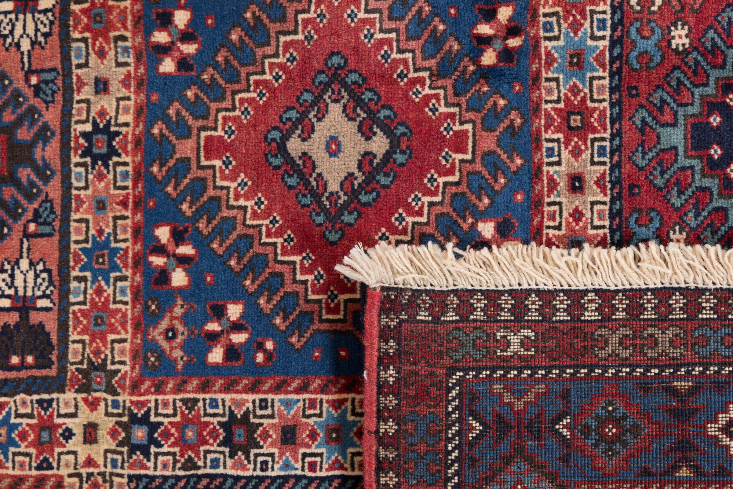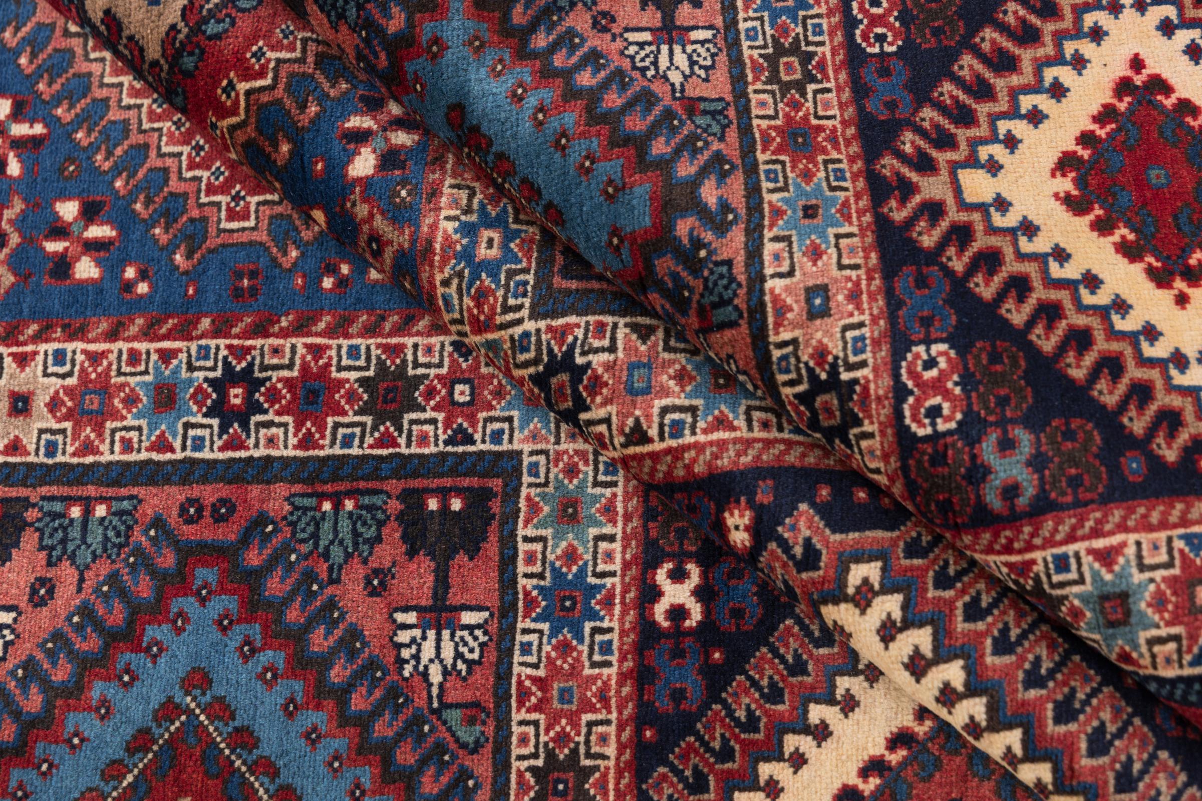 Ce tapis appartient aux tapis de village et de nomade d'Iran, anciennement la Perse. Ce type de tapis est noué à la main dans les petites villes et les villages selon l'ancienne tradition. Même les nomades nouent encore des tapis persans en plein air. Les tapis sont noués sans schéma et entièrement à partir de la tête. Ils se caractérisent par des ornements classiques, qui sont disposés en motifs droits et géométriques. Grâce à leur origine culturelle et traditionnelle, ces tapis ont un caractère unique qui incarne la Perse ancienne.