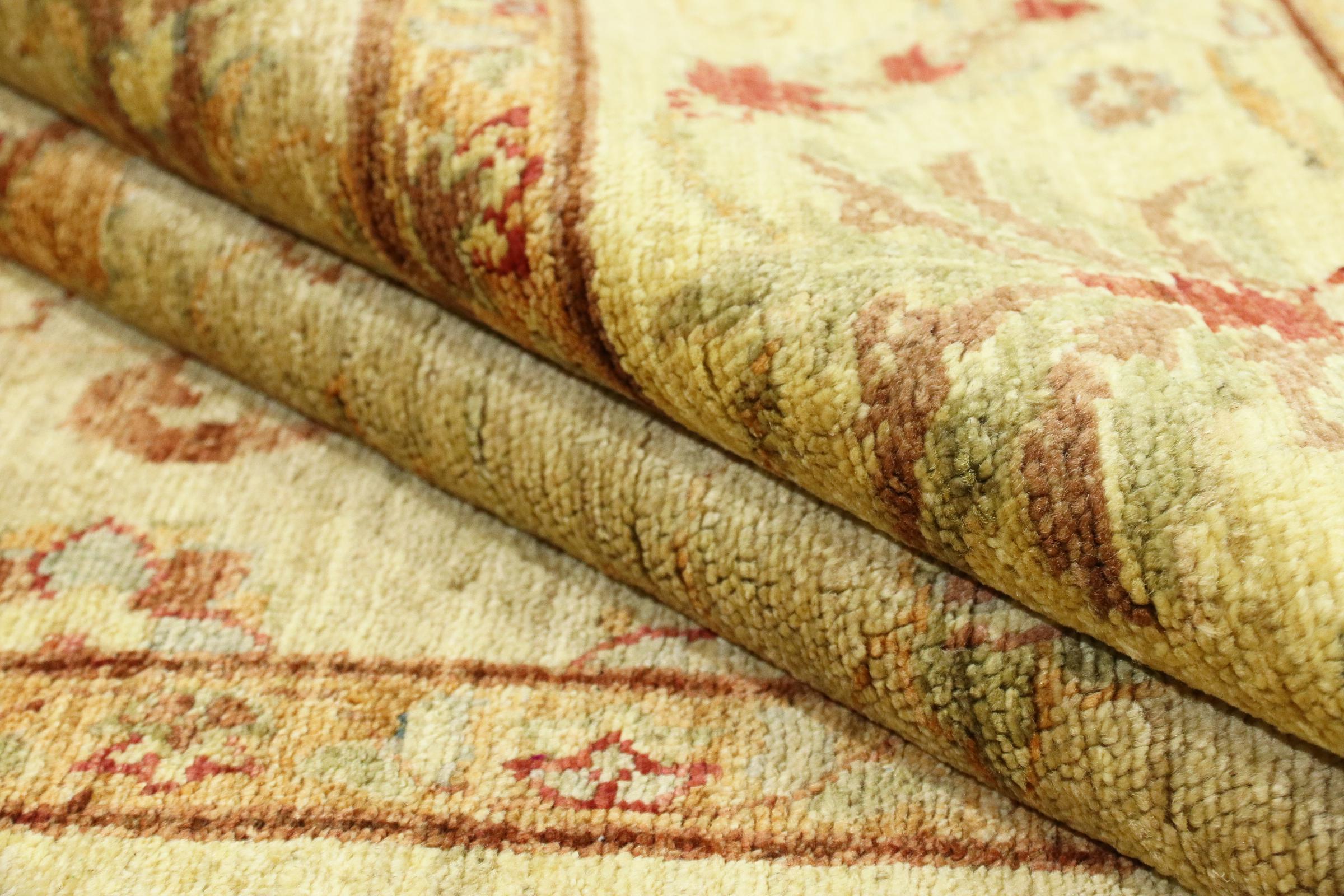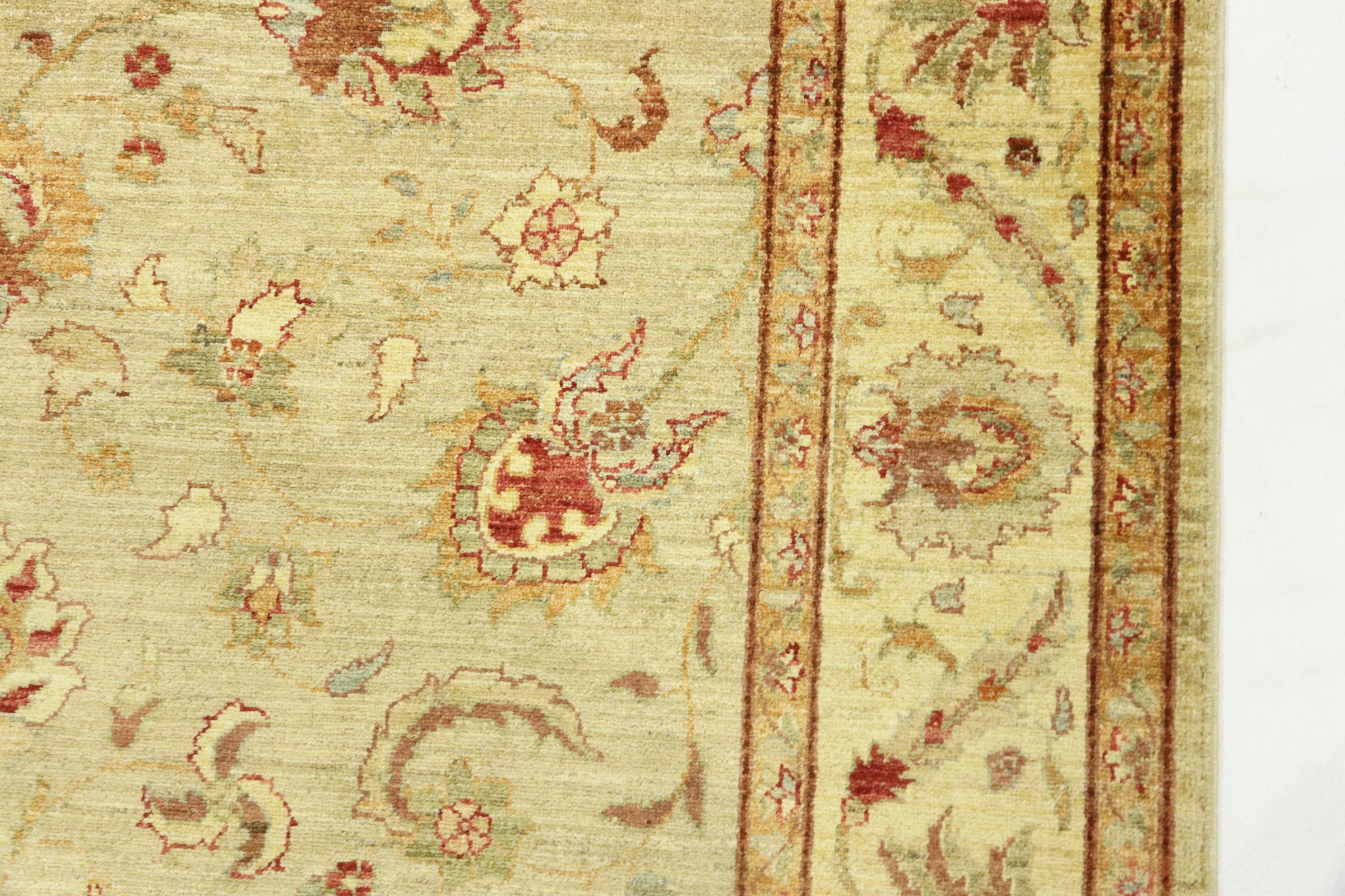 Ce tapis Ziegler Farahan est fait principalement avec de la laine de haute qualité, noué à la main au pakistan. Les méthodes de traitement utilisées permettent de donner naissance à une splendide patine moderne et de style ancien, avec des couleurs discrètes.